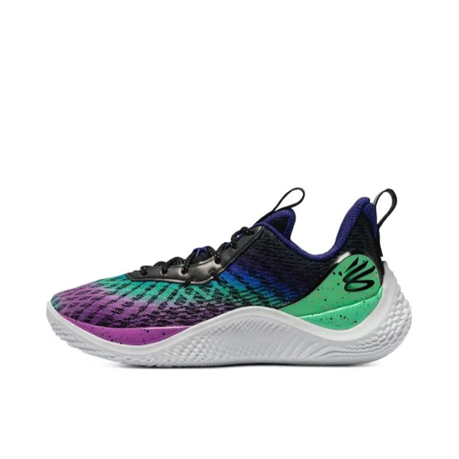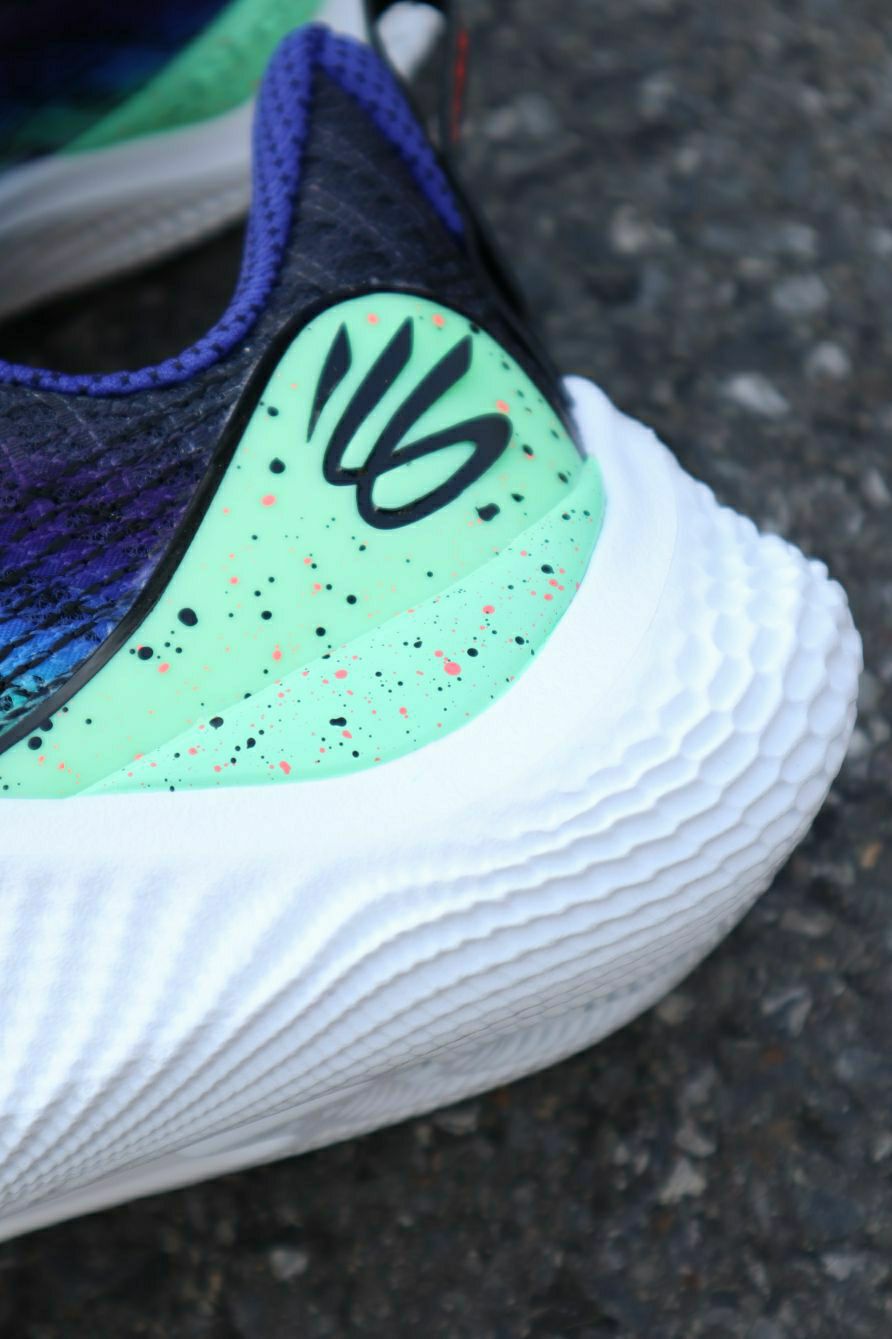 整体设计灵感源自于当年的「北极光」Curry 2,鞋身采用紫色、青色以及蓝色渐变效果打造,还原北极光视觉效果; 后跟 TPU 则是以绿色呈现,同时覆盖泼墨效果,进一步凸显整双鞋的骚气气质; 科技配置方面相信大家都不陌生,核心中底科技采用 Under Armour Flow 打造,带来轻盈、缓震、防滑等特性; 外底 X 造型 TPU 的注入,保证了整双鞋的抗扭,强化实战表现; UA FLOW...
