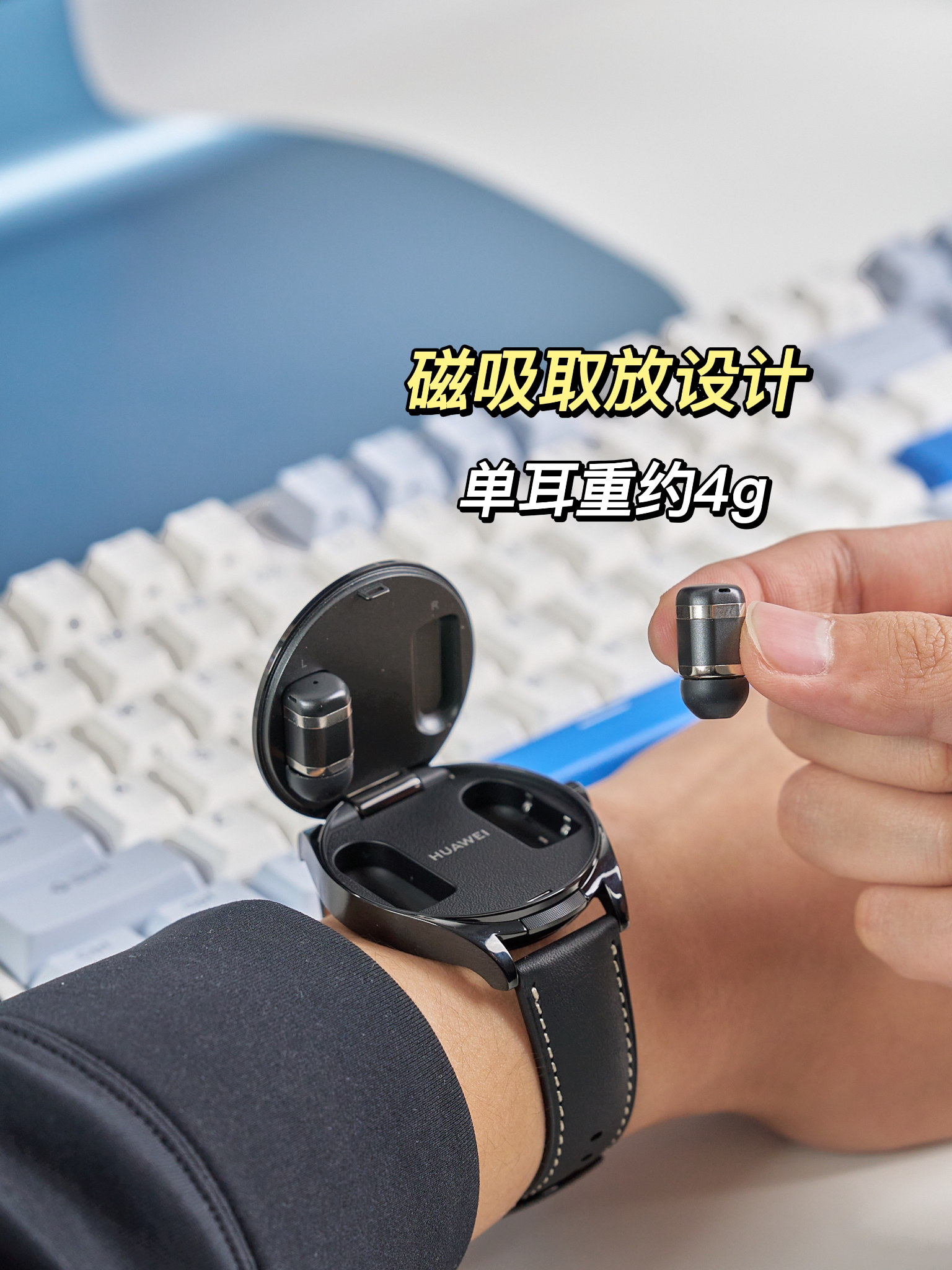 🎧耳机虽然好用,但是容易丢,而且需要用的时候经常找不到。 这款新入手的华为WATCH Buds把耳机装进了智能手表里,使用的时候只需要打开表盖,放回手表内还能给耳机充电🔋。 耳机是通过磁吸🧲的方式吸附在手表上的,体积小巧,重量约4g,佩戴相比其它耳机要更舒适👂。它还有一个优点就是不区分左右耳,会自适应识别。 工作时如果有电话☎️进来,只需要取出耳机就会自动接听,既能保护隐私,还不会影响工作。...