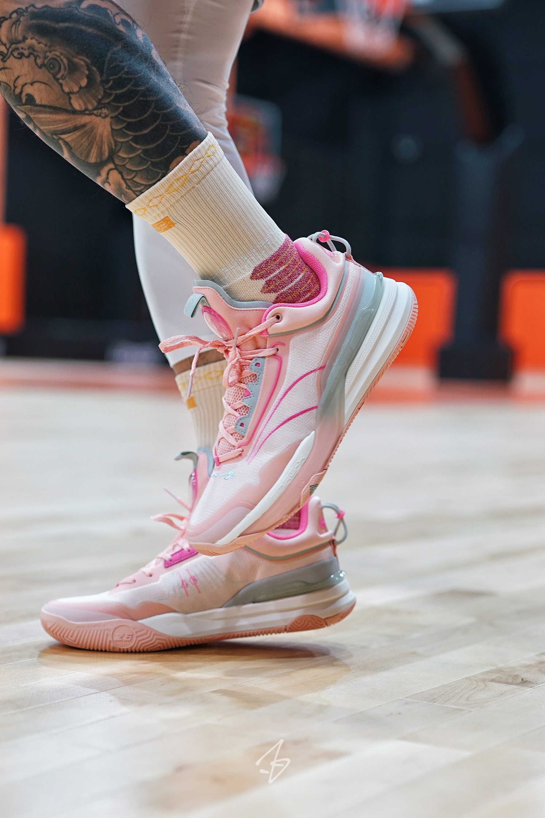 丁威迪1代之前首发的独行侠小牛配色发售了实战感受。今天带来下甜蜜蜜粉色!这也是我自己认为的目前几个配色中zui好看的了!细节和配色都超好。 再来说说DVD1总上脚初感的优缺点。 1⃣️中底调教不错,虽然没有用超临界全掌或者填腹式超临界。但是在鞋垫上用了一副超临界发泡鞋垫有效提升了脚感和弹度。e韧的中底前后过度比较平顺,前掌重心中等偏低点点的重心虽然不是极致贴地但后卫可以接受的那种。 不过特别大体重...