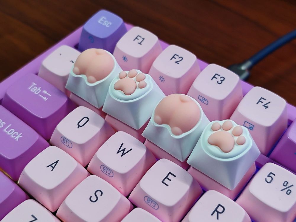 如果想送女性朋友礼物,这把虎八兔H98(糖果色)绝对是不错的选择,另外还送了四颗硅胶增补,可爱度拉满,当然男生选其他配色自用也不错。
