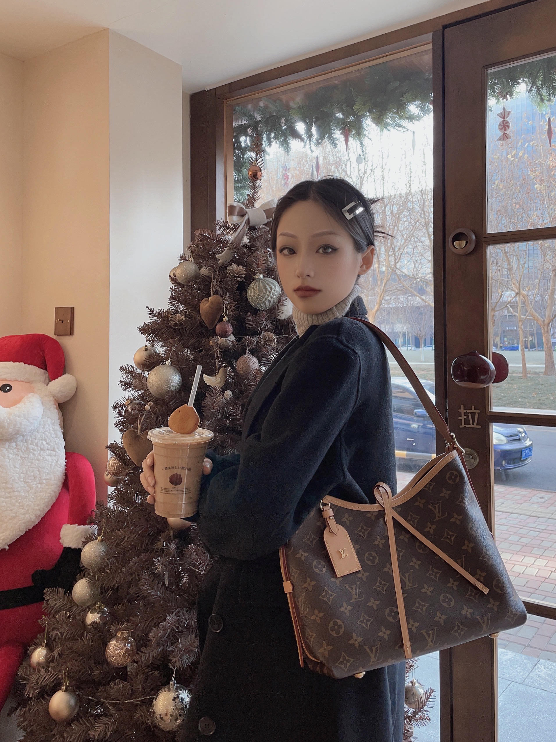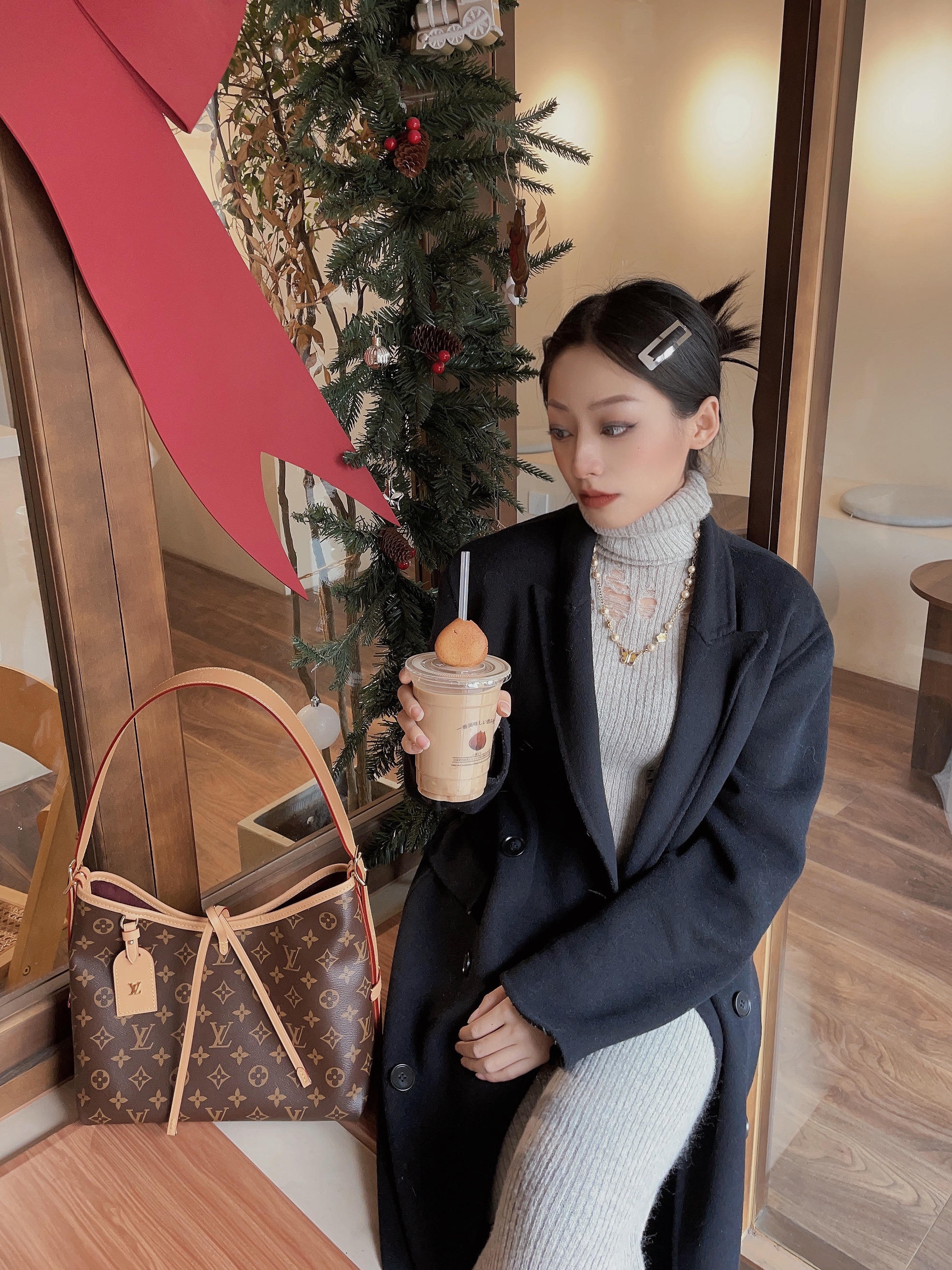 新年当然要背新包穿新衣,等了两个多月的Carryall终于引来了它上身的时刻! 这款包包更偏向于淑女气质型穿搭,我选择了经典的黑色大衣,包包肩带调至最小,作为腋下包!大小刚刚好,不会觉得很大,170以下的姐妹使用小号都还不错呢! 我个人更喜欢腋下背,斜挎会更偏于休闲风,出门时或者休闲风可以选择斜挎,也可以解放双手!非常好看且淑女!