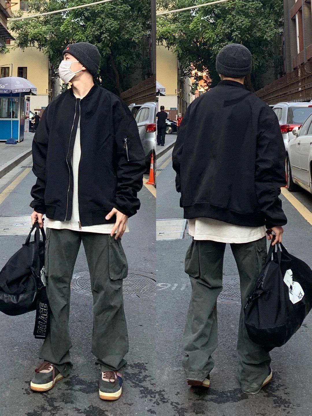 1⃣️飞行夹克最近真的很火 版型穿上好看的同时保暖也很到位 黑色很百搭耐看 搭配灰色大口袋工装裤帅飞! 2⃣️水洗加绒卫衣真的很绝 重磅很厚实 冬天也可以穿 图案也是非常不错的 搭配这一条修身显瘦显瘦高的牛仔裤真的不要太绝! 3⃣️黑色水洗外套真的不错 面料上身舒舒服服 搭配灰色水洗大口袋工装裤真的很nice 4⃣️太爱这一个颜色的教练夹克了 显白又特别 面料细节真的挺用心 喜欢的小伙伴可以尝试一...