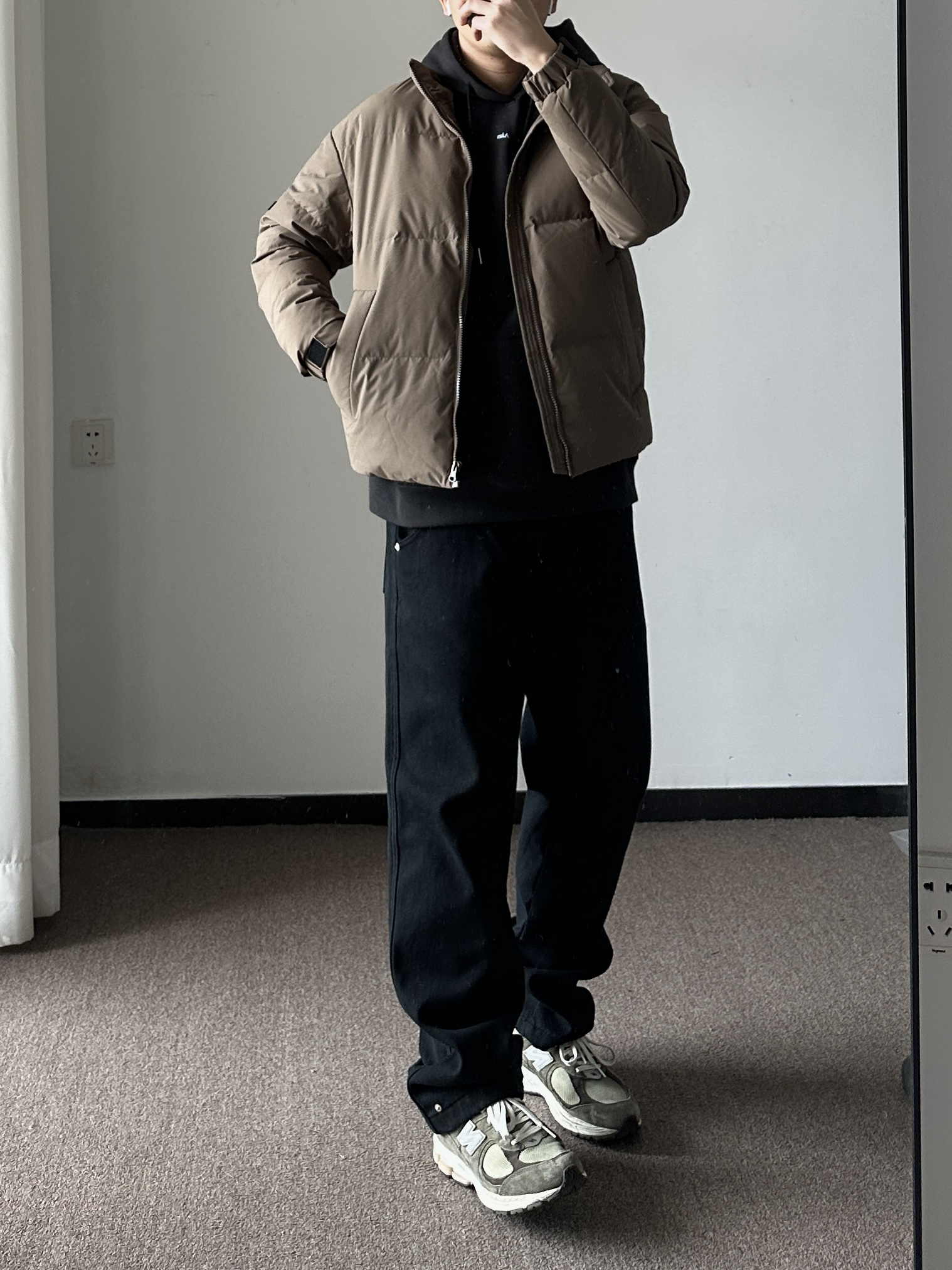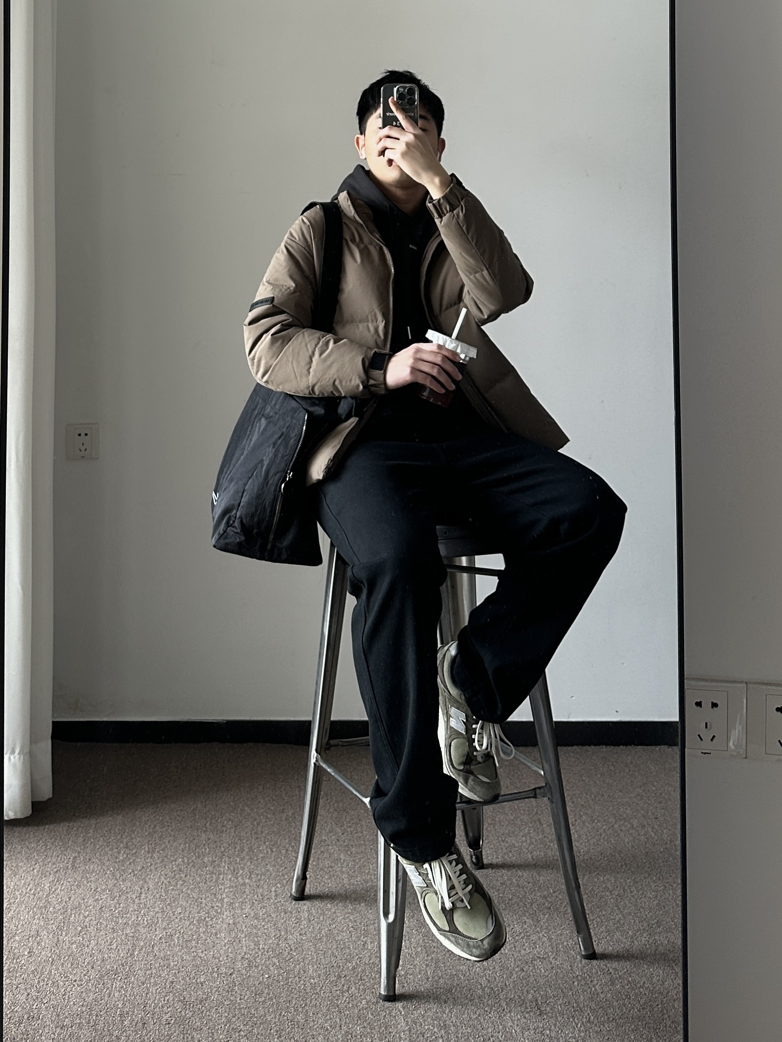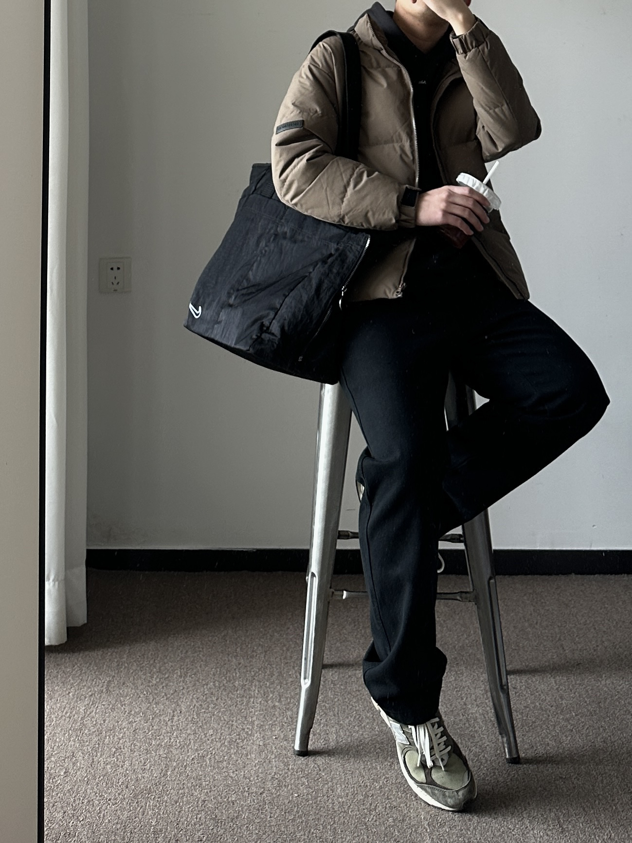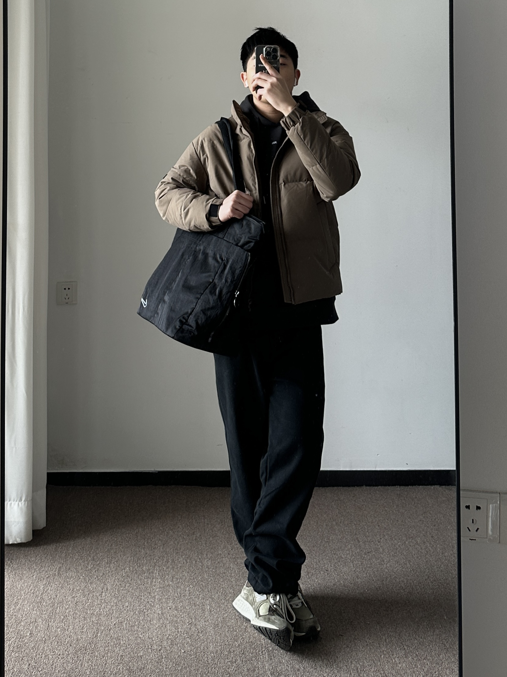 素人也能好看系列~ 174cm/65kg 🧥-好打理的卡其色,搭配深色系也百搭耐看。羽绒外套上身XL,内搭件小logo卫衣足矣,卫衣上身M。 👖-加绒的很温暖,堆叠感的版型搭配NB,yyds! 👟- 2002R,通勤好鞋,好走好搭。买鞋的现在的藏青色推荐! 👜- NIKE-CV0058-010。是个健身包、也能奶爸包。200多就能冲。面料防水,硬底耐用。男女通勤款,新年小福袋!