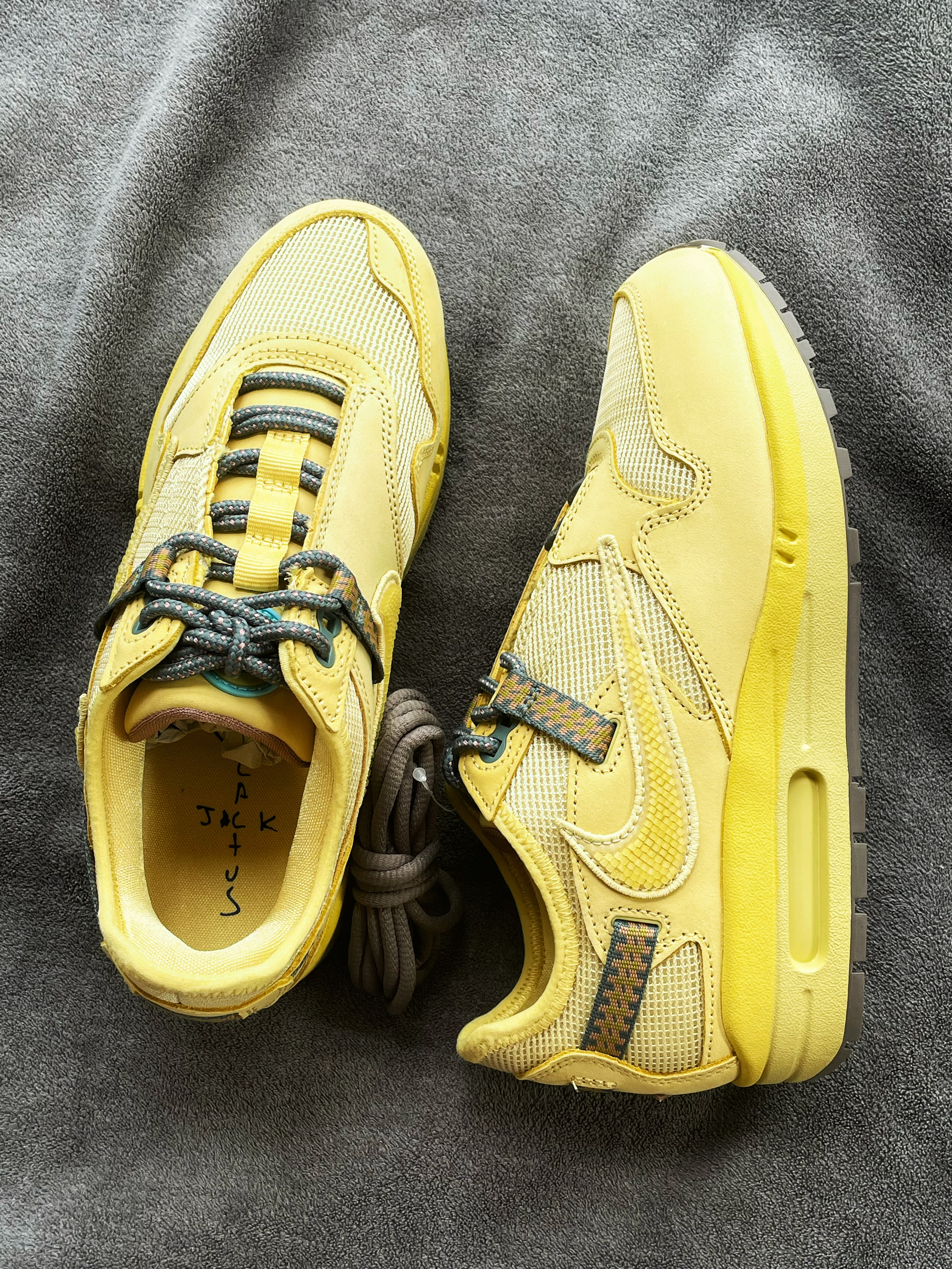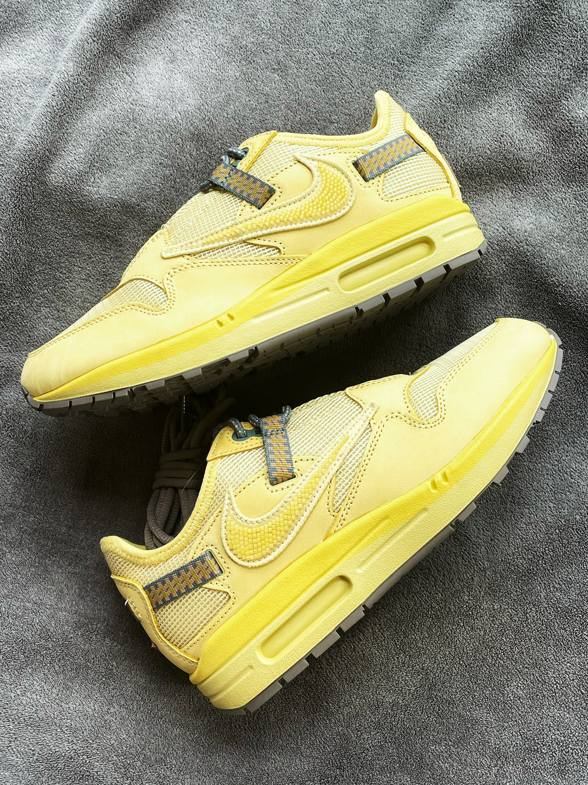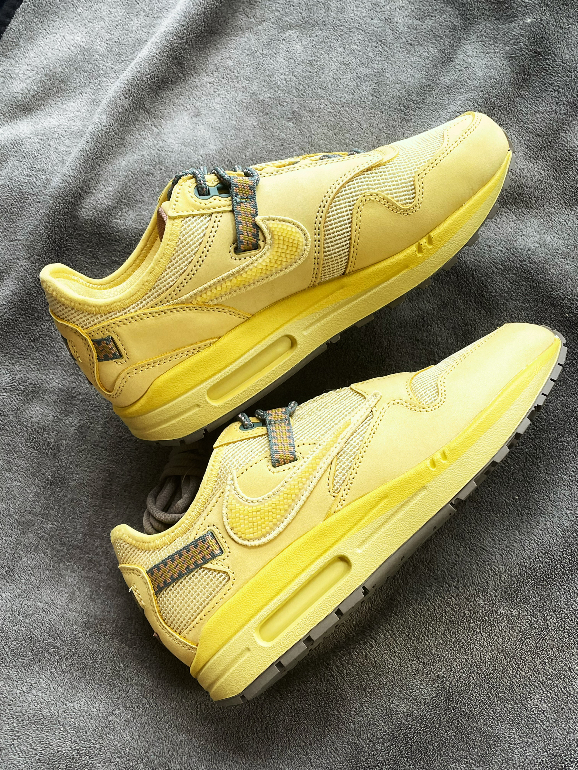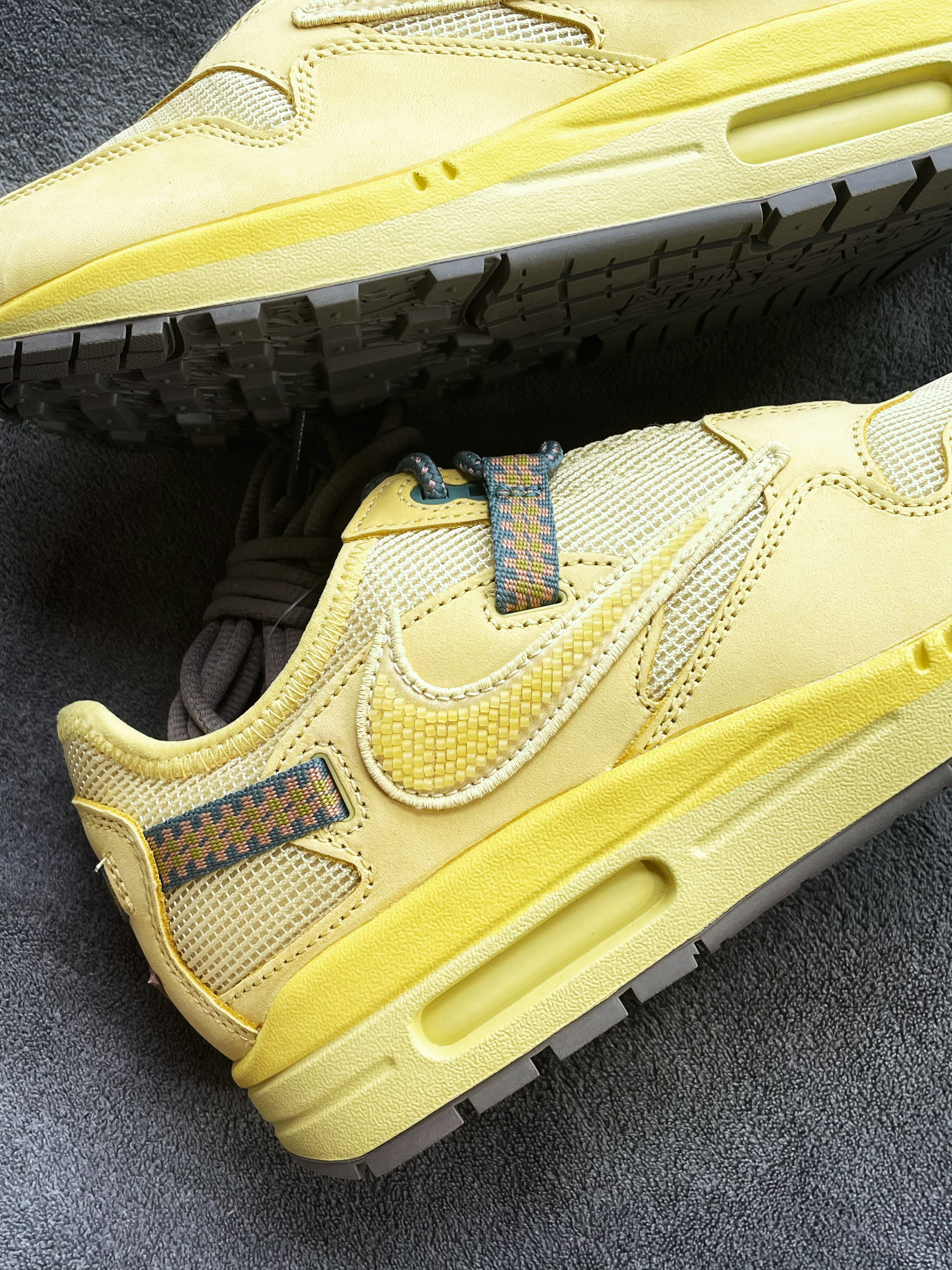 👟名称:CACT.US CORP x Nike Air Max 1 "SaturnGold" 联名款 Travis Scott 倒钩 复古低帮休闲跑步鞋 男女同款 土星金色 这双自从发售以后就一直跌入低谷,你们觉得如何呢?把你们对这双鞋子的评论说出来吧!