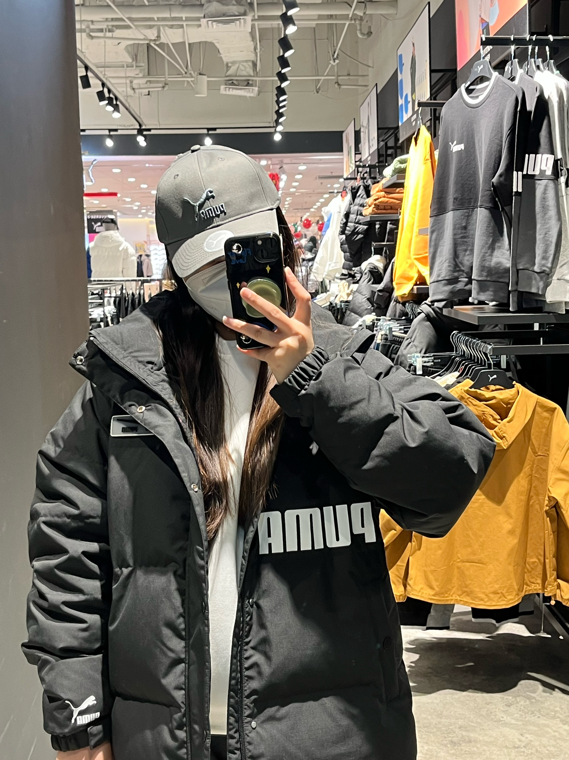 👕冬款羽绒服 鹅绒服都是卖一件少一件 彪马冬款不会再补货啦 再上新都是春装啦 🦢90鹅绒服 填充量会因为尺码不同 面料是非常厚实的防风面料 非常非常保暖了 春节零下的温度完全可以胜任 💰我本人身高170 体重120 穿s码也非常宽松 裤子也是同系列的运动裤 之前发过同款白蓝色的 搭配这个黑裤子也好看的
