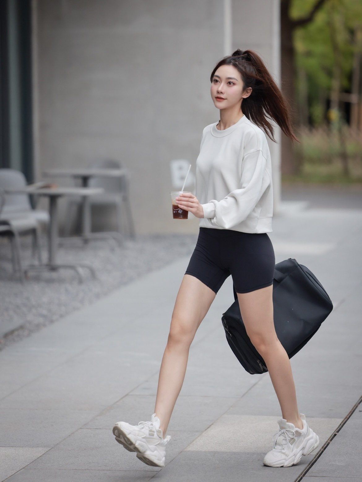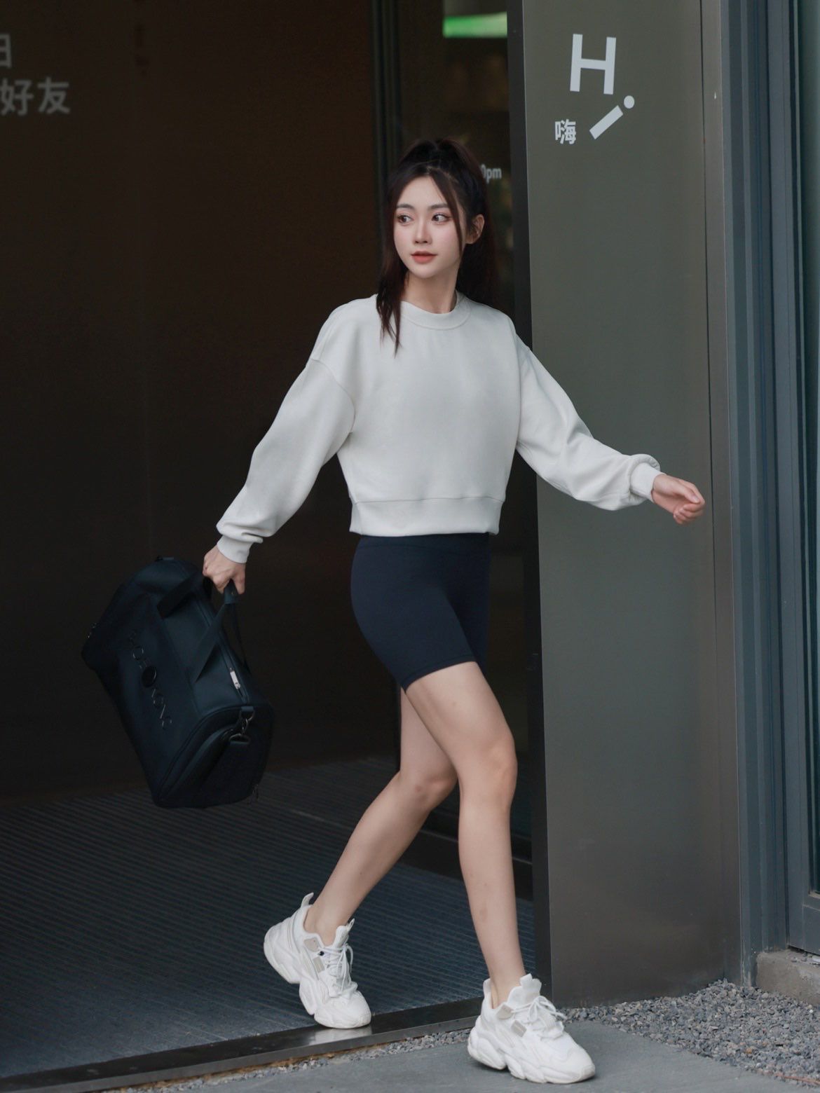 我发现很多运动女孩, 平时都是穿运动休闲为主 像我平时去健身,去逛街 我都会选择偏运动休闲的装扮 一条短款黑色legging搭配一件纯色卫衣 卫衣面料我喜欢垂坠感好,触感柔软丝滑 以及宽松短版剪裁可以凸显身材比例 再加上一双舒适度高的运动鞋 整体简约又高级,同时又很显腿长