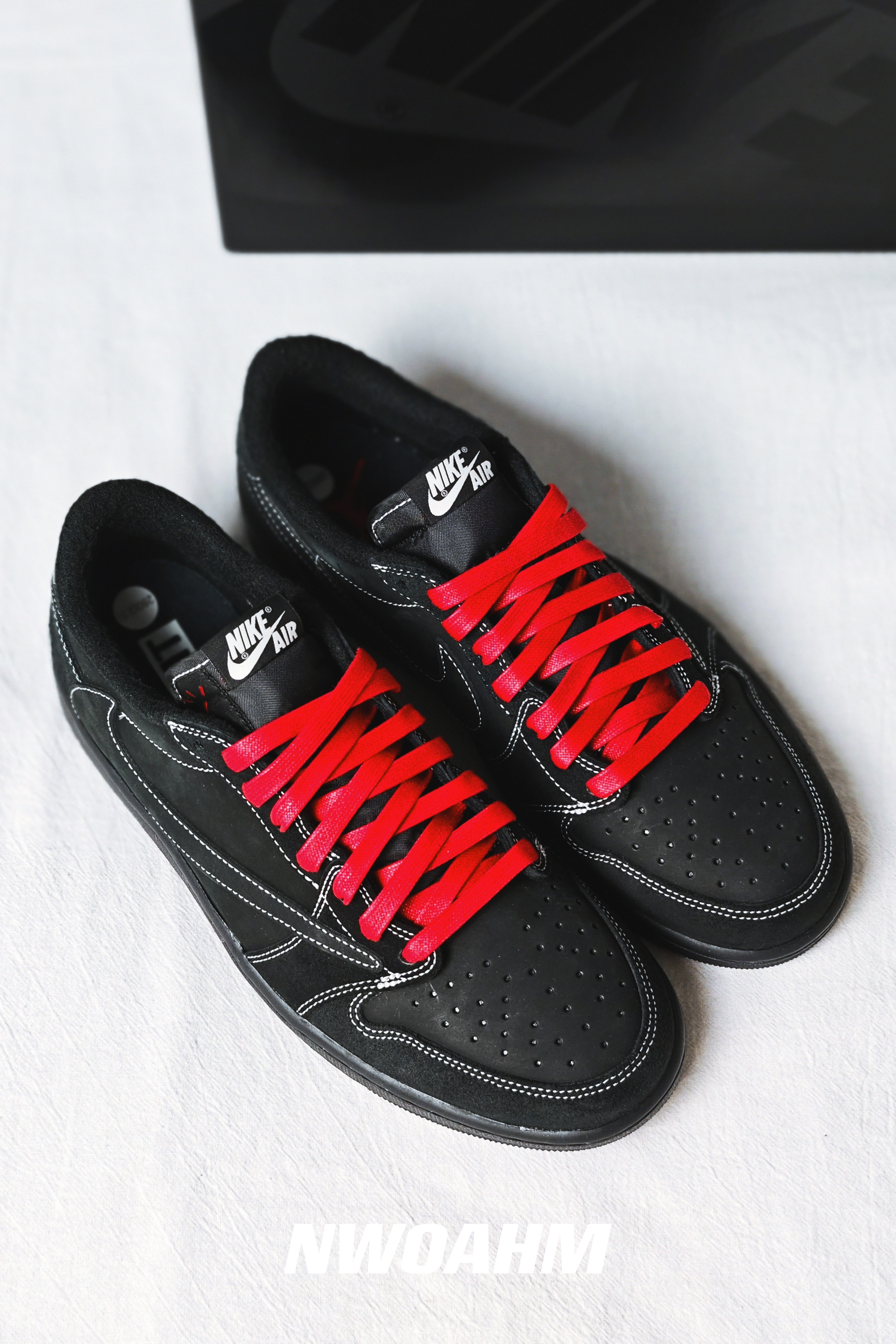 作为史上最“便宜”的AJ1倒钩,过于低调的配色是其中一个原因,尤其自带的黑色鞋带。 不过还好它另配有2副鞋带,黑白的之前给大家演示过,颜值确实提高了一个档次,而今天换上这红色的呢?配合酷酷的黑色鞋身则更加醒目!个人觉得再搭配一条深色的腰果花裤子,再加一件喜庆的红色外套应该会不错,不知道大家怎么看呢👀👀?