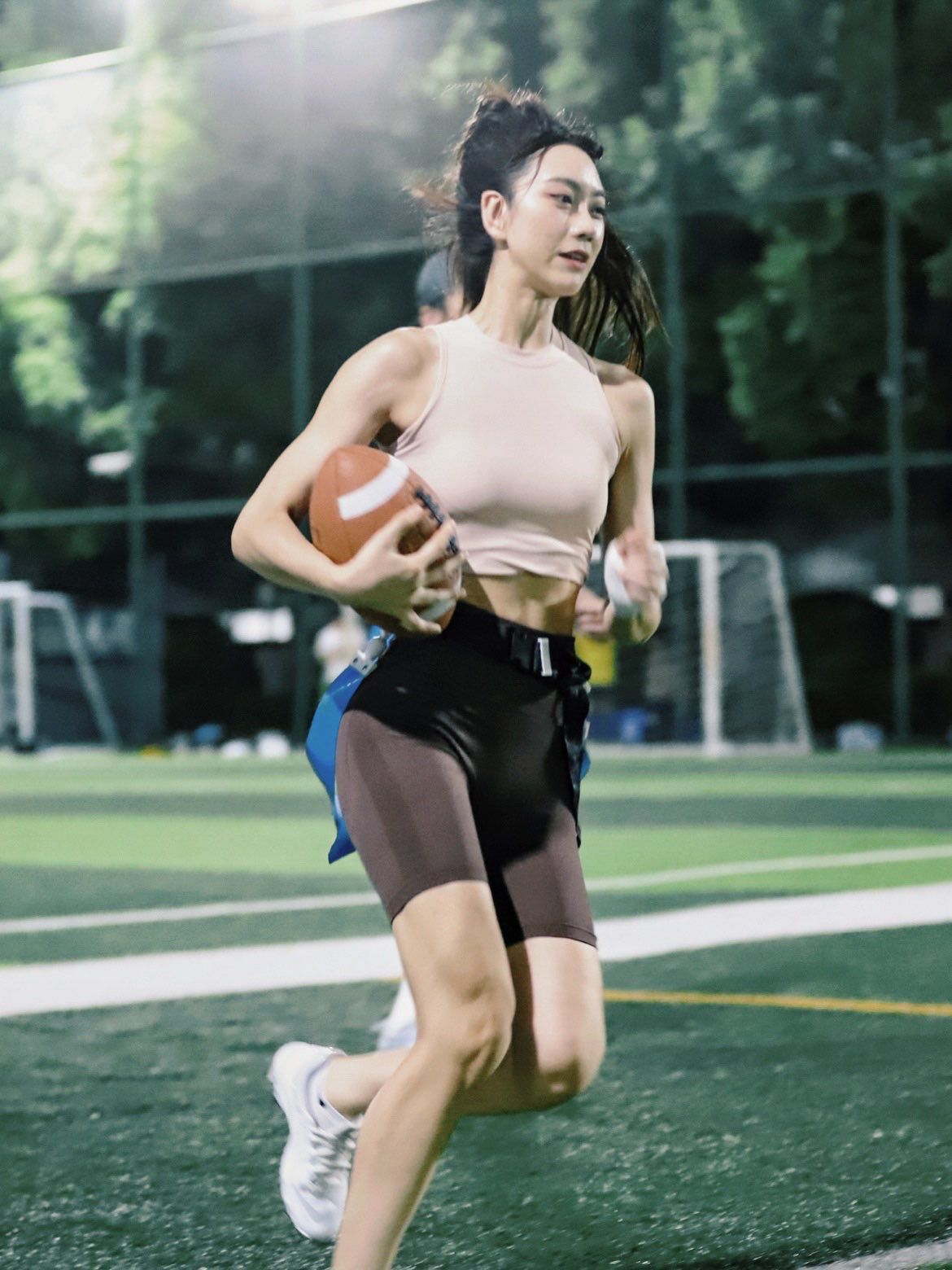 我一周最少健身三次,喜欢飞盘和腰棋橄榄球 喜欢把每次运动的瞬间都记录下来 Alexander Mcqueen说过一句话✍️ “我不喜欢她看起来天真无知,我喜欢的女生充满力量,以至于一个男生不得不充满勇气才敢接近她” 想活成什么样子,只有自己说了算~ - 运动的过程很容易爆汗💦 特别是像腰旗橄榄球这种高间歇爆发运动🏈 可能一个回头你的旗子就要被扯掉了,在没有听到裁判的哨声前,你要无视一切,拼命的向前...