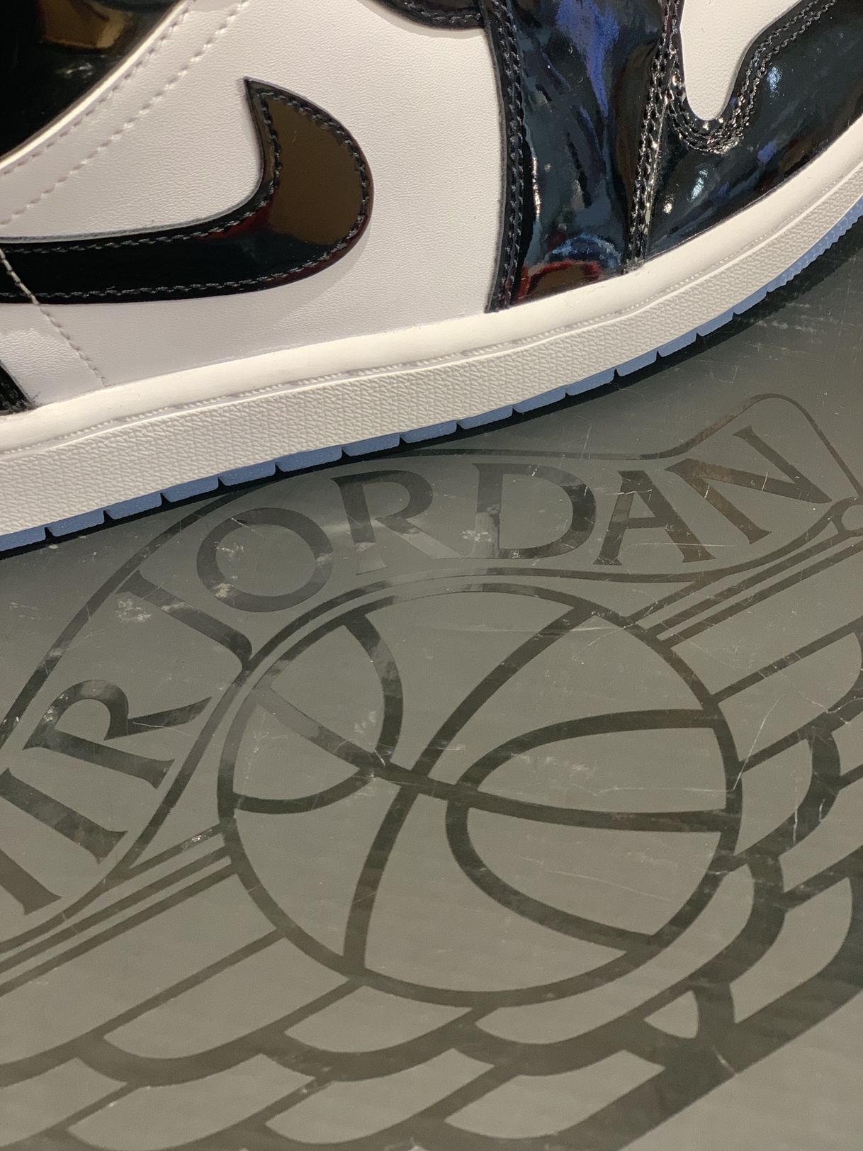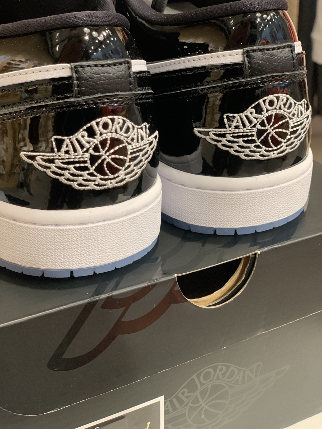 hello兄弟们,看到这双鞋的颜色和材质,是不是你也想起了那双Air Jordan 11的concord了呢,白色的人造皮革材质加上加上黑色的漆皮材质,鞋后跟加上刺绣轮廓的飞翼logo,都让这双鞋看起来蛮不错的
