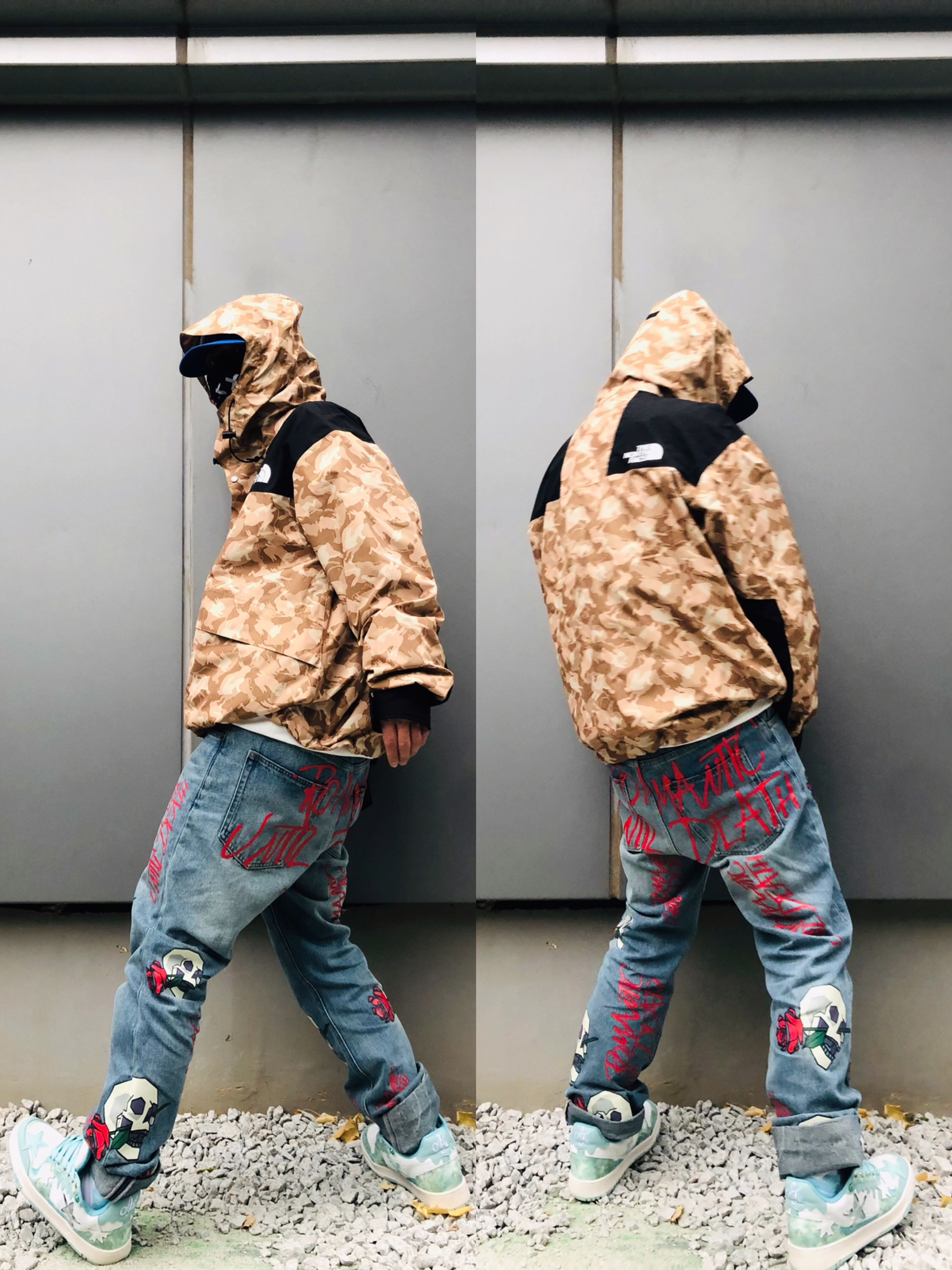 博主信息: 身高:178 体重:65 鞋:43.0 今日搭配尺码参考: 外套:北面1986 冲锋衣 裤子:国潮s45牛仔裤 鞋子:kaalixto滑板鞋 43.0 同色系搭配 街头感