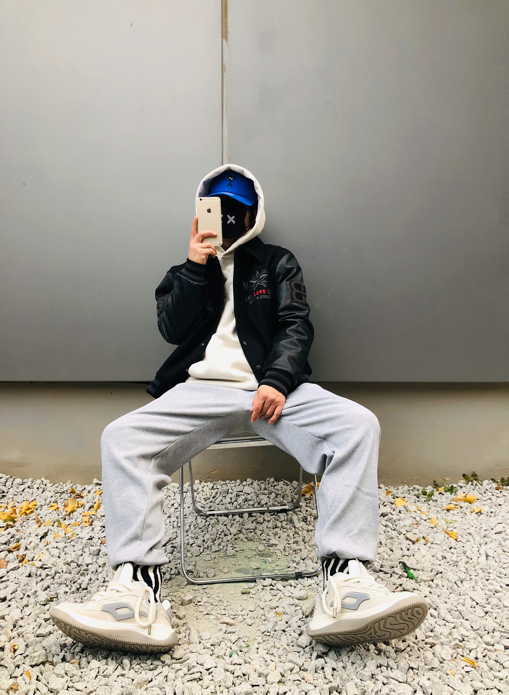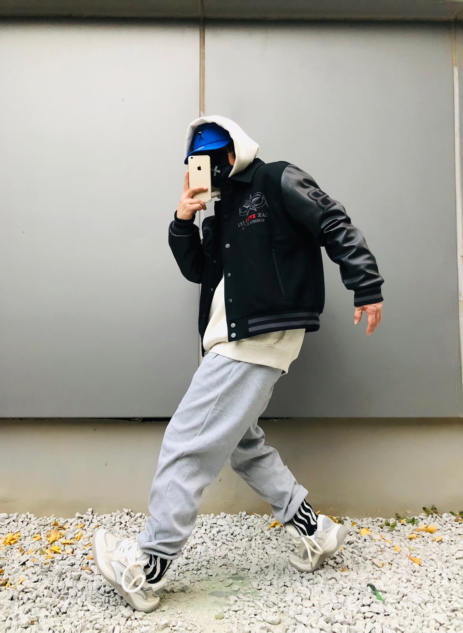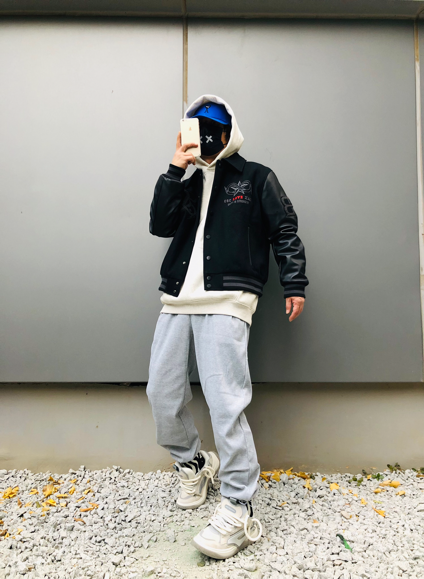 博主信息: 身高:178 体重:65 鞋:43.0 今日搭配尺码参考: 外套:国潮sta 黑色蒙面将军外套 上衣 :国潮 灰色连帽卫衣 裤子:国潮灰色休闲卫裤 (L) 鞋子: 黛西法罗火箭001滑板鞋 43.0