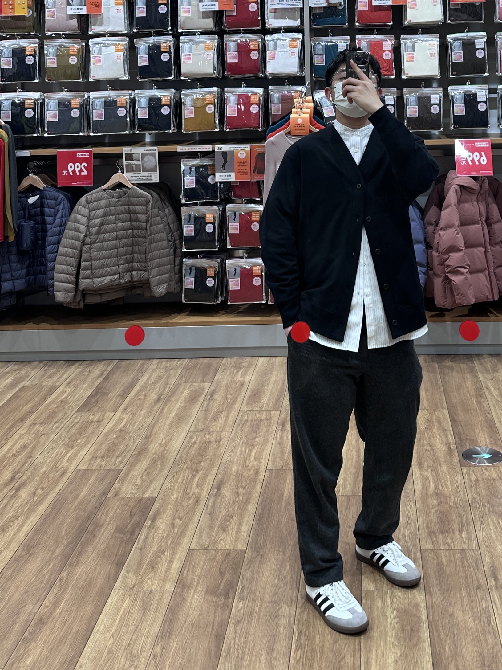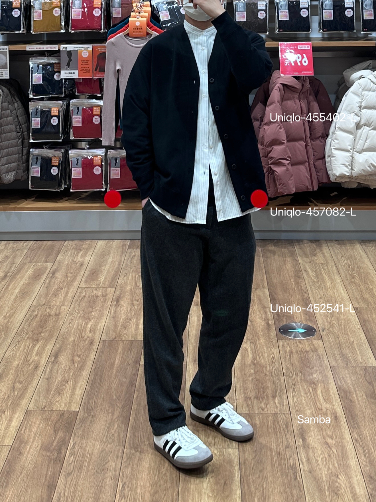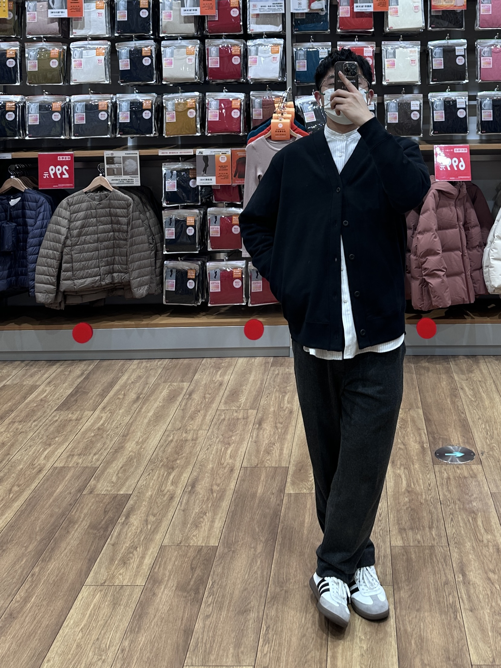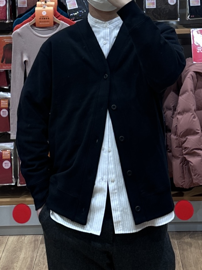 🧥- 休闲的开衫毛衣内搭条纹立领衬衫,办公室穿搭就来了,比较中性穿着也舒适~内搭衬衫沿用了+J联名系列的面料和剪裁,衣长有所调整,不错不错! 👖- 直筒千鸟格西裤 👟- samba