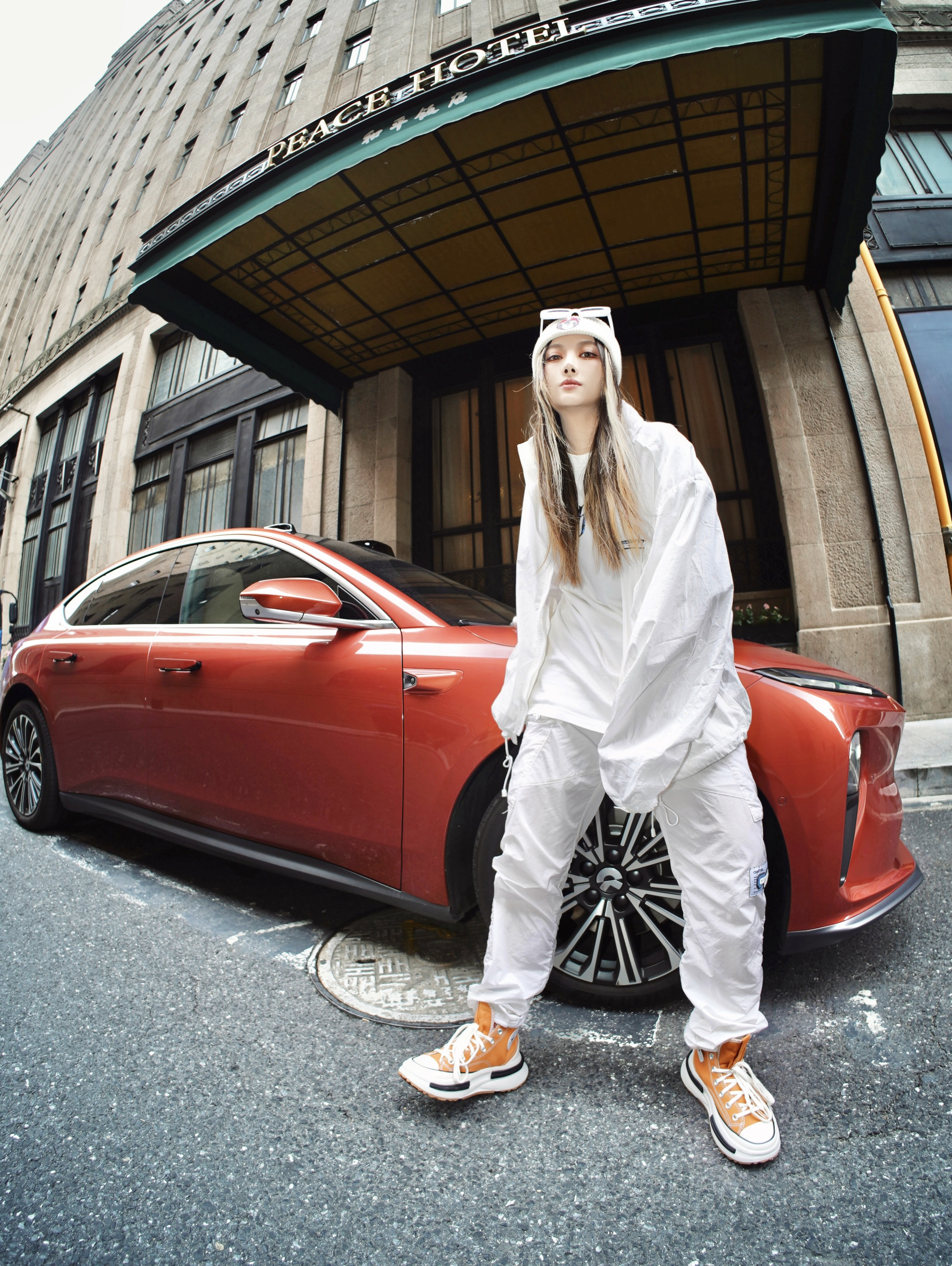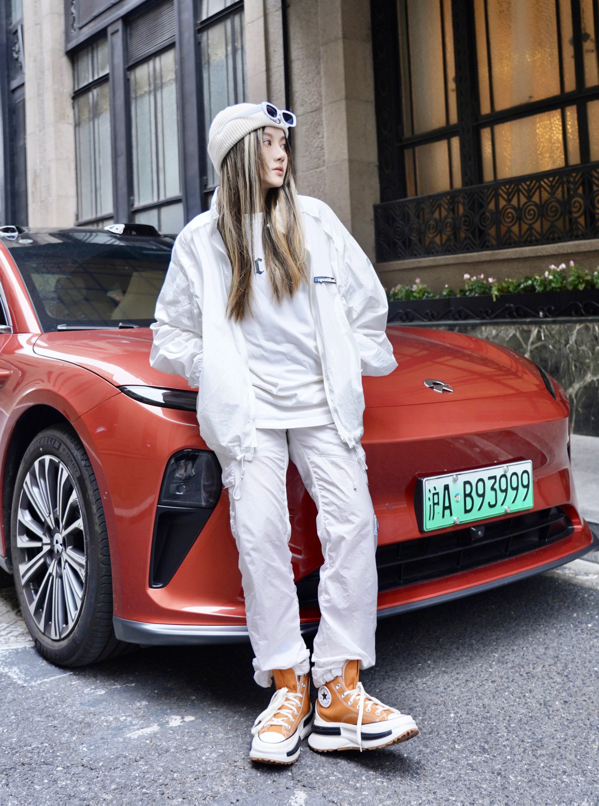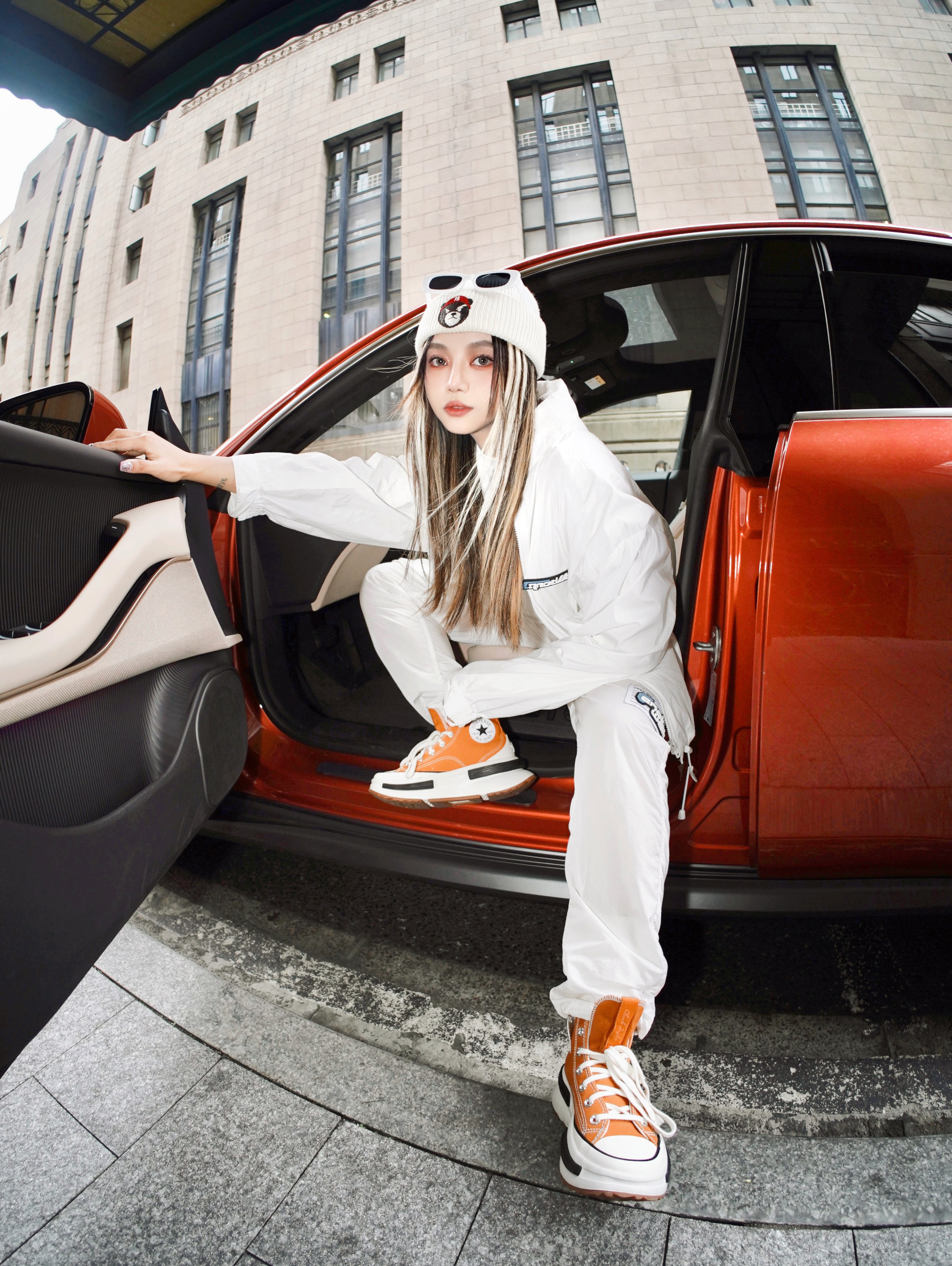 鞋子色系和车很搭 整套白色搭配橙色鞋很亮眼 厚底的快乐根本停不下来 上脚蛮舒服的,矮子秒变175系列