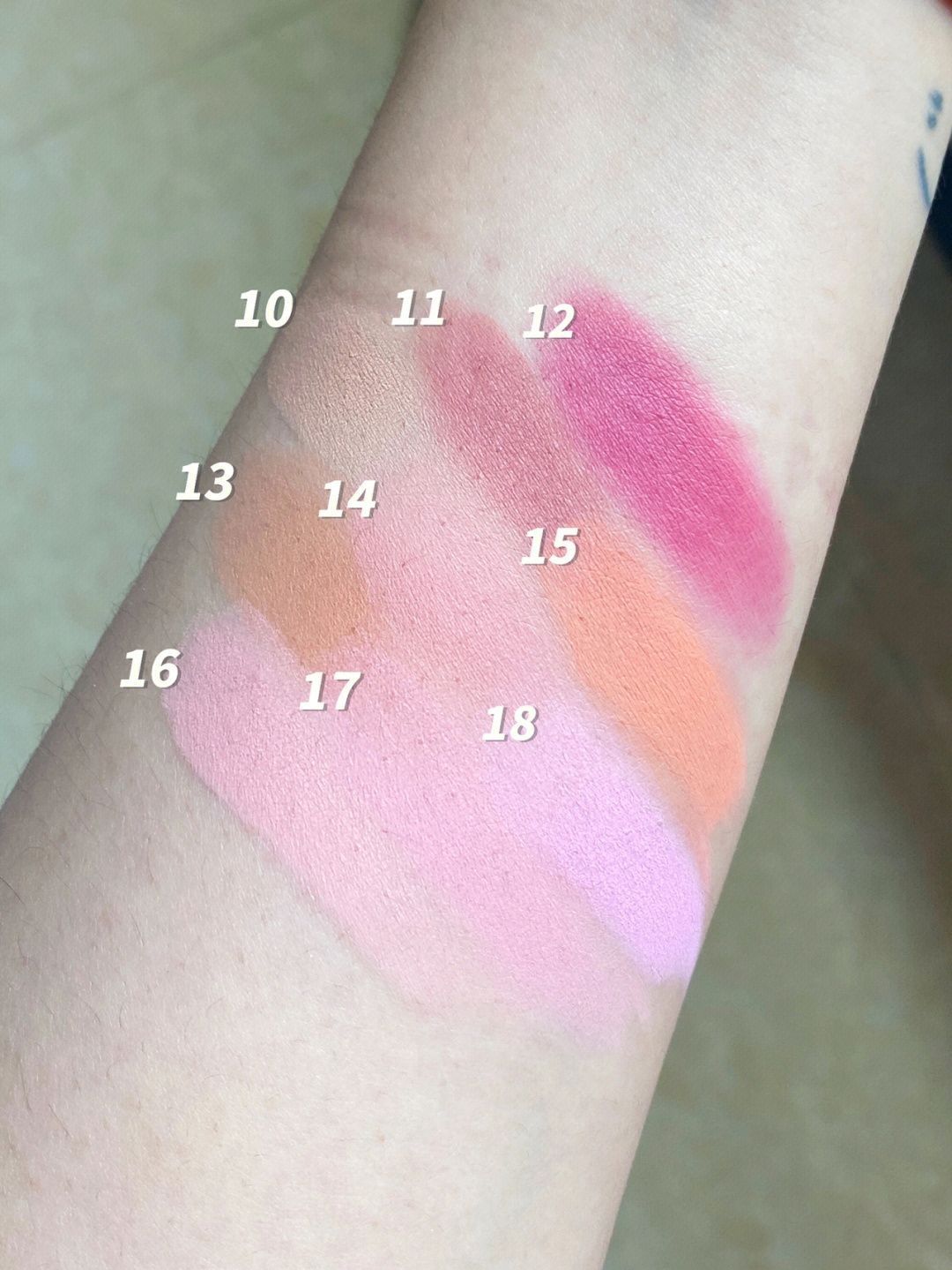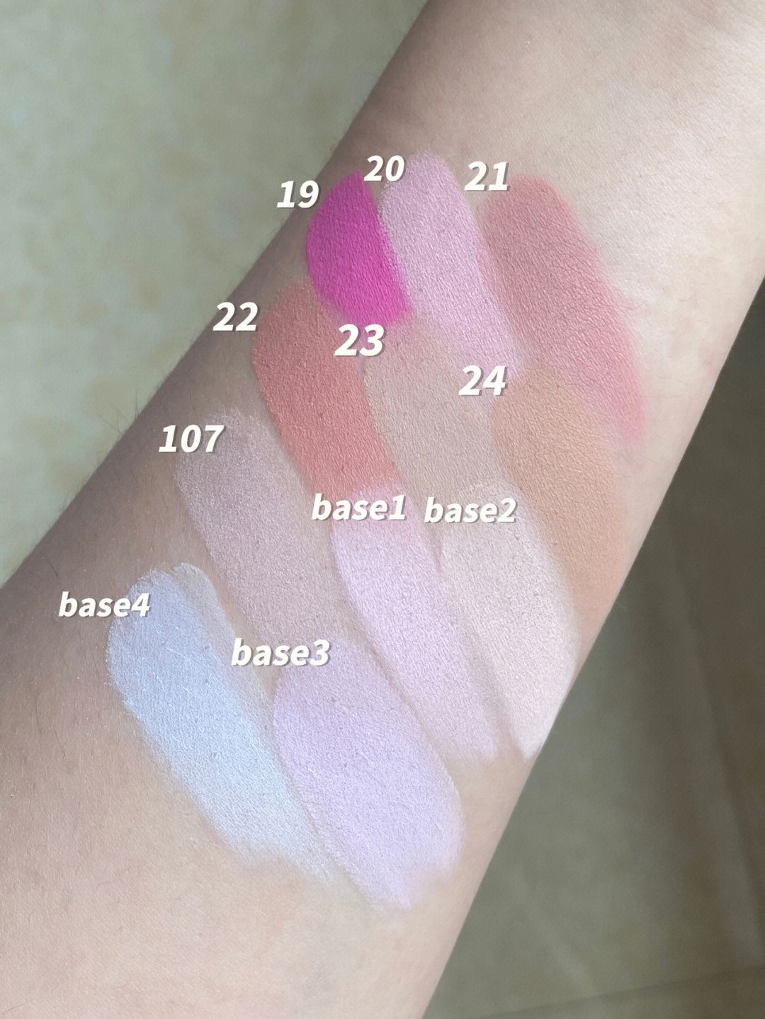 粉质出乎意料的好 细腻又显色 ! 10+r一颗 学生党完全可以喜欢的都收入囊中辣! 图5:粉调相似色 图6:紫调 图7:氛围感满满 很特殊的两个颜色 图8:两个修容色 一个鼻影一个侧影