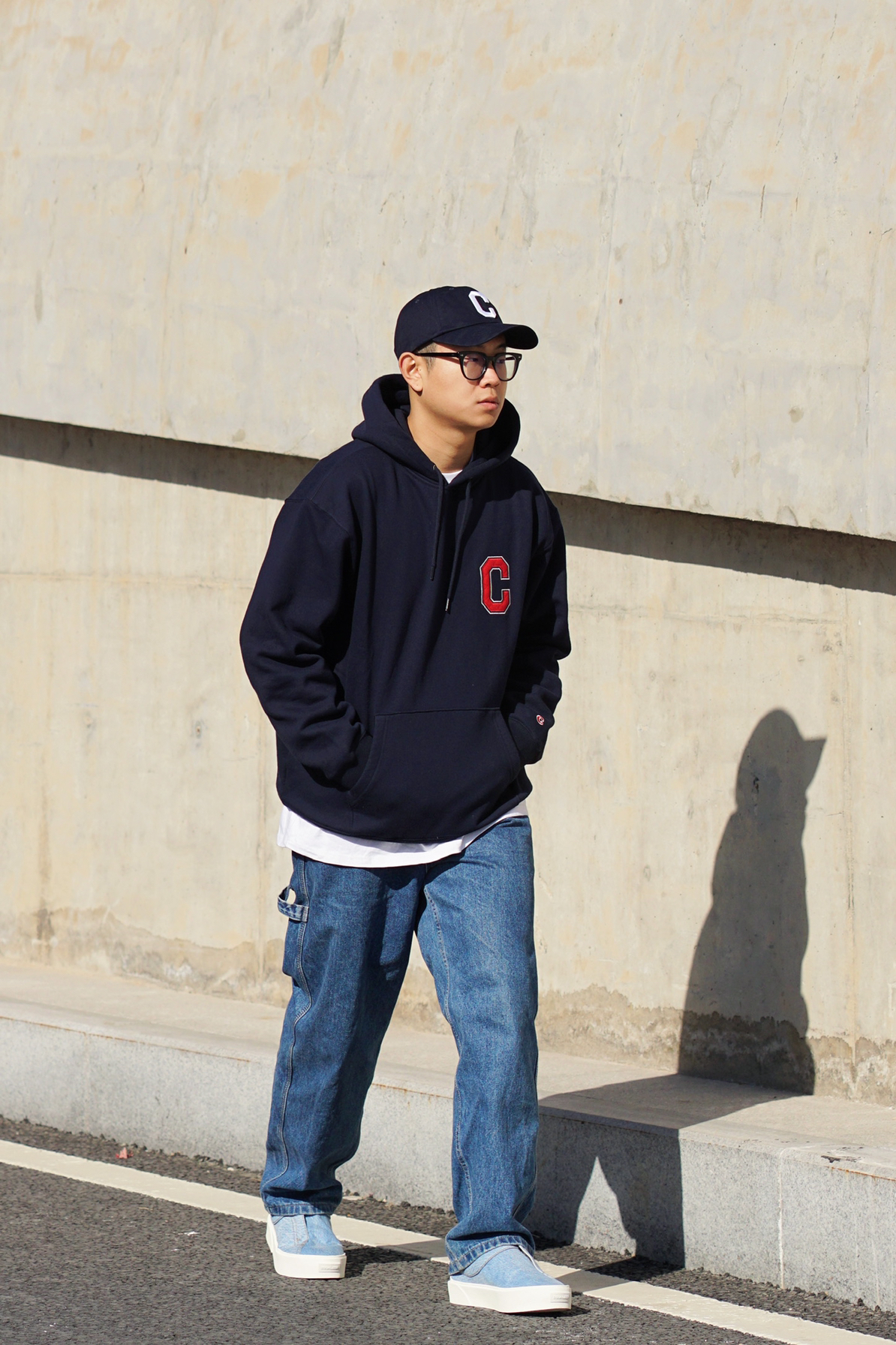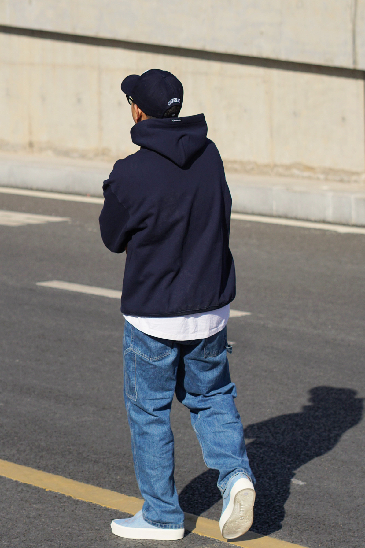 cleanfit舒适简单很适合秋天 蓝色先入秋🫐 今天这套不同程度的蓝色想搭配 牛仔裤和同样牛仔材质的鞋子小呼应👖 —— 这套韩系穿搭相呼应 Covernat的卫衣和帽子都是用了同样的简约字母印花 Cleanfit小氛围拿捏了