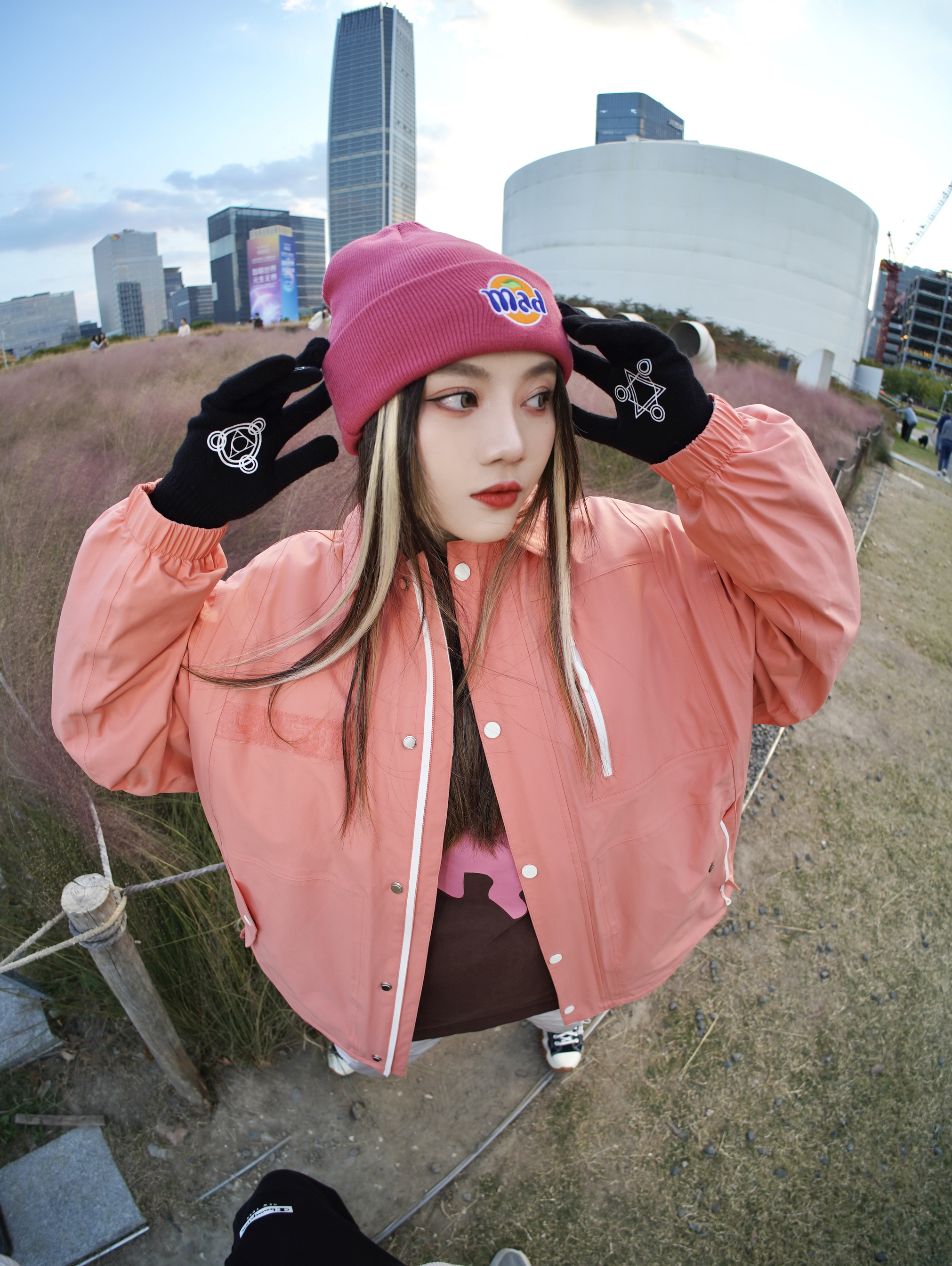 最近很迷粉色单品👩🏻🎤 讲真这个色系搭的好不会显黑! 秋冬需要一点色彩点缀 滑雪服自带的保暖属性南方的冬天加一件卫衣就可以 oversize和矮子乐叠加的快乐…double@!