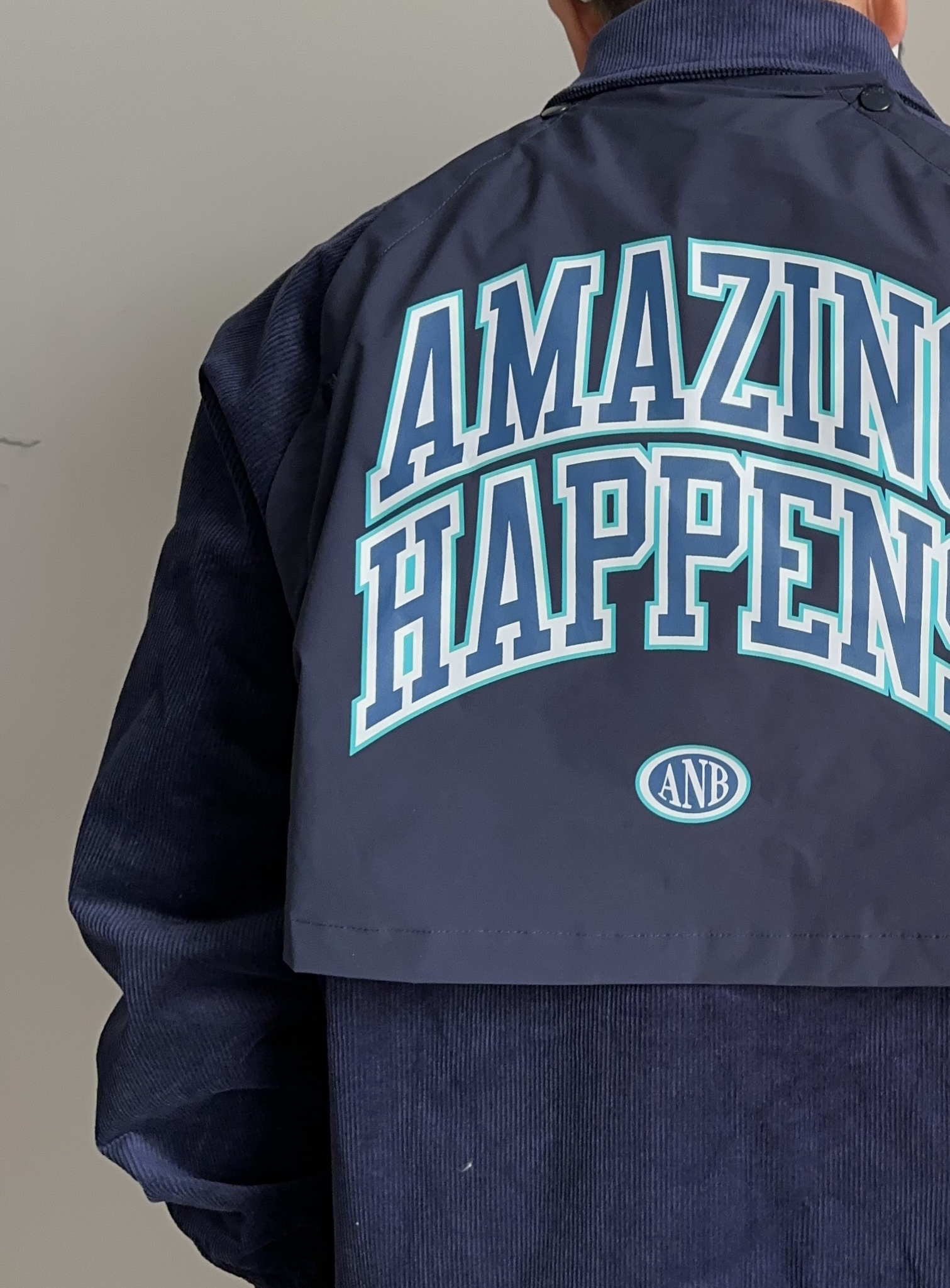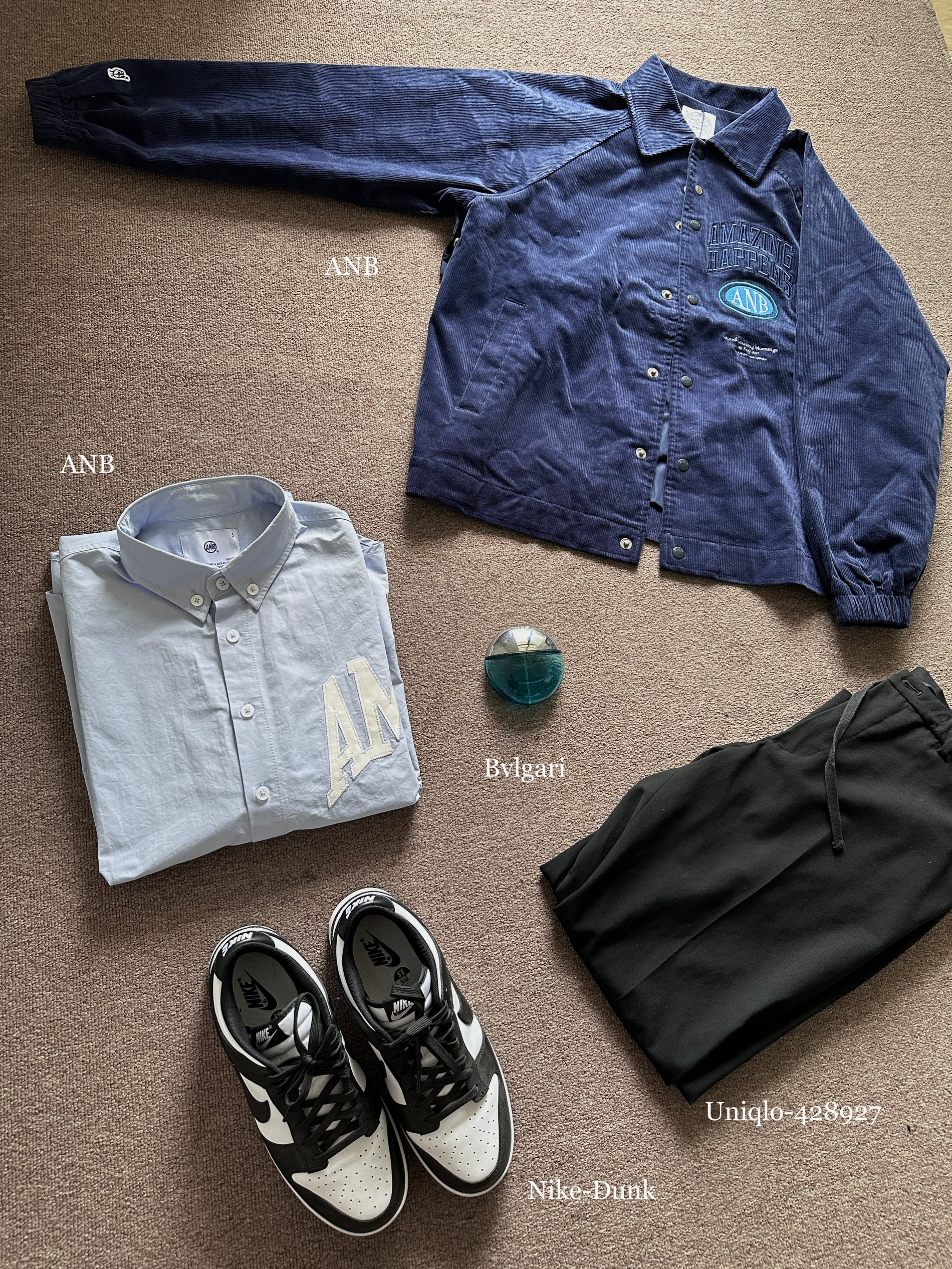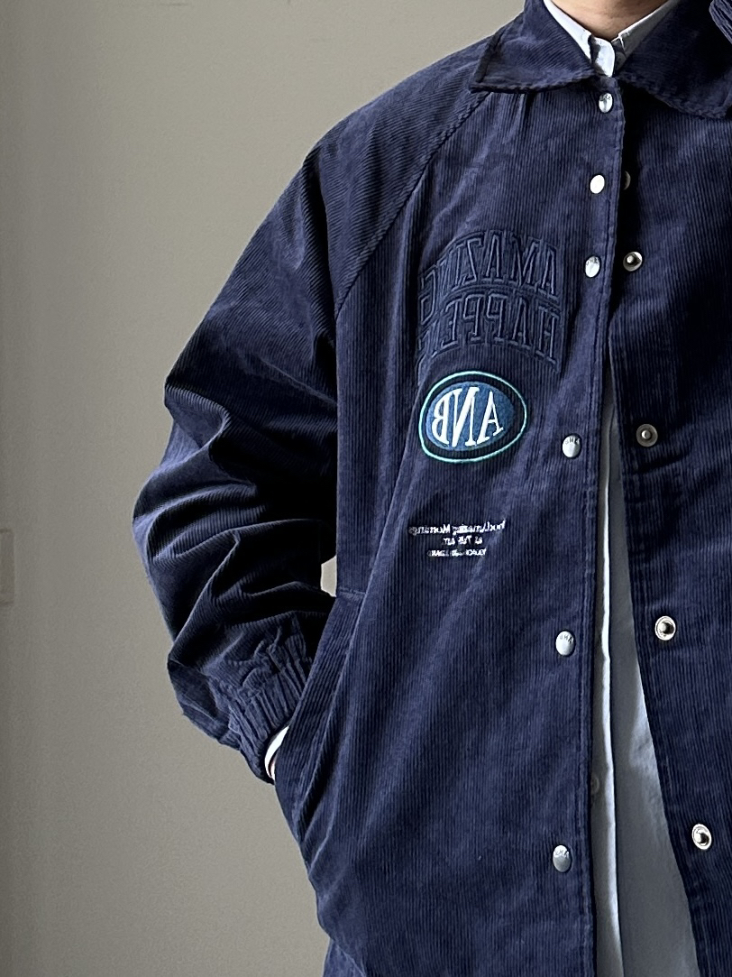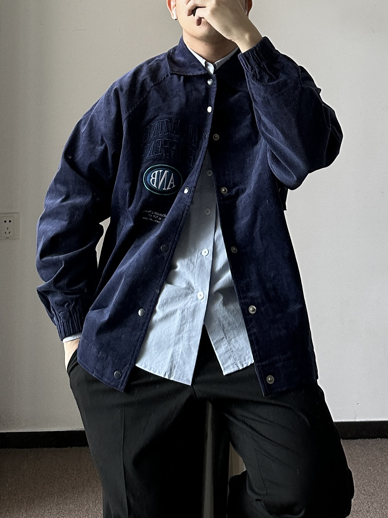 素人也能好看系列~174cm / 65kg 🧥- 藏青色+灯芯绒+夹克版型,直中我红心。吸引我的第一眼绝对是它的胸前刺绣,好好看!后背也有巧思,可拆卸的背贴,上身L~ 👖- 黑色直筒西裤,上身L。 👟- dunk熊猫