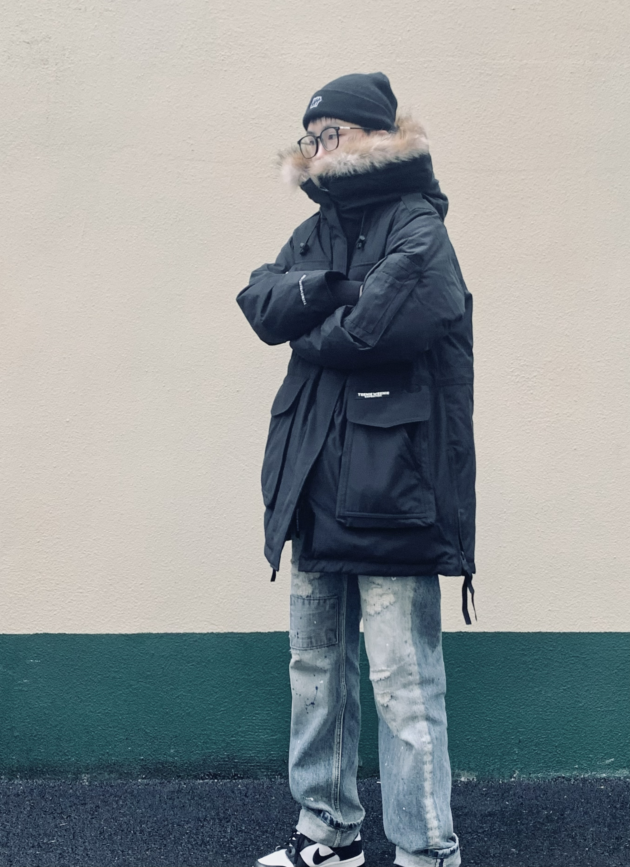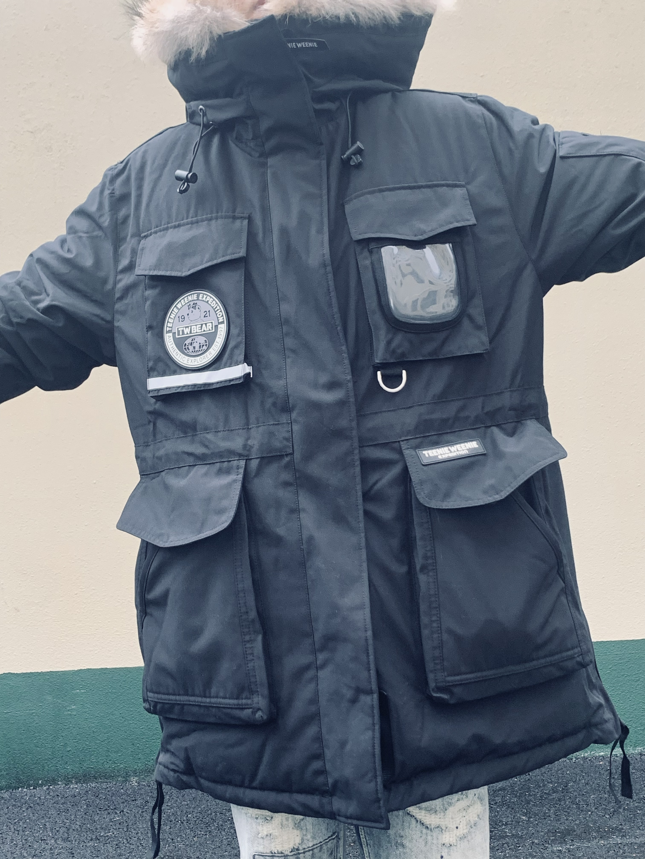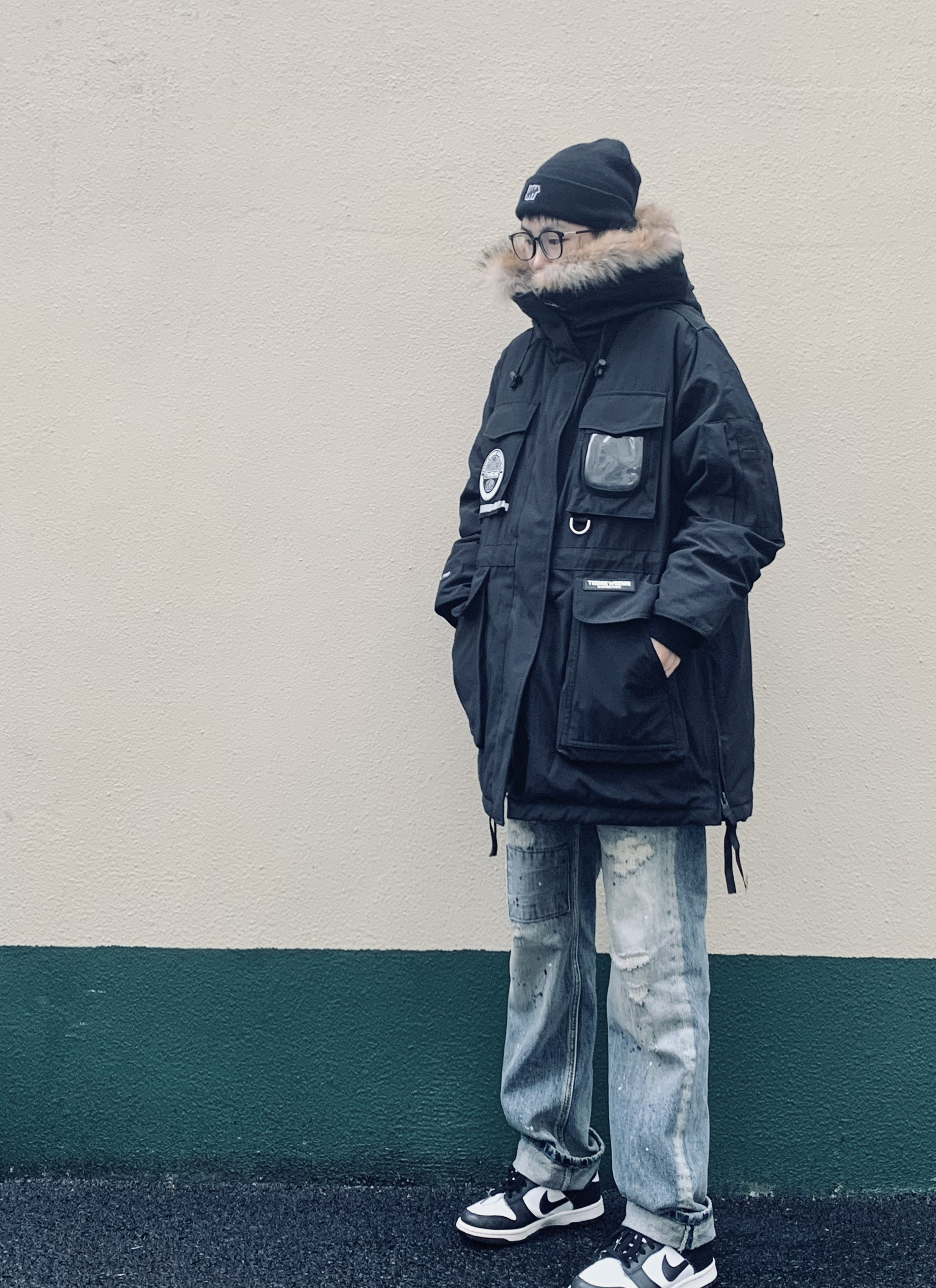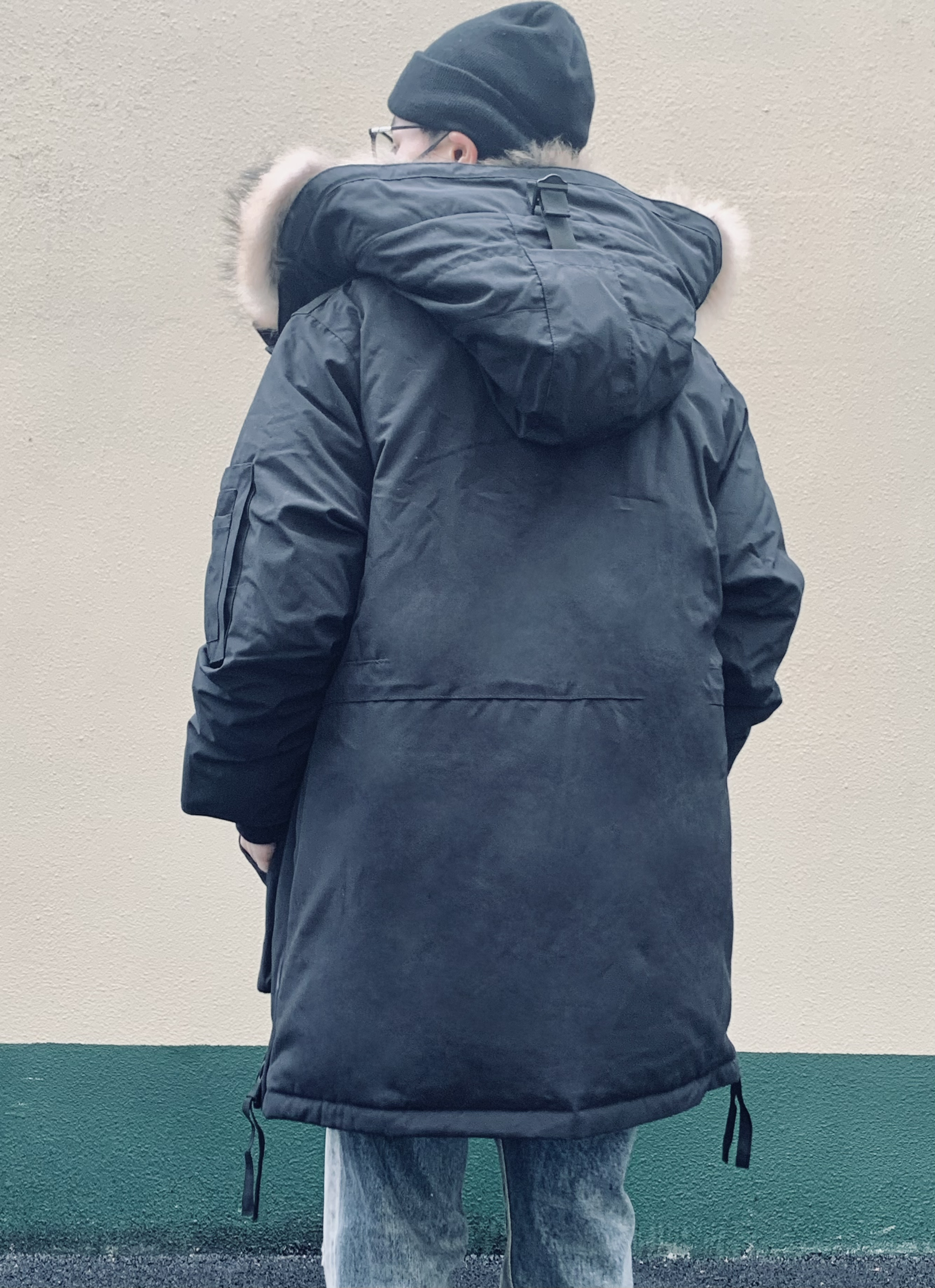 工装羽绒服get! 上身立马就暖和了 90%的充绒量 很厚实 三防面料 防水防油耐脏 我最爱的是它的口袋设计 里面有绒 手伸进去不会冰冰凉凉 冬天再也不怕冻手了 毛领也很舒服 拉链拉上 脖子一圈也是毛绒绒的 防风效果超好! 腰上还有抽绳设计 南方的冬天 一件足以过冬
