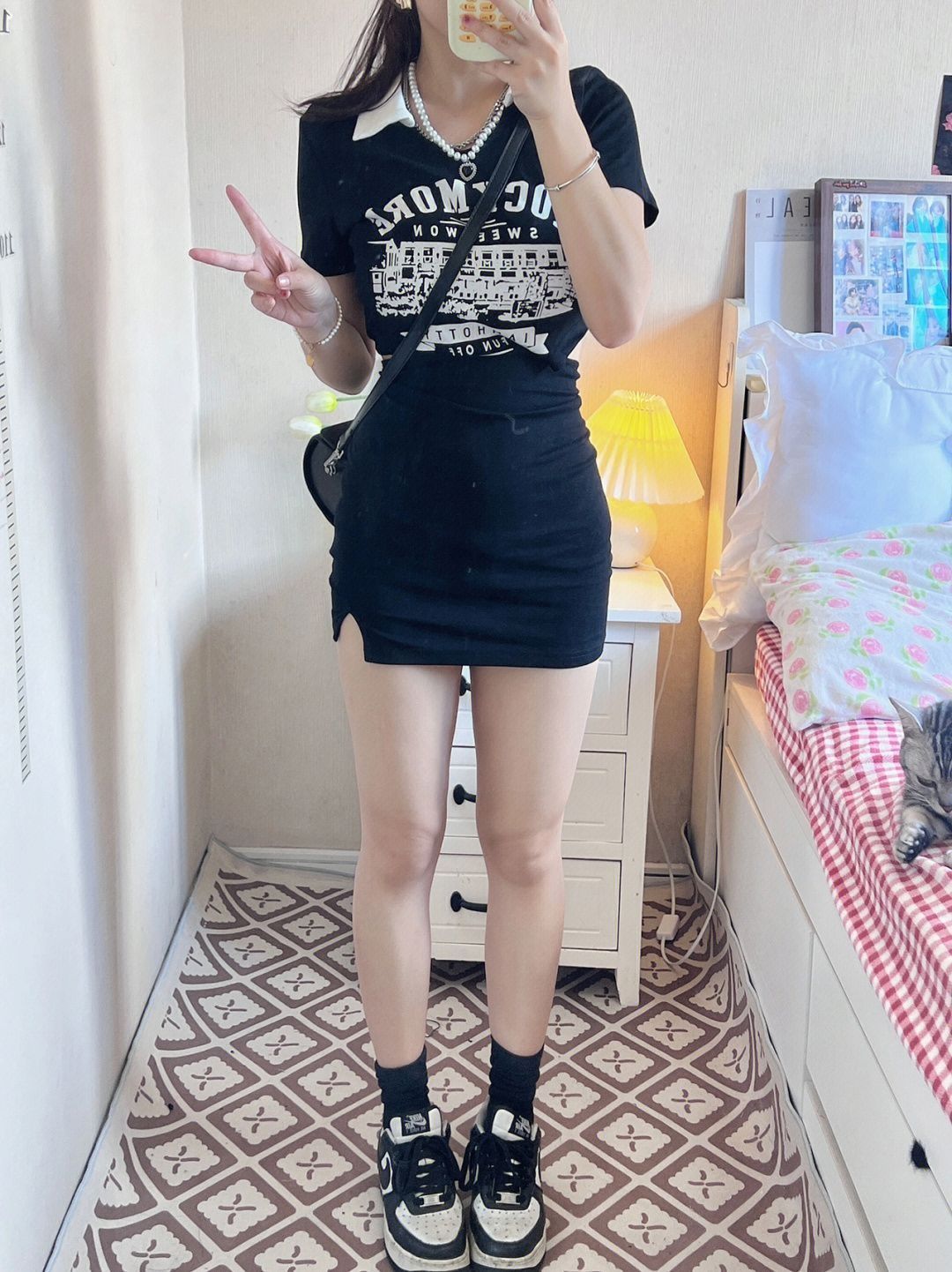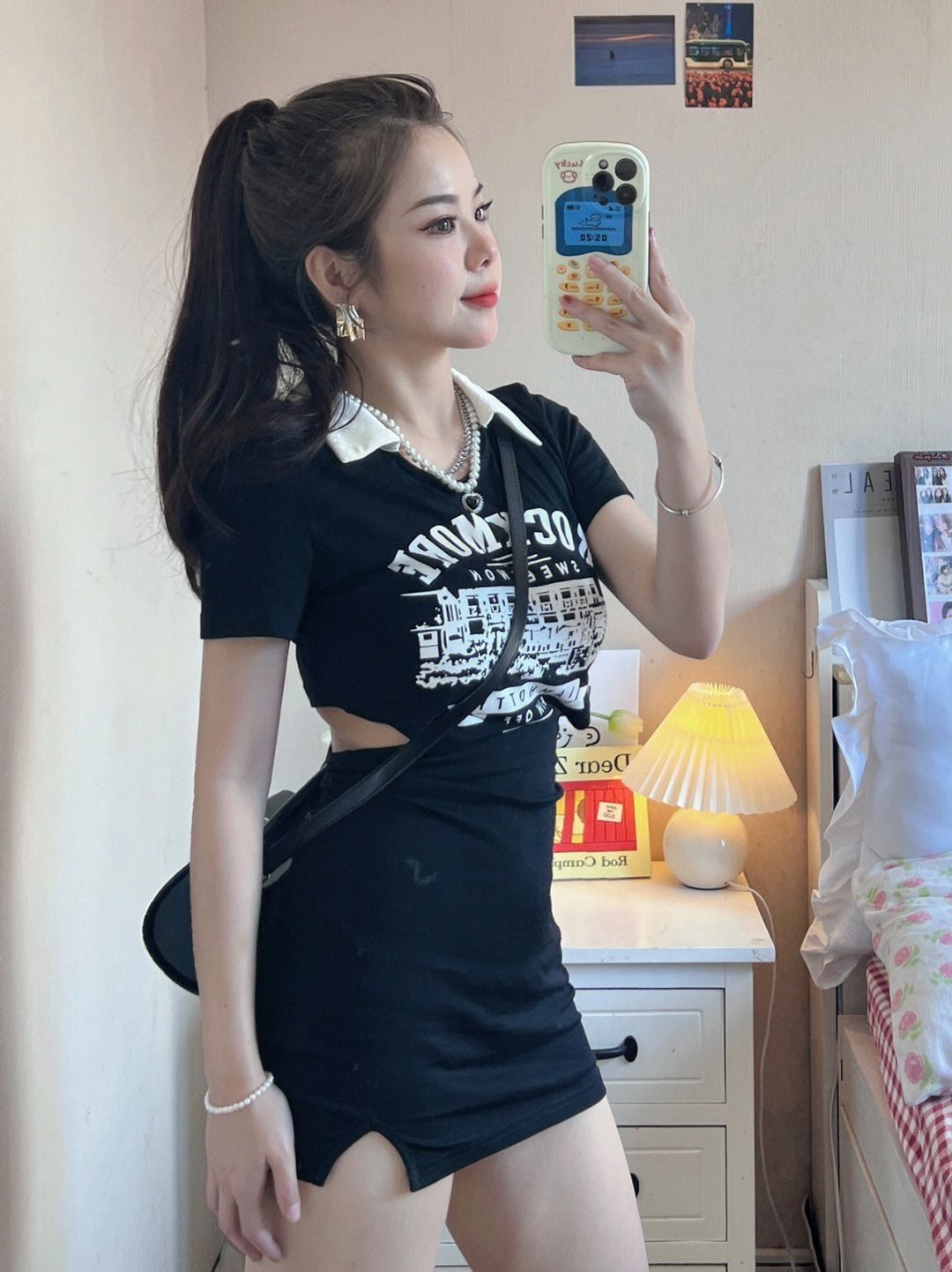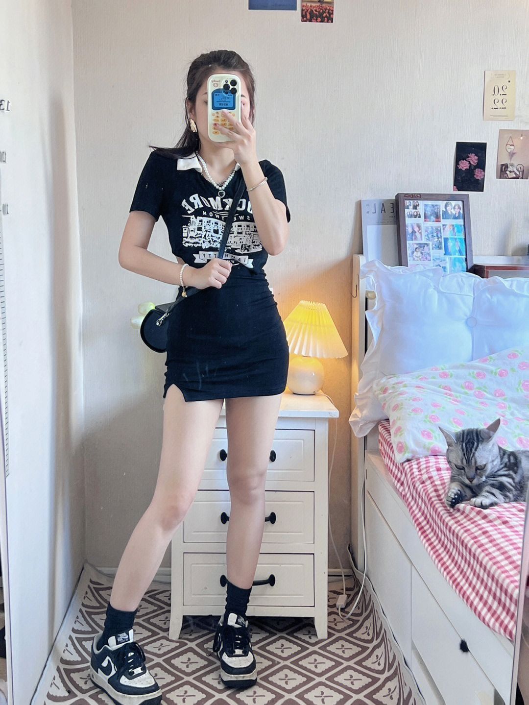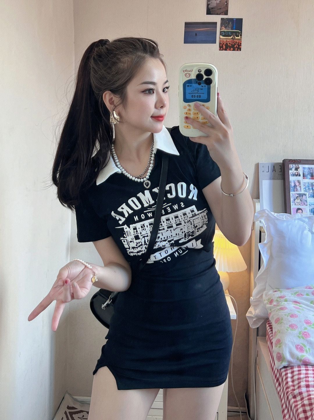 辣妹小黑裙总要有一条吧 腰部镂空设计超级显瘦 比较贴身 (缺点:会有一点露内衣 长度很适合小个子 后面绳子可自由调节 Polo领又乖又辣妹