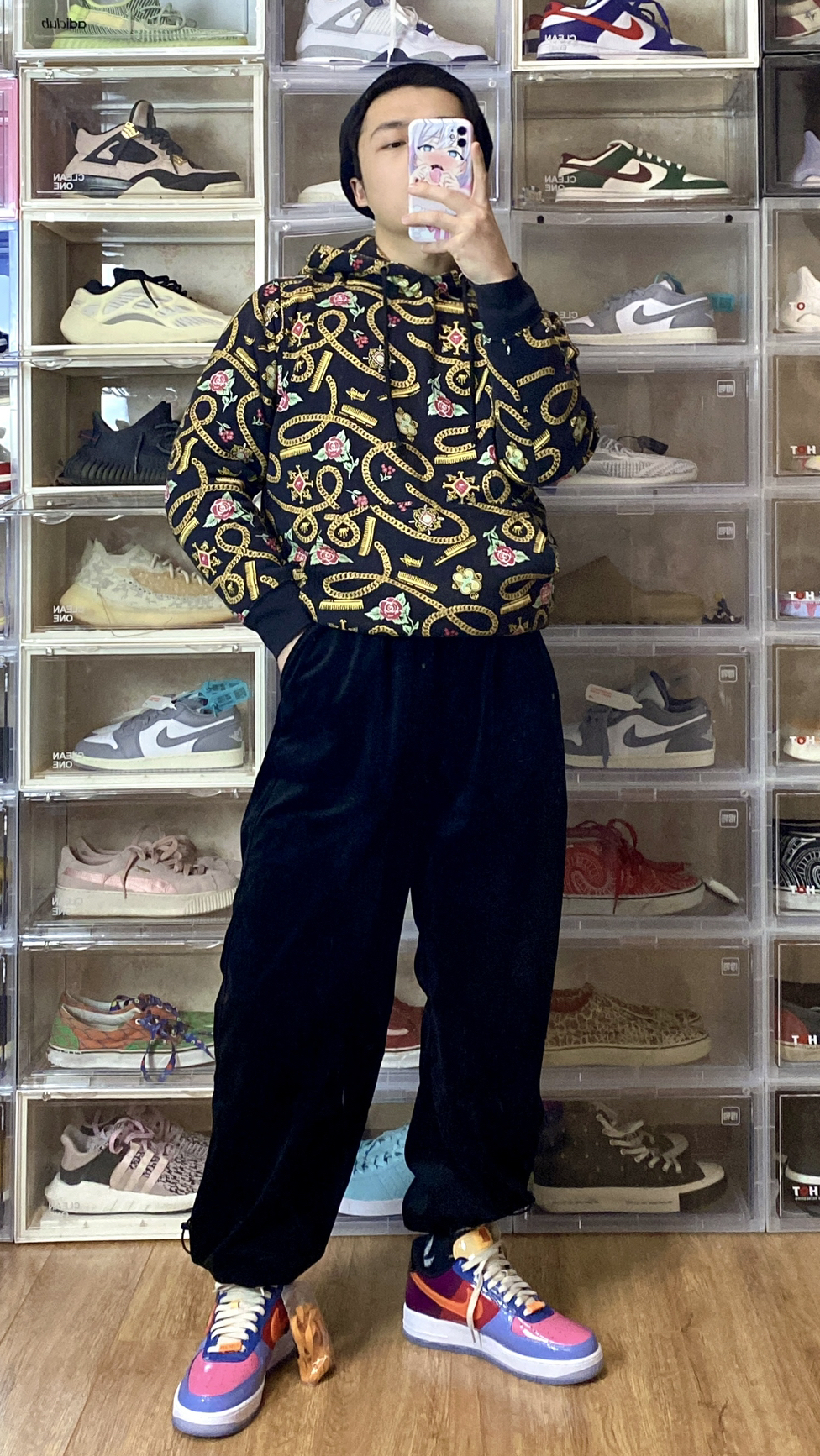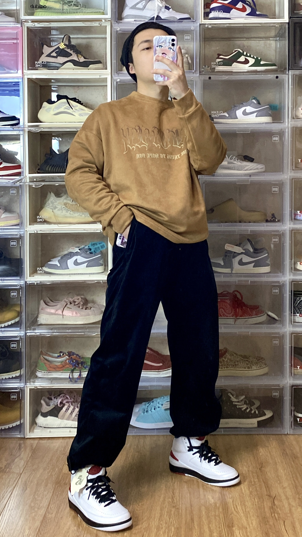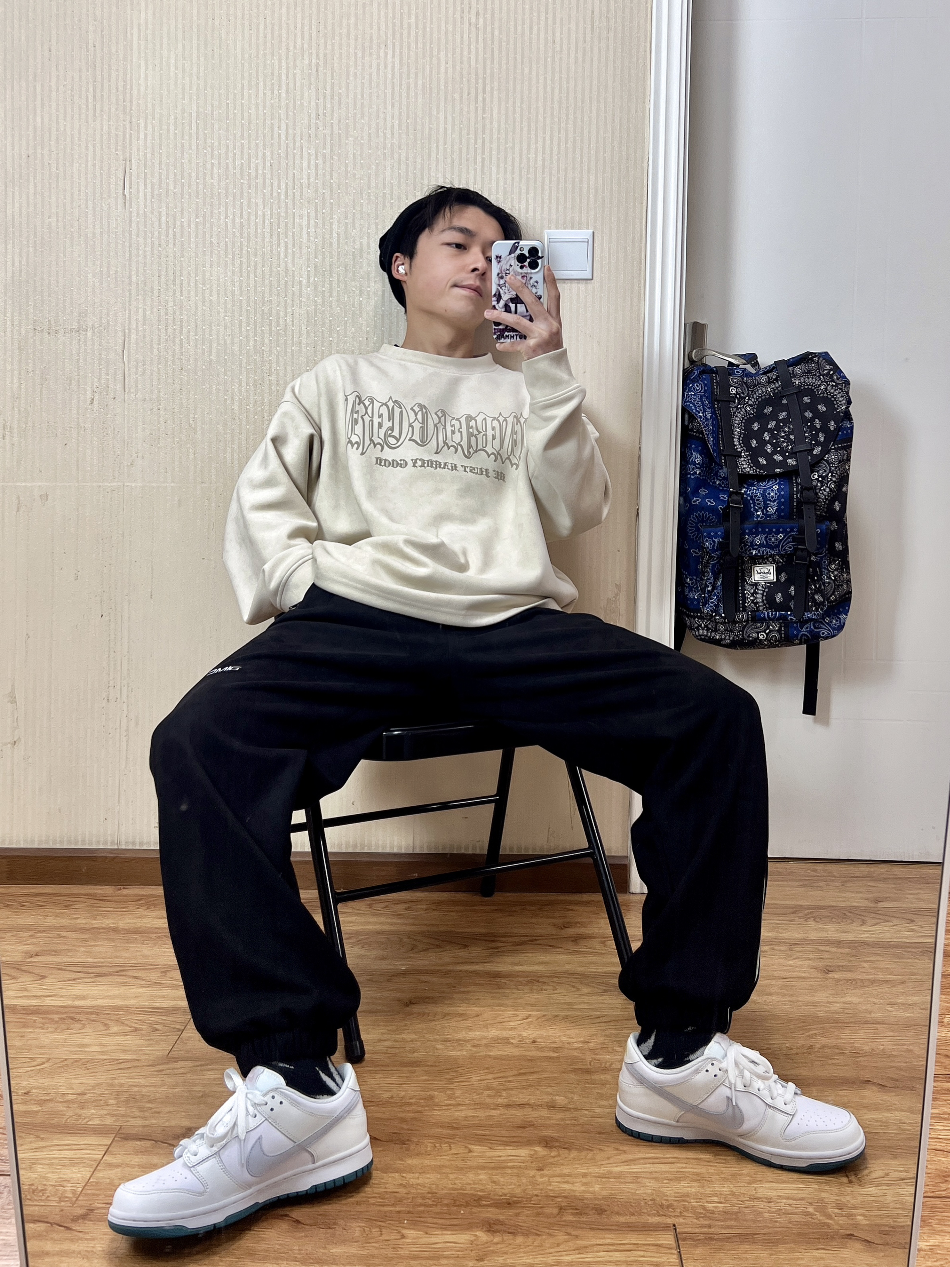 👴170 60 卫衣👔 BJHG 第一次买国潮的东西 对比美潮其实挺香的 裤子👖 DIMC 麂皮束脚裤 麂皮材质很不错 挺有质感 鞋子👟 Nike Dunk low (gs)白绿 小脚40码正好能穿gs 每次都省不少钱啊🤔