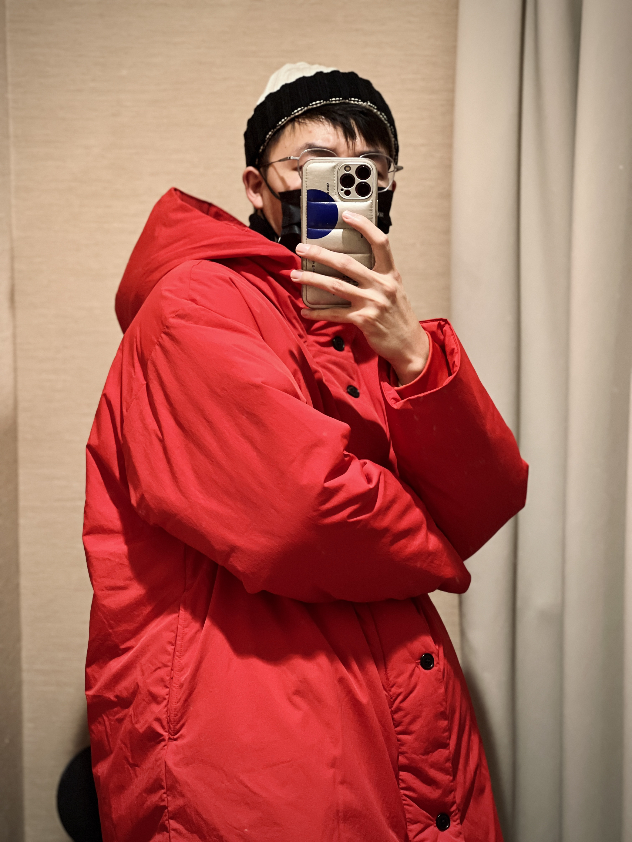 新年想穿红色的友友们 可以看看MUJI的这件无性别羽绒服 颜色是非常正的红色 长度比正常版型略长 内搭可以选择米色等温和的颜色 无论是走亲访友相亲约会 都会是最亮眼的仔、女 本命年就更应该入了 保证来年平安顺遂 👦🏻:180/65 🧥:MUJI XL 👔:MUJI Labo L 👖:MUJI Labo L