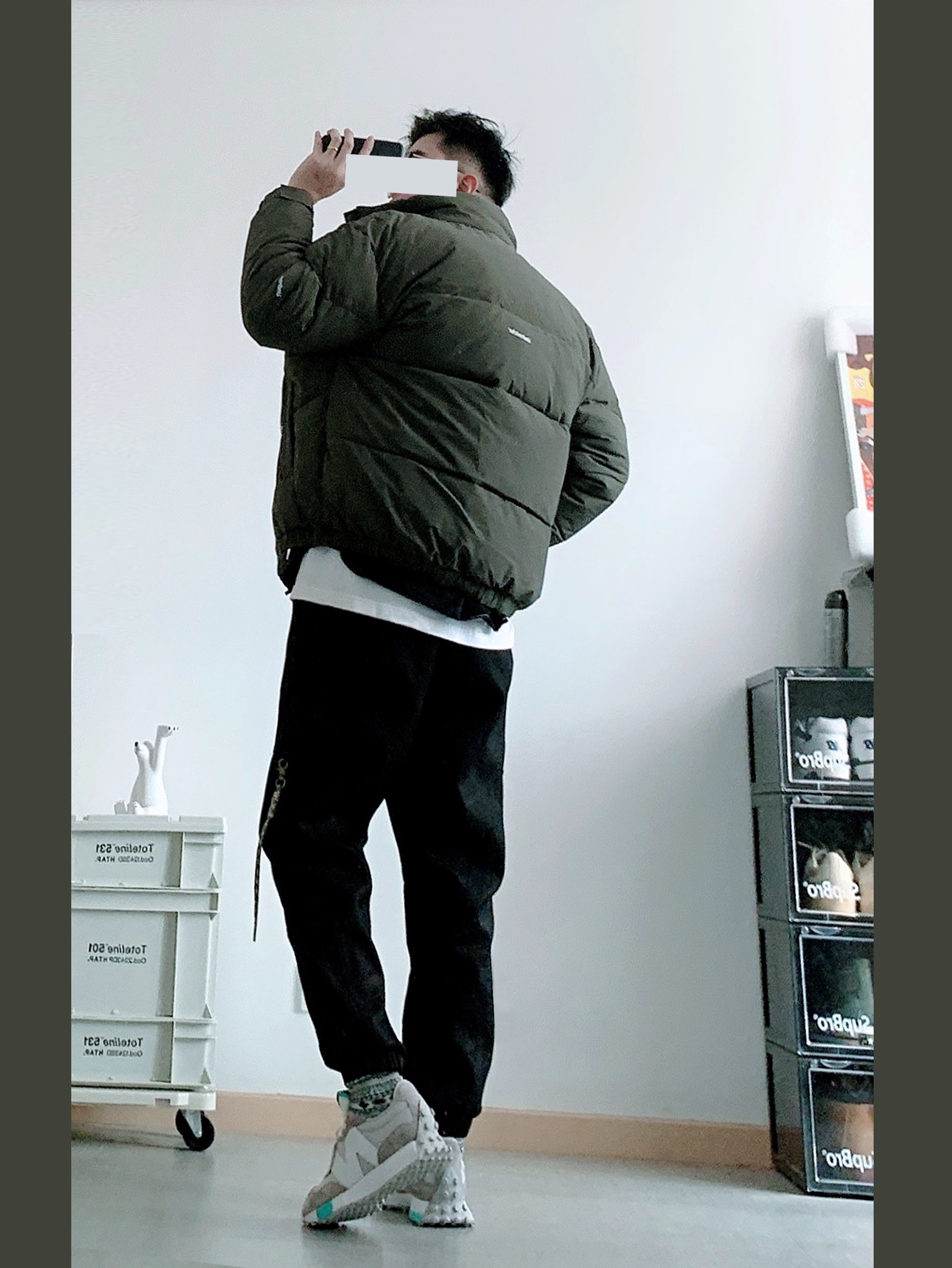 ⬆️今日Look分享: 军绿色复古工装棉服➕黑色衬衫➕黑色工装裤 整体风格为日系复古工装风👀 军绿色棉服叠穿黑色衬衫 耐看、不挑人的同时❗️ 又很有特色、干净利落、硬朗显气质😎 无论是男生约会穿搭还是日常通勤穿搭都🉑️驾驭!