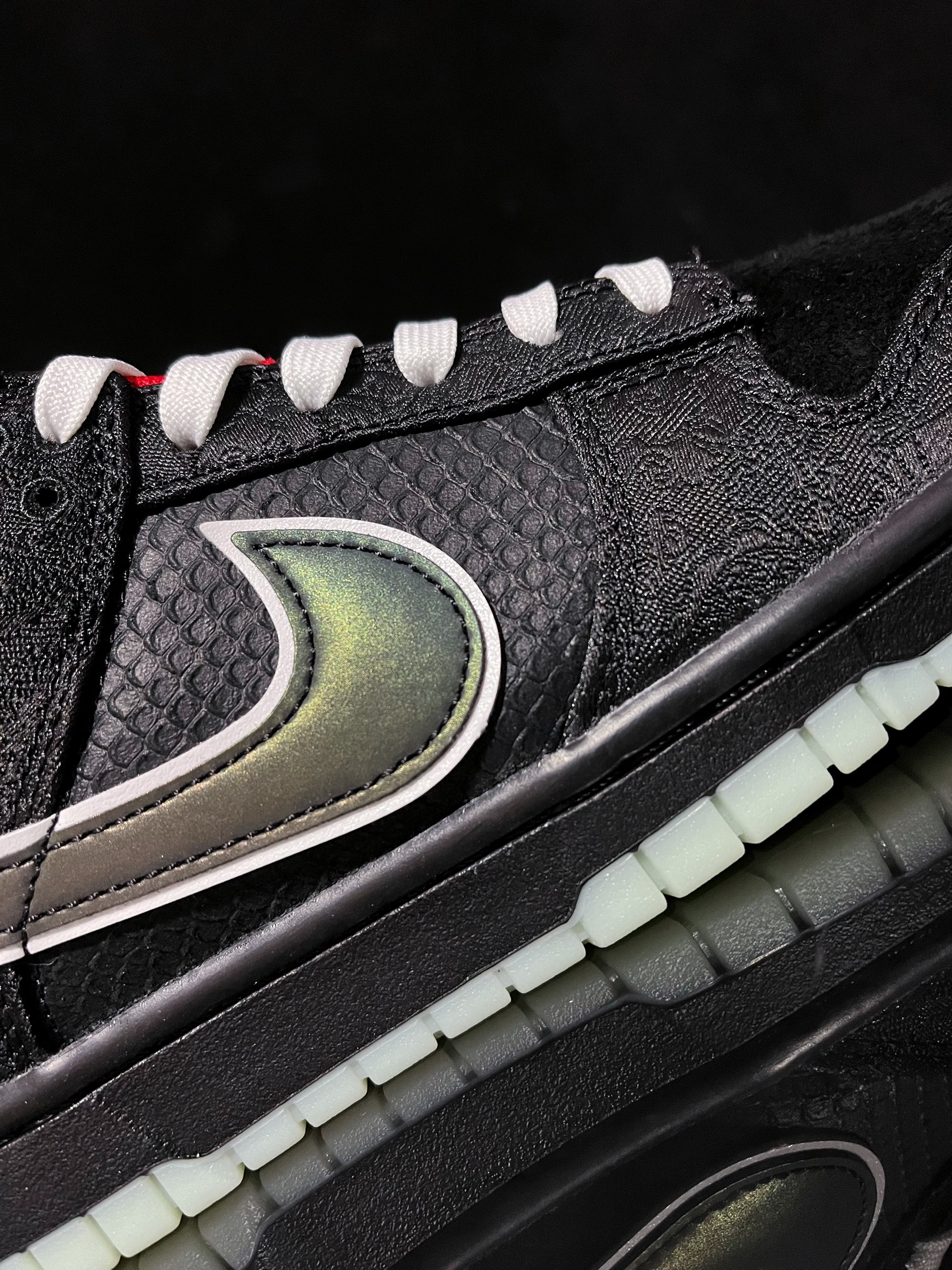 今天给大家开箱一双Dunk Low LPL夜光英雄联盟电竞系列,采用经典的Dunk风格,穿出别样的态度。 这款鞋致敬LPL及电竞精神,选取具有LPL精神象征的龙鳞暗纹图案搭配夜光材质,黑暗中也非常炫酷。 双色可替换鞋带印有LPL与NIKE双logo,细节之处,全是惊喜,另外还赠送一副红色的鞋带可供更换搭配 鞋底的夜光是非常的亮(上图鞋底就是夜光效果) 鞋垫上有2颗星星图案,这是2星荣耀光环...