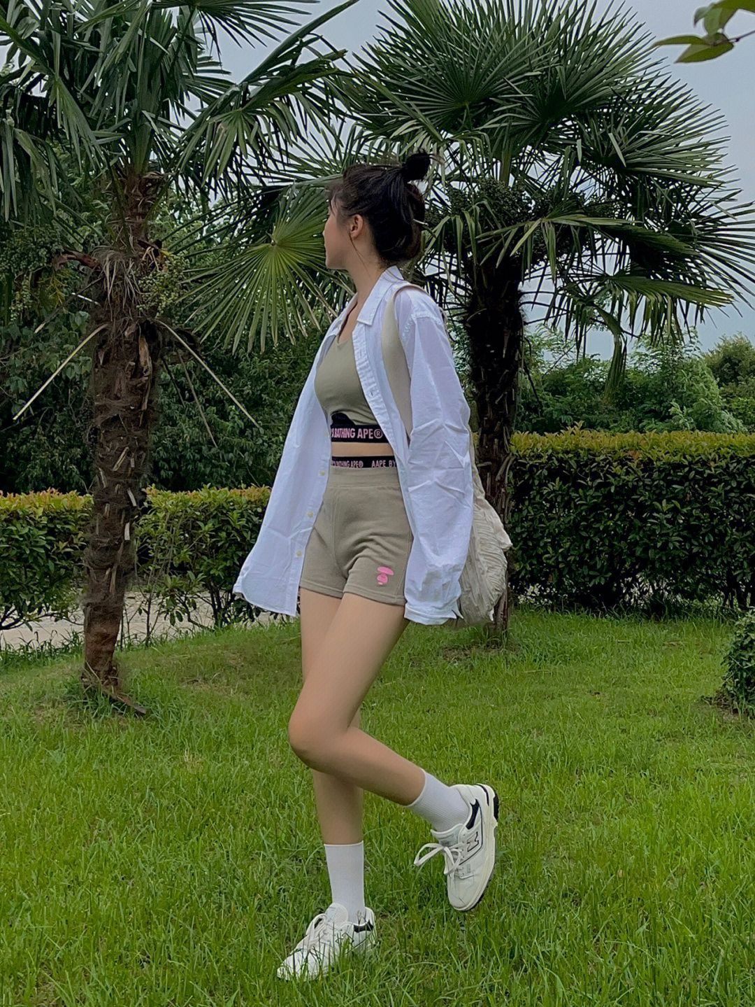 分享今日份 健身运动感穿搭来啦~~ 外搭件衬衫儿更休闲些 🎽🩳AAPE 👕Ralph Lauren 👟NB550 👜Cos