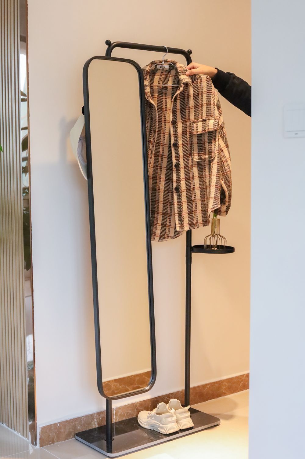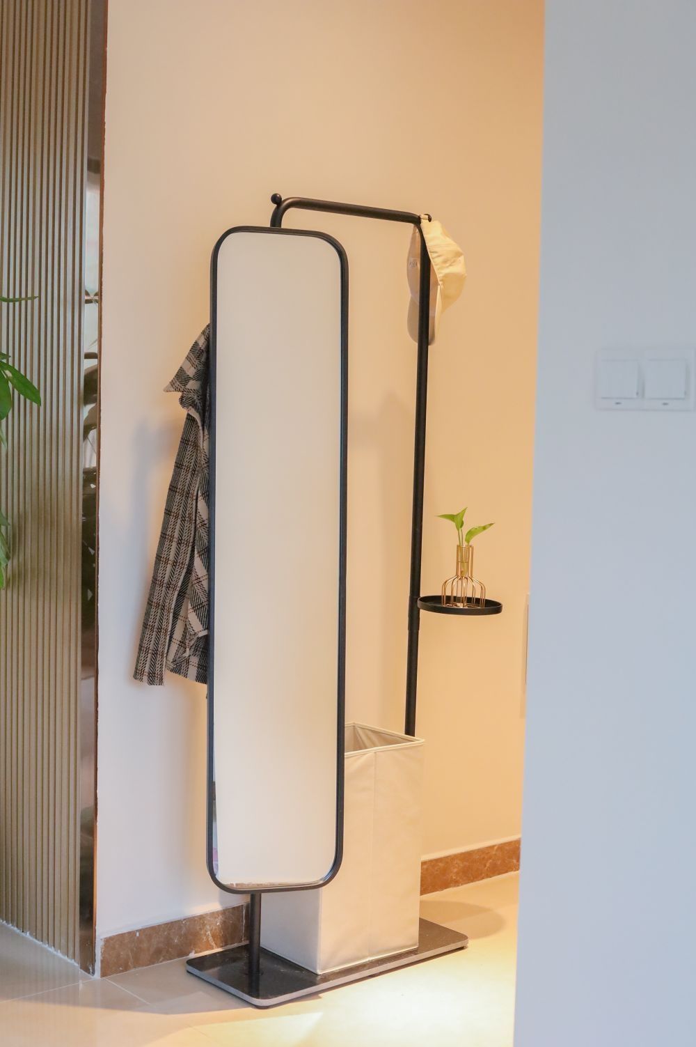 精致生活需要仪式感,一天的美好心情就从照镜子开始。 对于小户型来说,一物多用的全身镜真的太香了!🪞溪有好物的“几何世界”全身镜既是衣帽架、也是穿衣镜,下面还有个收纳篮,🏠可以放在客厅、餐厅、卧室.... 全身镜+衣帽架一体设计超省空间,360°自由旋转,放在卧室不想对着床的时候,可以旋转到对着墙的角度。翻转过来的背面T型挂钩还可挂衣帽👒 铁艺材质不怕有味,📷随手一拍都很高级。底座大理石,挂多...