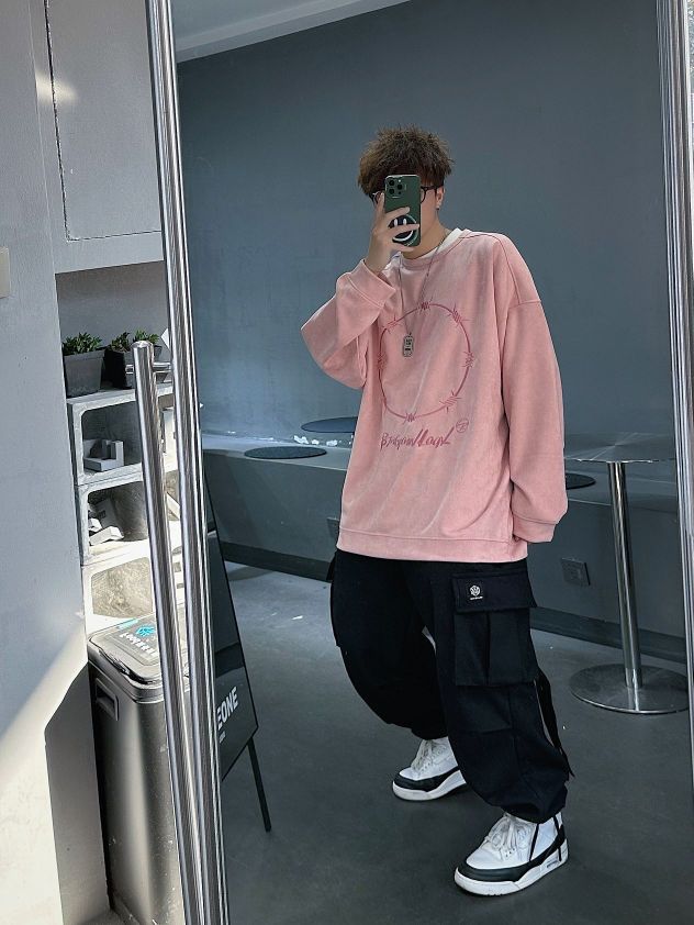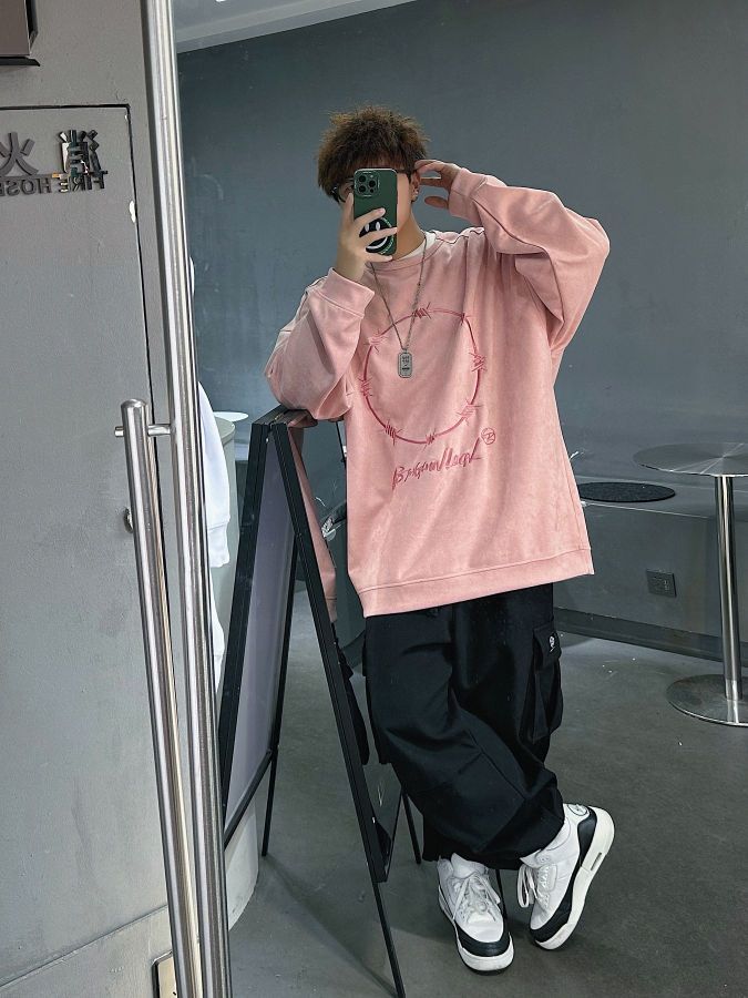 BJHG这件粉色卫衣太让人惊艳了, 麂皮绒面料摸起来很舒服,上身有点垂坠感 宽松慵懒,最重要的是粉色实在是太好看了,超减龄!