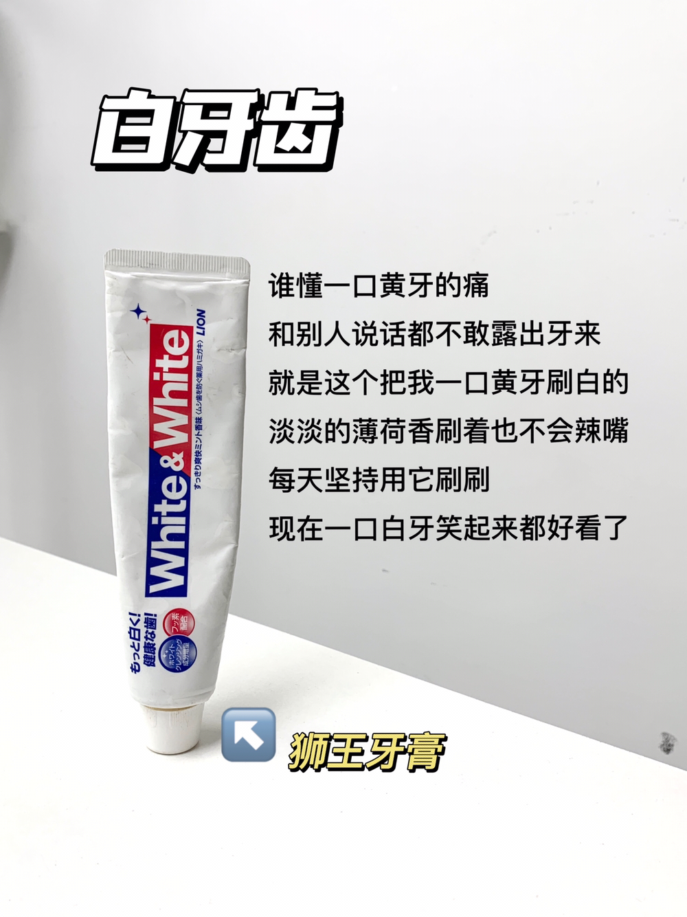 本篇笔记关联了狮王 去渍防蛀清新WHITE美白含氟牙膏 去口臭改善牙黄 小苏打葡萄柚、【唇部脱毛】Nair 唇部腋下脱毛膏 20g(面部款)等商品,为用户提供真实的使用体验和购买参考。