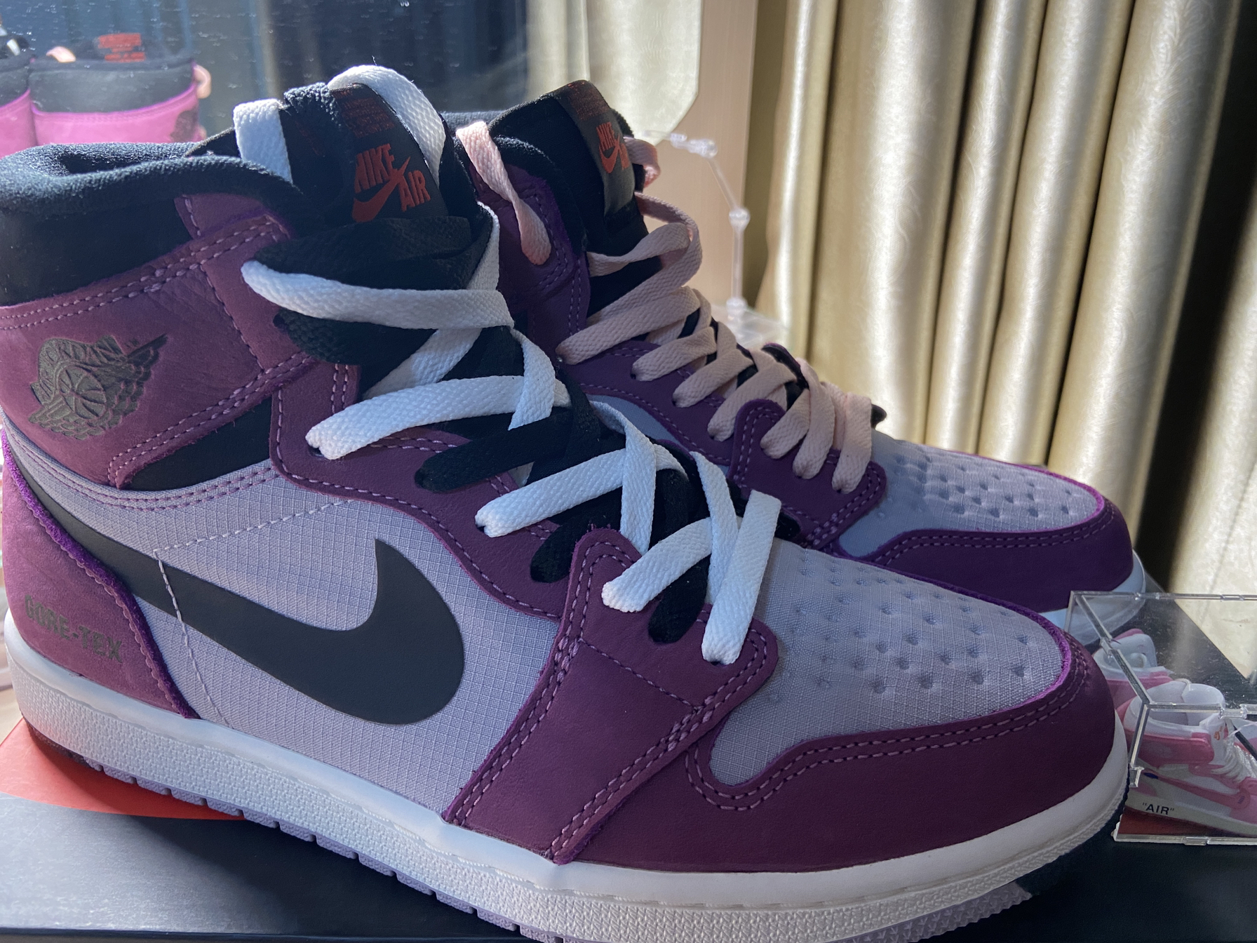 本篇笔记关联了Air Jordan 1 板鞋 运动休闲鞋 复古潮流支撑合成革 高帮/GORE-TEX/紫色/黑色等商品,为用户提供真实的使用体验和购买参考。