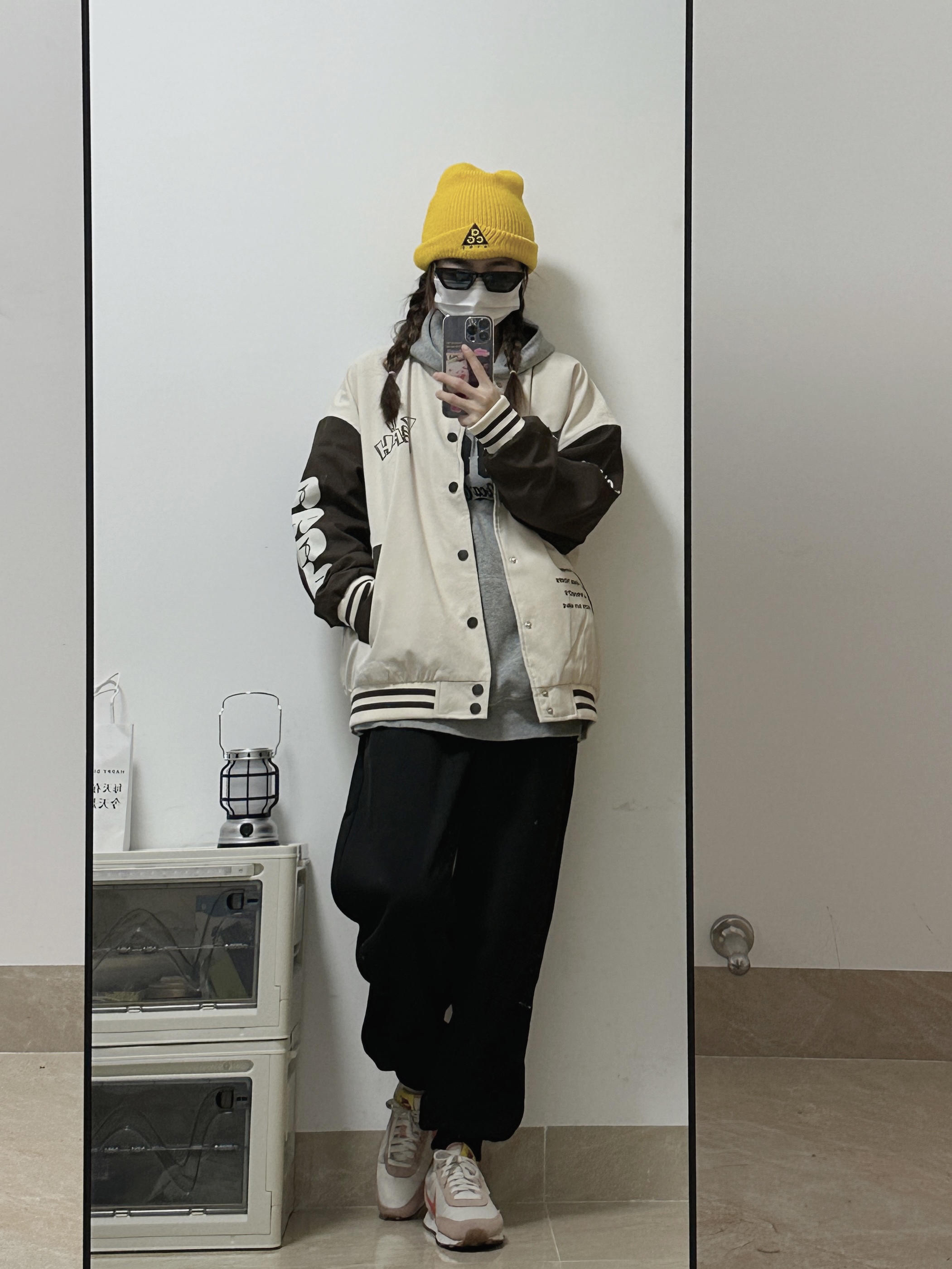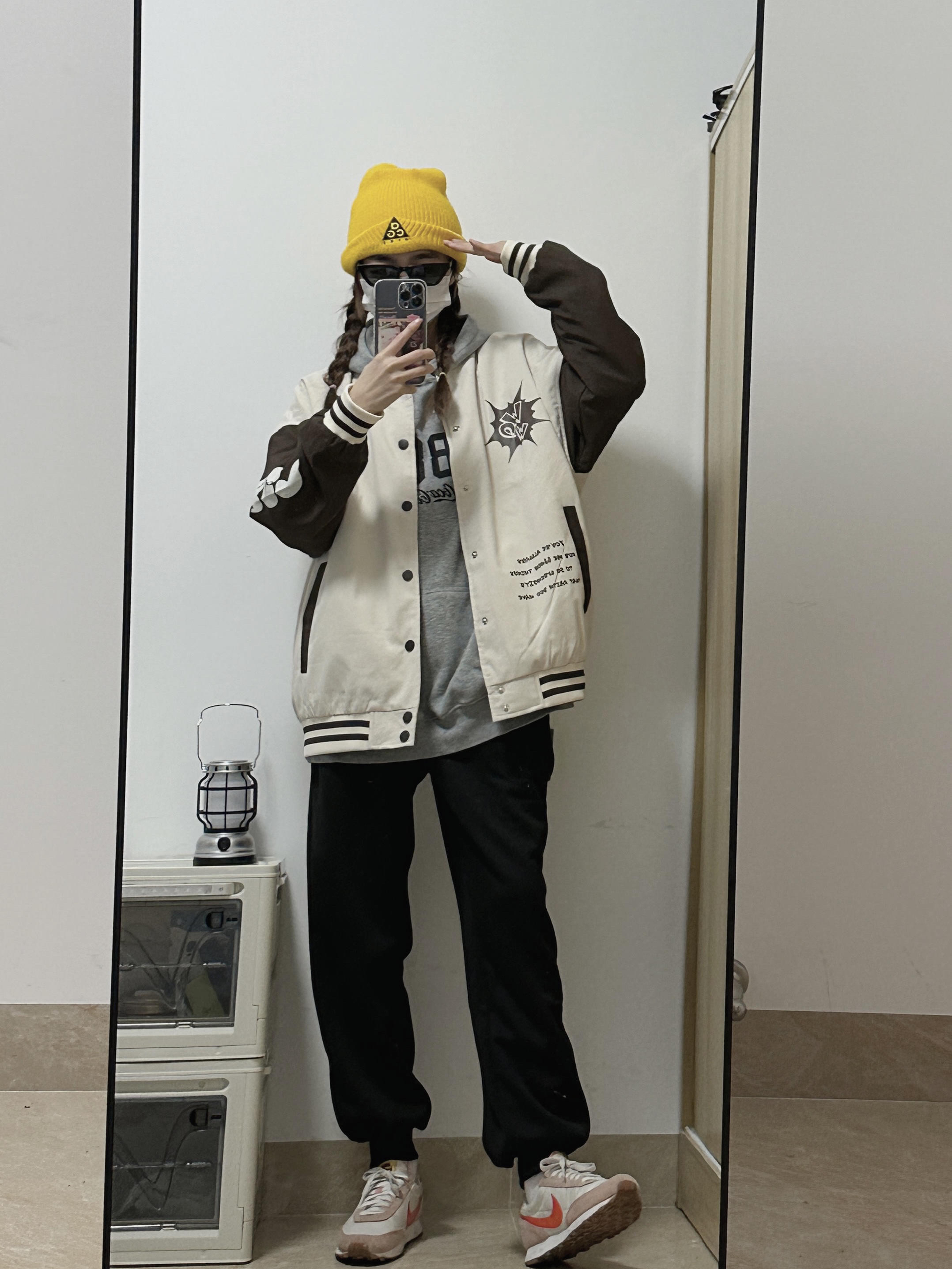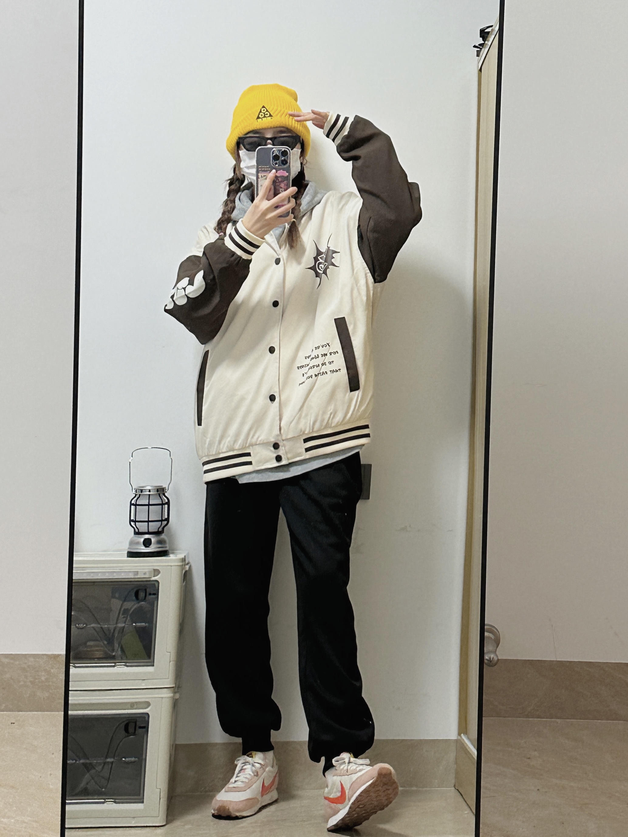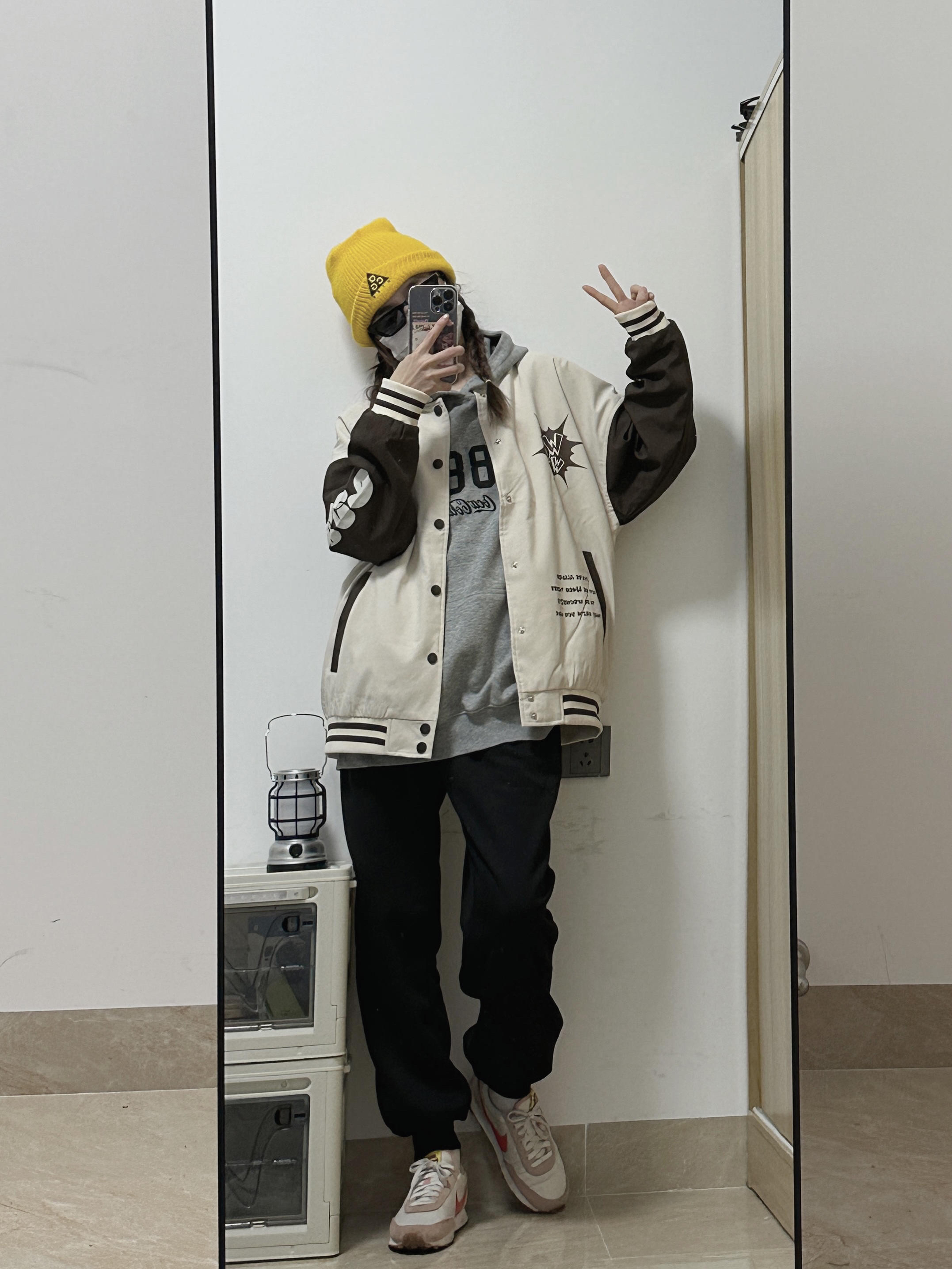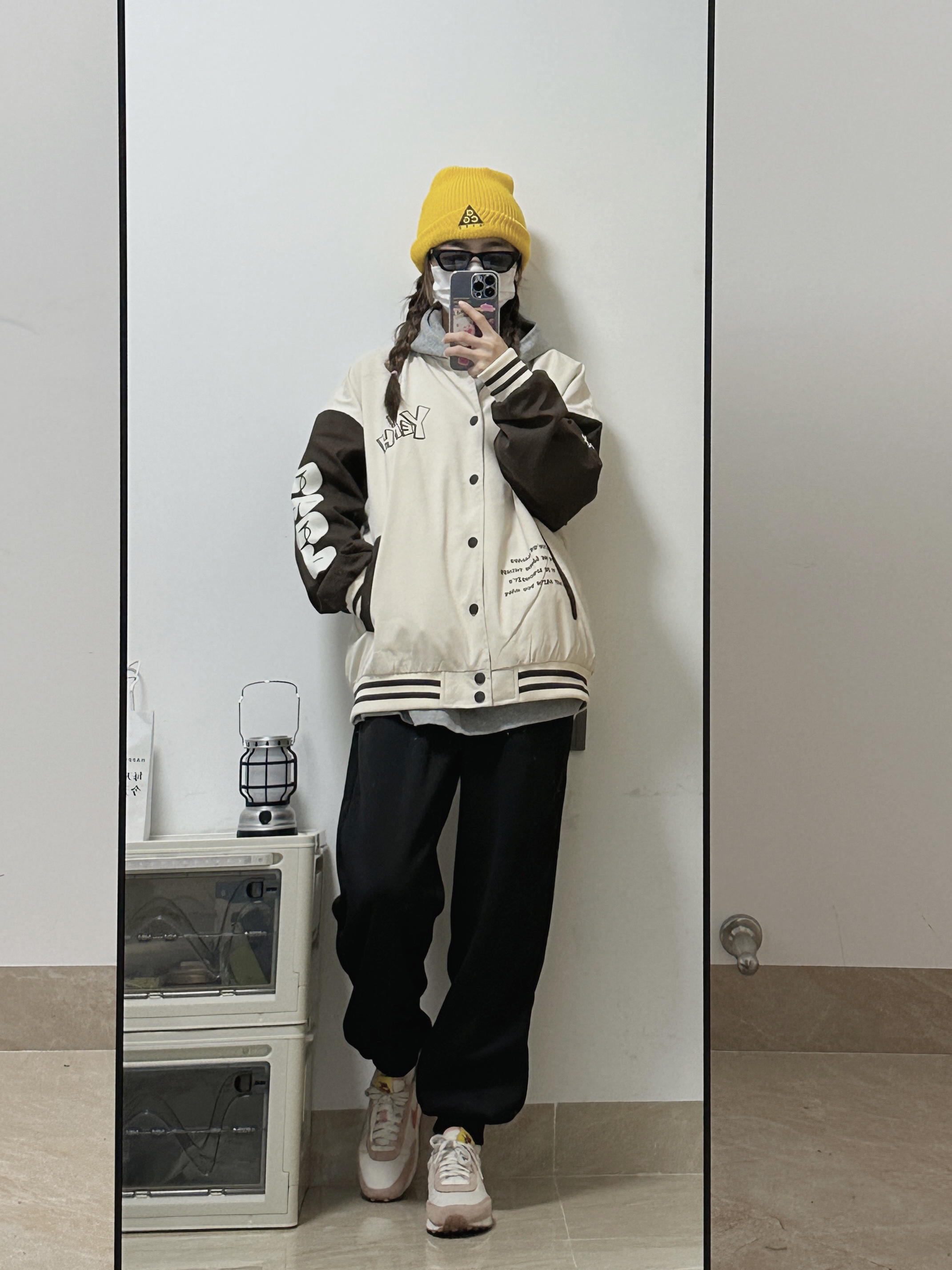 👧:168/44 棒球服yyds!无性别穿搭拿捏住了 💛💛黄色的冷帽悍头上惹 凹造型➕保暖神器 卫衣搭配棒球服🉑️! 黑色裤子ok~ 女孩子也可以穿得很帅啦