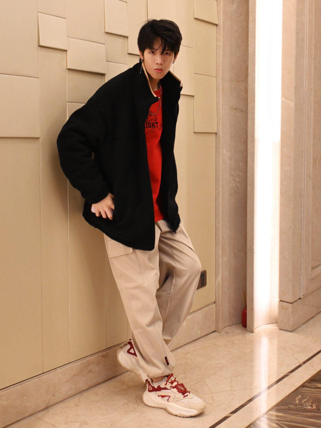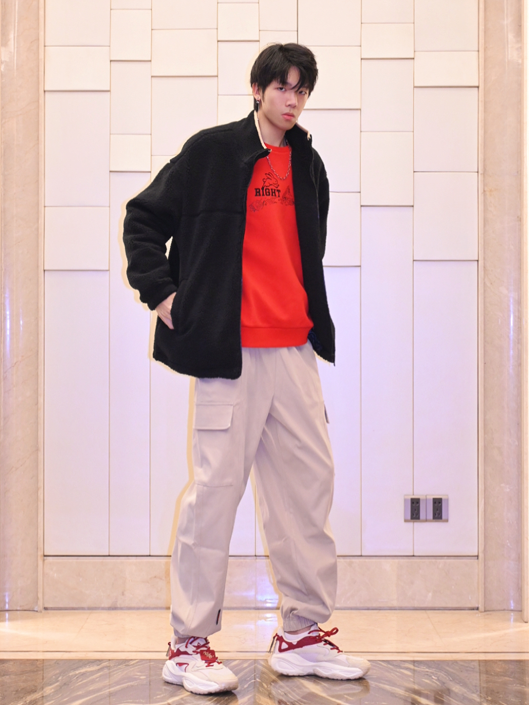 还有十天左右就要过新年了!🎆 浅浅分享一下非常适合学生党的、过年可以穿的喜庆穿搭 上衣选择了羊羔绒外套和内搭的无帽卫衣👔 内搭特地选择了大红色,瞬间就有新年🧨那味了 黑色的羊羔绒搭配红色内搭,喜庆不失高级感🤏 当然还有别的颜色可以选择啦 裤子👖是right系列的梭织裤,卡其色超好看 而且运动裤的面料工装裤的设计真的很赞 穿起来感受很轻,平时运动也可以穿!!!🏊♀️ 最后是红白色匹克云极2.0...