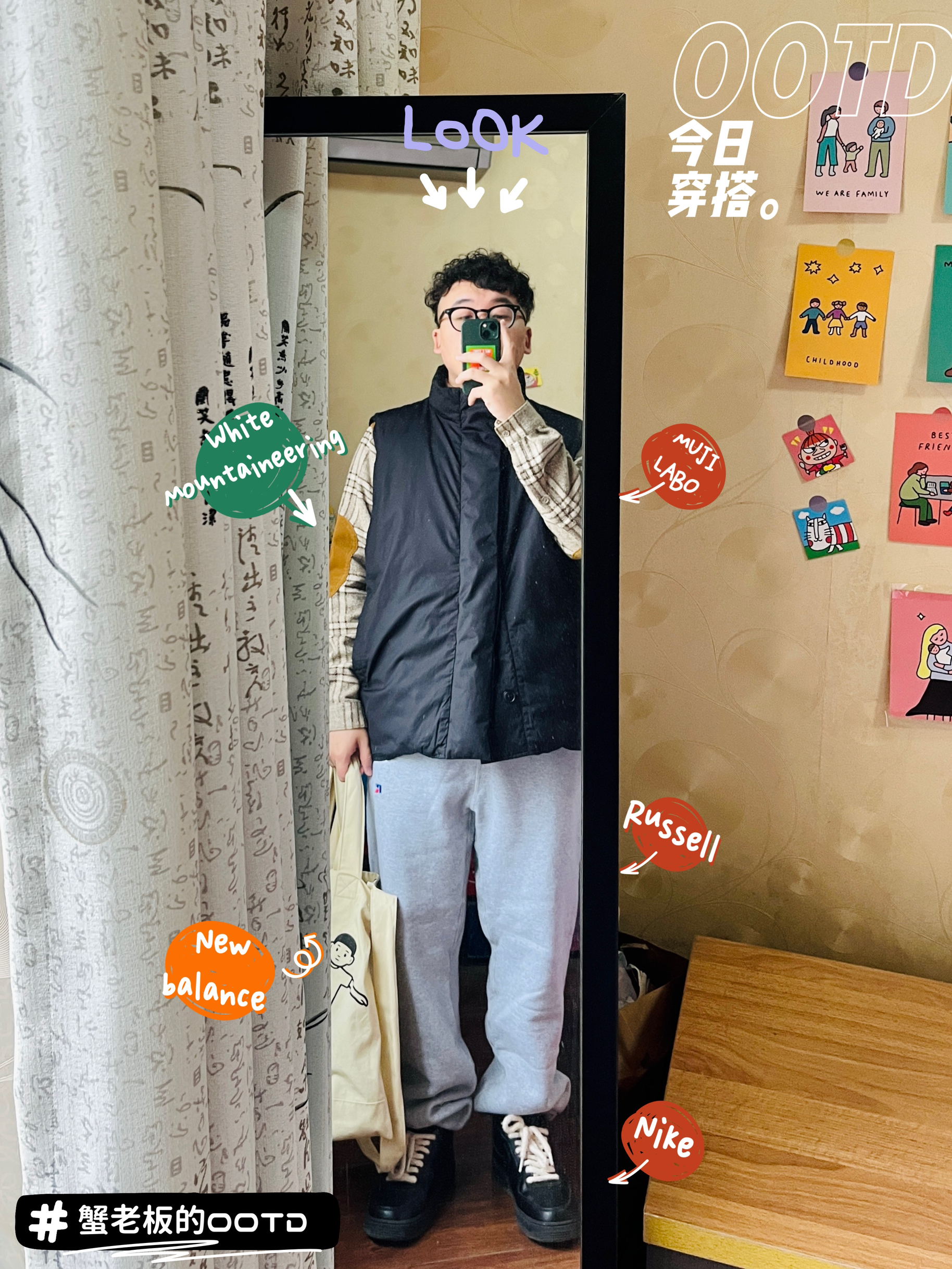 这一季的MUJILABO真的爱了 这件马甲虽然不如Daiwa的充绒量那么高 但是它的价格也才300多呀~ 所以我觉得它算比较好的平替 不过这款黑色比较沾灰,建议选灰色 🧥 #mujilabo 羽绒马甲 👕 #WhiteMountaineering 灯芯绒衬衫 🩳 #Russell 运动卫裤 🧦 #Champion 黑色长袜 👟 #nike 空军一号