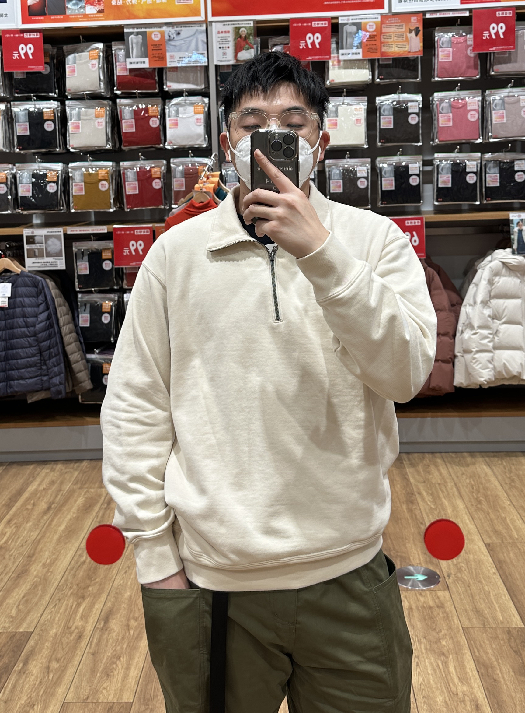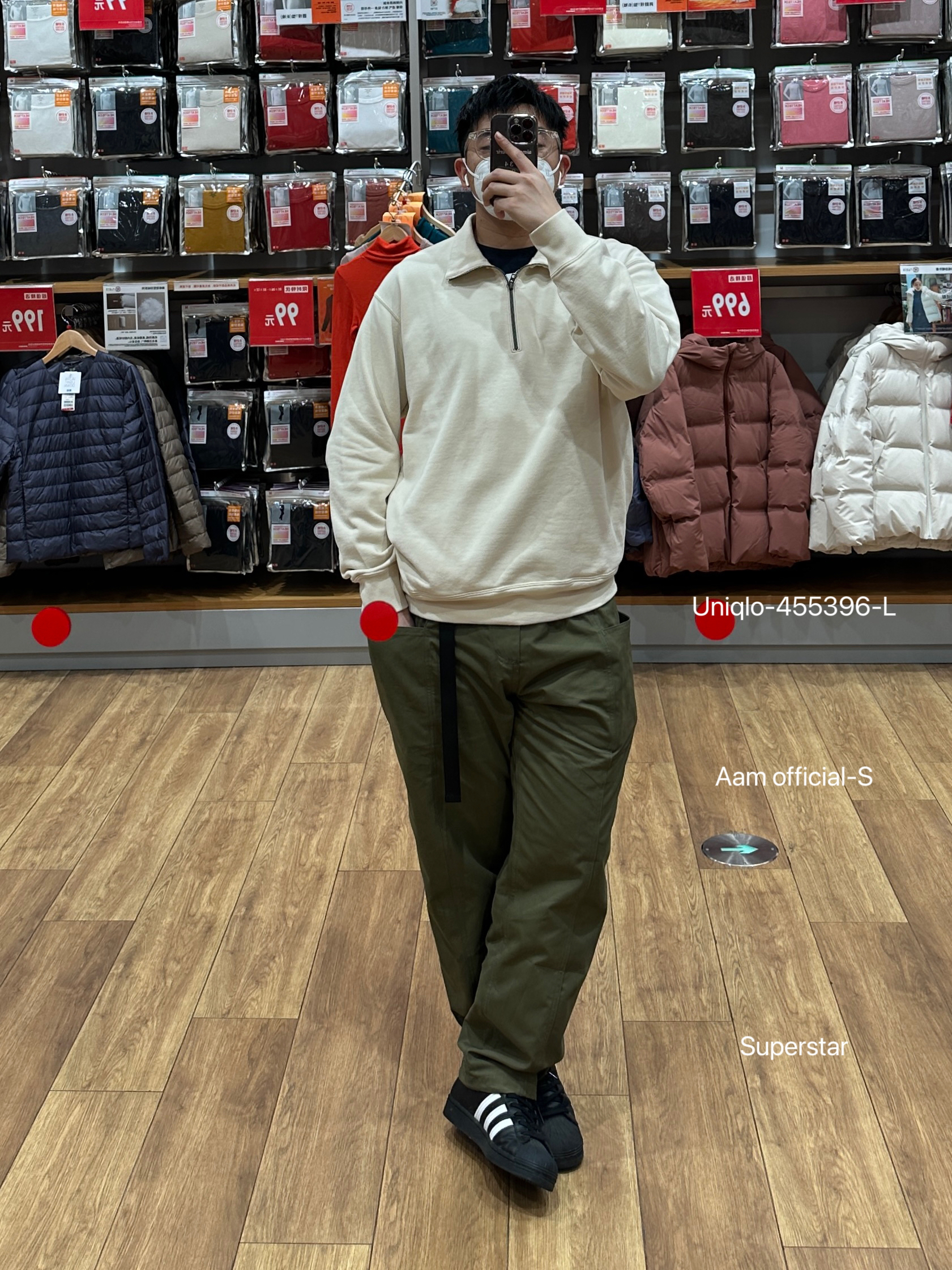 🧥- 23ss的U家半拉链卫衣又来了,¥249的售价自己体会,我来上身! 👖- 军绿色的直筒工装裤 👟- 潮人都在穿的阿迪