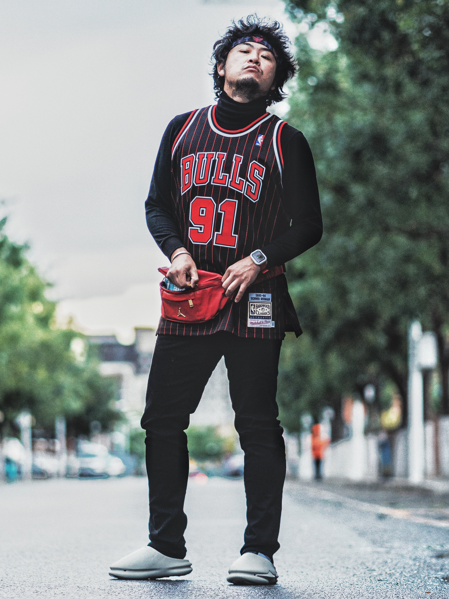 今天北京的天气是14度 已经开始把秋冬装都准备上了 今天也是假期的第三天 好!之后要开始好好休息一下了 今天穿的这件秋衣是Mitchell Ness品牌公牛队时期的罗德曼黑薯条 但这件在平台上没有找到可售卖的款。这款是AU款的,SW球迷版也可以看一看,大网眼设计 内搭是优衣库的保暖高领 配了一条优衣库的窄脚黑色牛仔裤 穿一双。EQLZ的拖鞋,这款拖鞋是模块化设计 可以分离里面。秸秆有机材料合成 所...