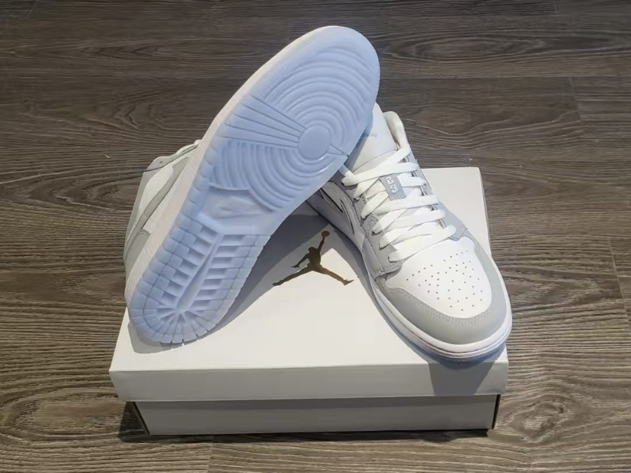 一双神仙颜值烟灰AJ1 Air Jordan 1 Low 烟灰/小Dior/灰白 这双颜值超高的AJ1,合成革材质鞋身,灰色部分 为磨砂质感的革面,再有半透明水晶外底收尾,在那么多“小Dior”里,个人认为这双是最接近 “Dior”的一双! 整体配色干净不失高级!