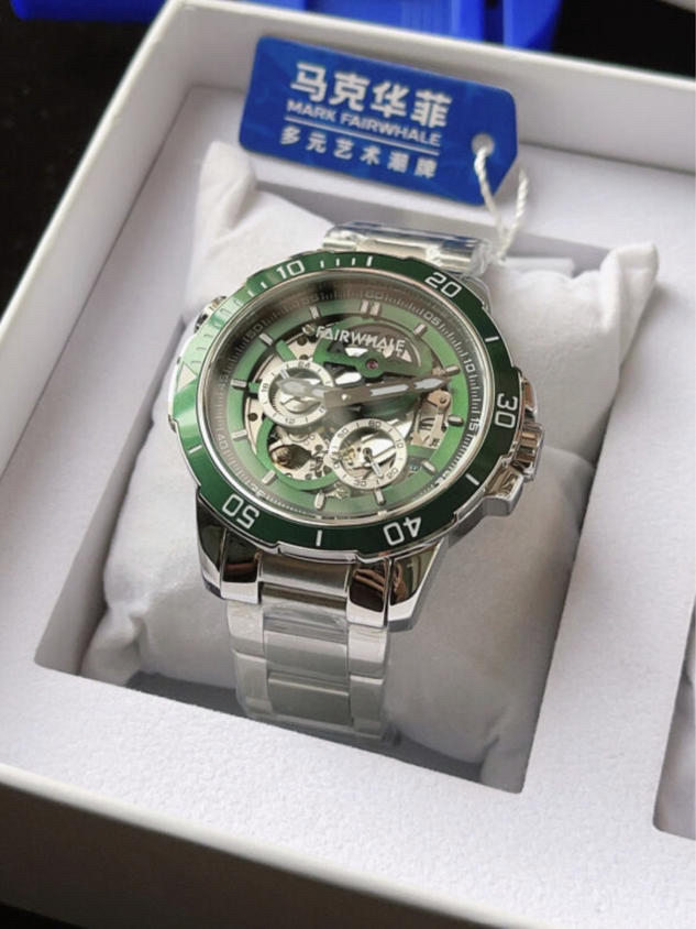 本篇笔记关联了Mark Fairwhale/马克华菲 42mm 水鬼夜光改装防水运动全自动机械男士手表 银壳绿面钢带等商品,为用户提供真实的使用体验和购买参考。