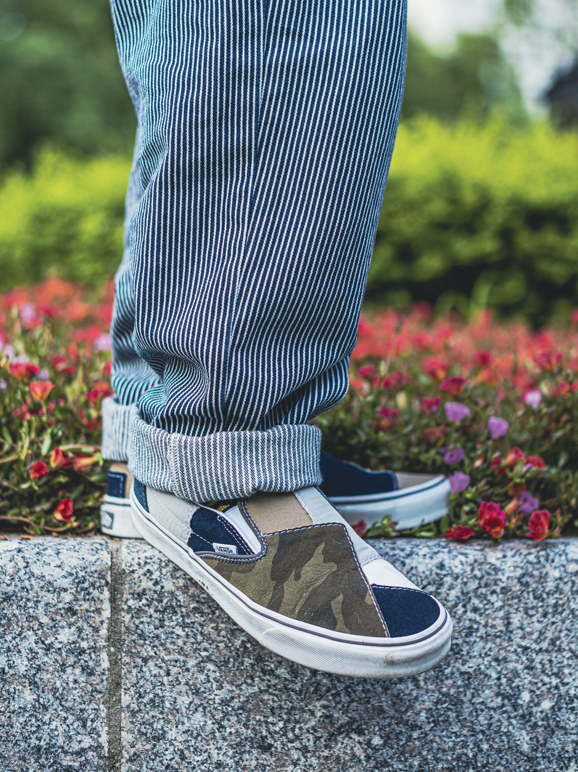 Dickies的连体工装裤一直非常钟爱,上海入秋后非常适合上身,厚实在帆布面料柔软亲肤 Vans的一脚蹬也是我钟爱的单品之一,目前Vans推出的系列都是三大件儿,高帮SK-8Hi 低帮OLDSKOOL 和一脚蹬SLIP-ON 一般会买一脚蹬,可能是因为我不喜欢系鞋带的原因吧