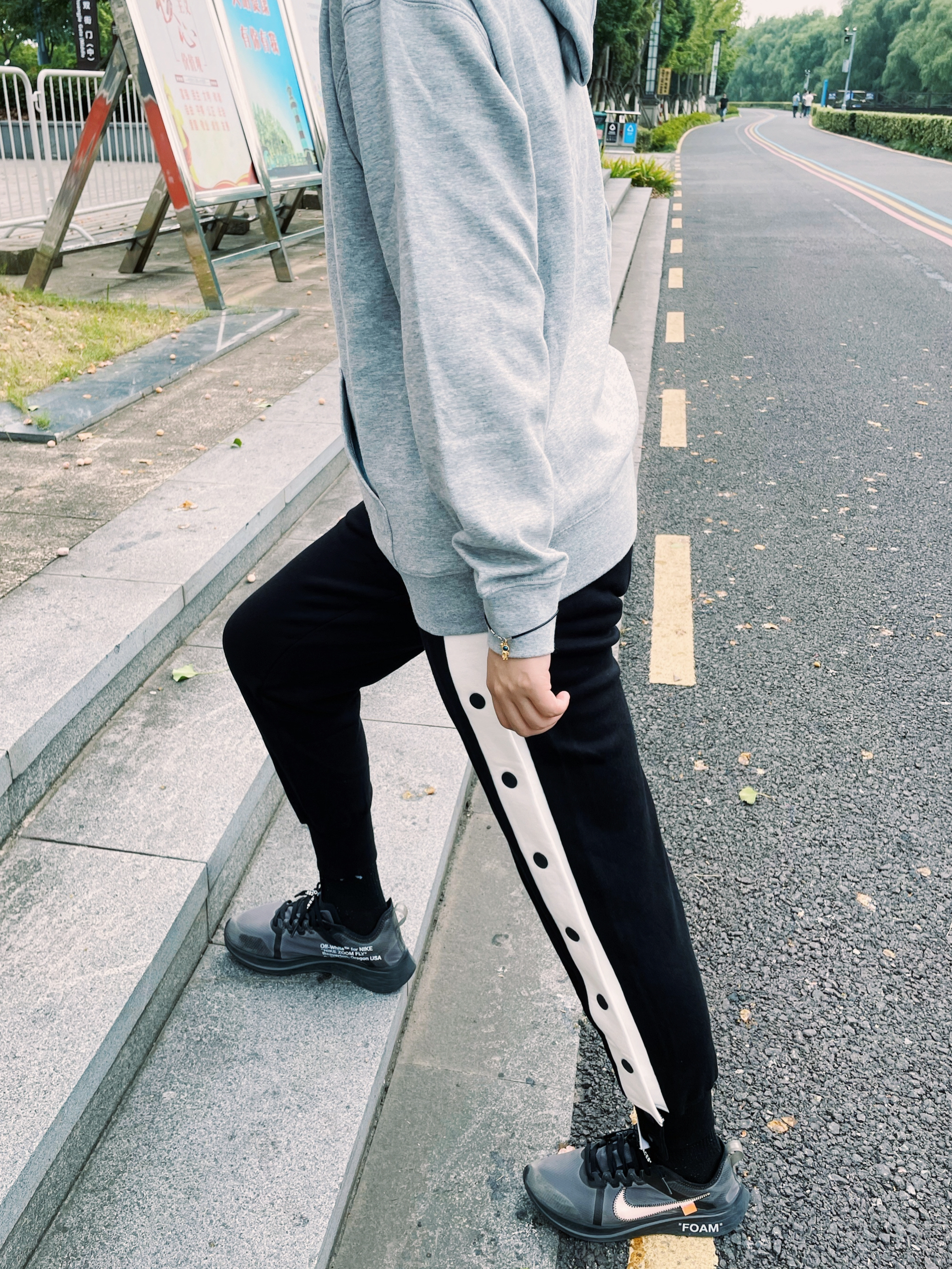 愉快的暑假就结束啦 马上开启新的一学期的生活 看看我在学校的日常穿搭吧 整体以简约舒服为主 黑白灰色 入秋的灰色卫衣是必备的百搭神器 基础款的卫衣加上山一样的印花和PRTH的logo 简约高级,搭配黑色排扣卫裤 黑色排扣的条纹裤子很显腿细腿长 这样简单的上学🎒穿搭就OK啦👌 👔: prth promethean 👖: BD.POWER UP+ 👟: Nikeow zoom 手链...