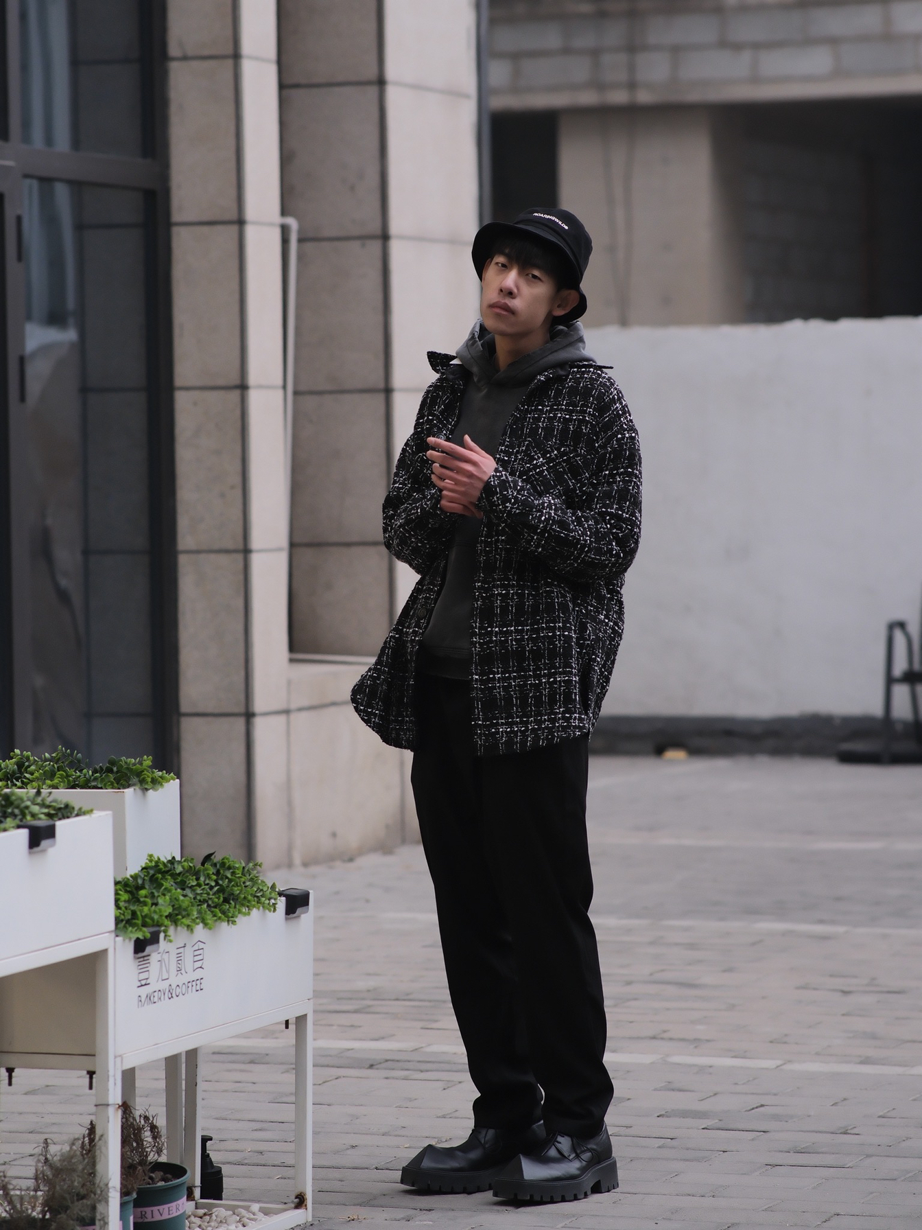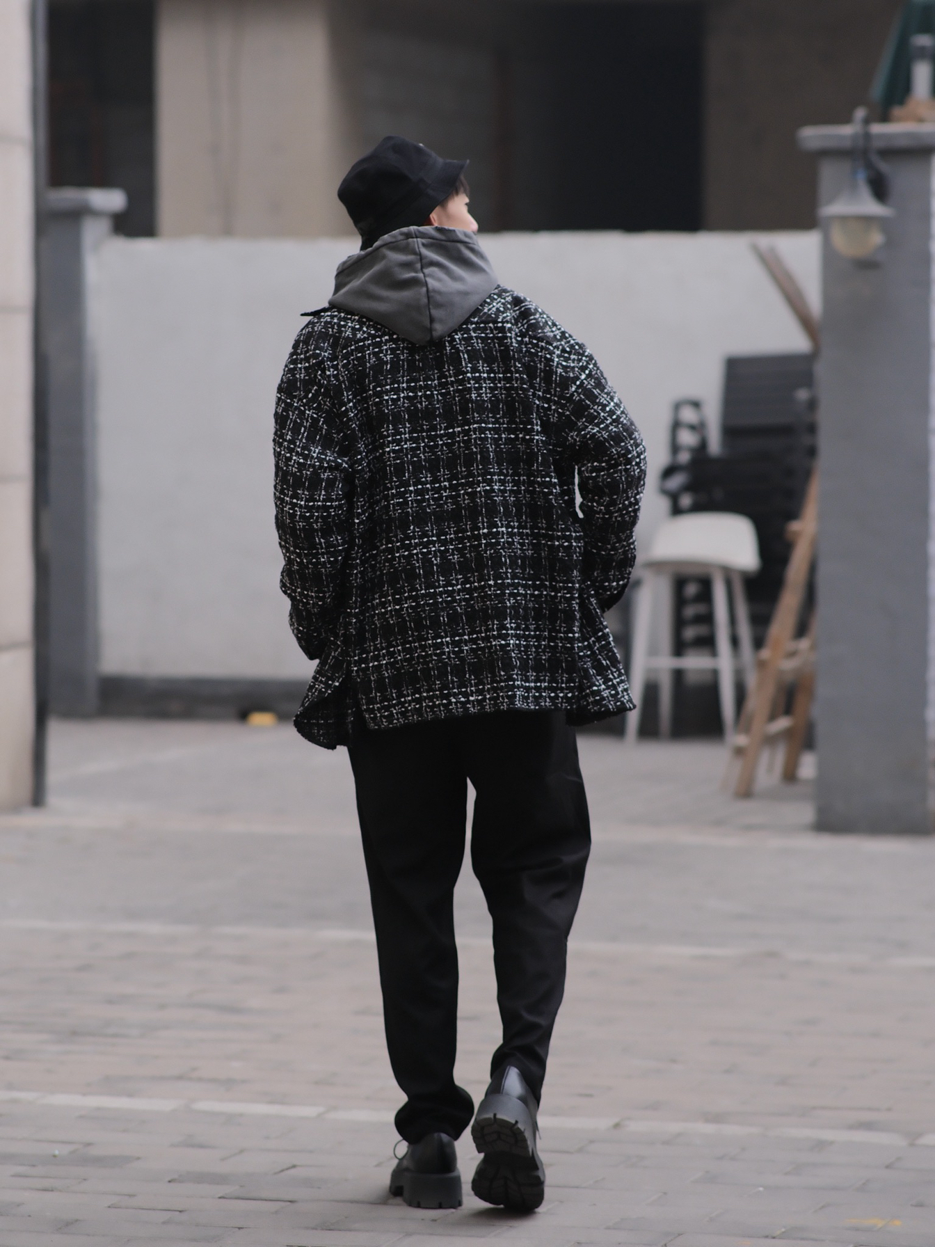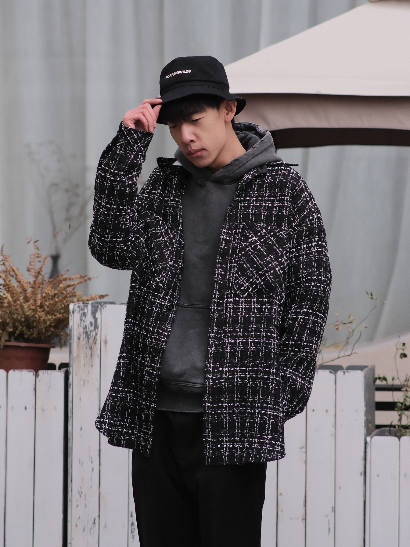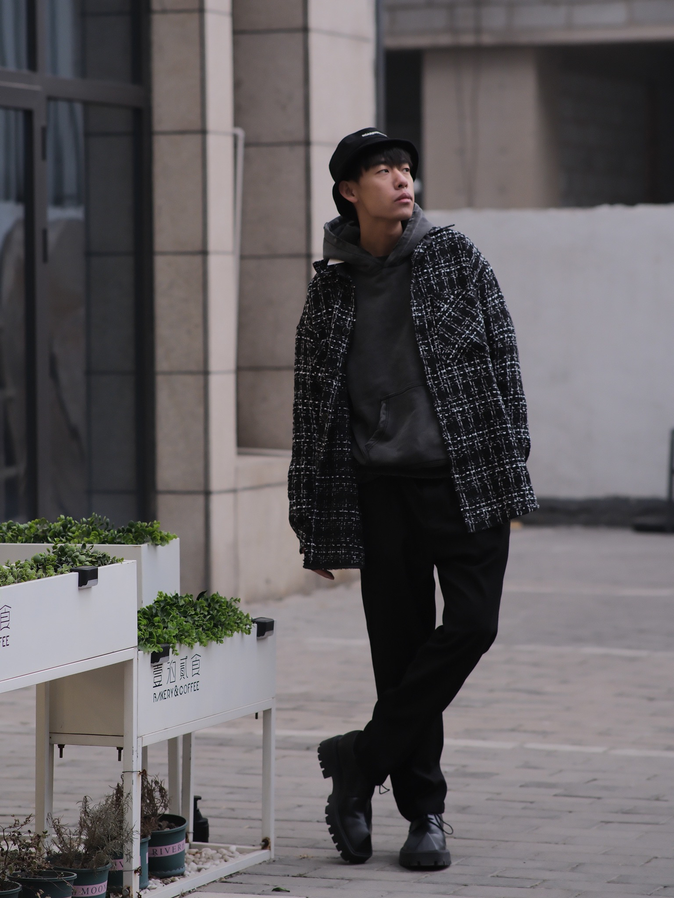 哟!wassup!大家好!新年出街穿什么最酷?今天推荐一套深色系小香风高级感出街Outfit~ 上半身选择这件来自CharlieLuciano的小香风外套,编织纹格+黑色为主调的配色真的轻松拿捏高级感,而且宽松版型上身超赞,叠穿增添层次感也非常OK,而且男女同款作为新年礼物或者情人节好礼都非常合适哦~ 内搭灰色水洗做旧卫衣,再来一条黑色的西裤与犀牛德比皮鞋,增高显腿长,又让整体穿搭色系一致...