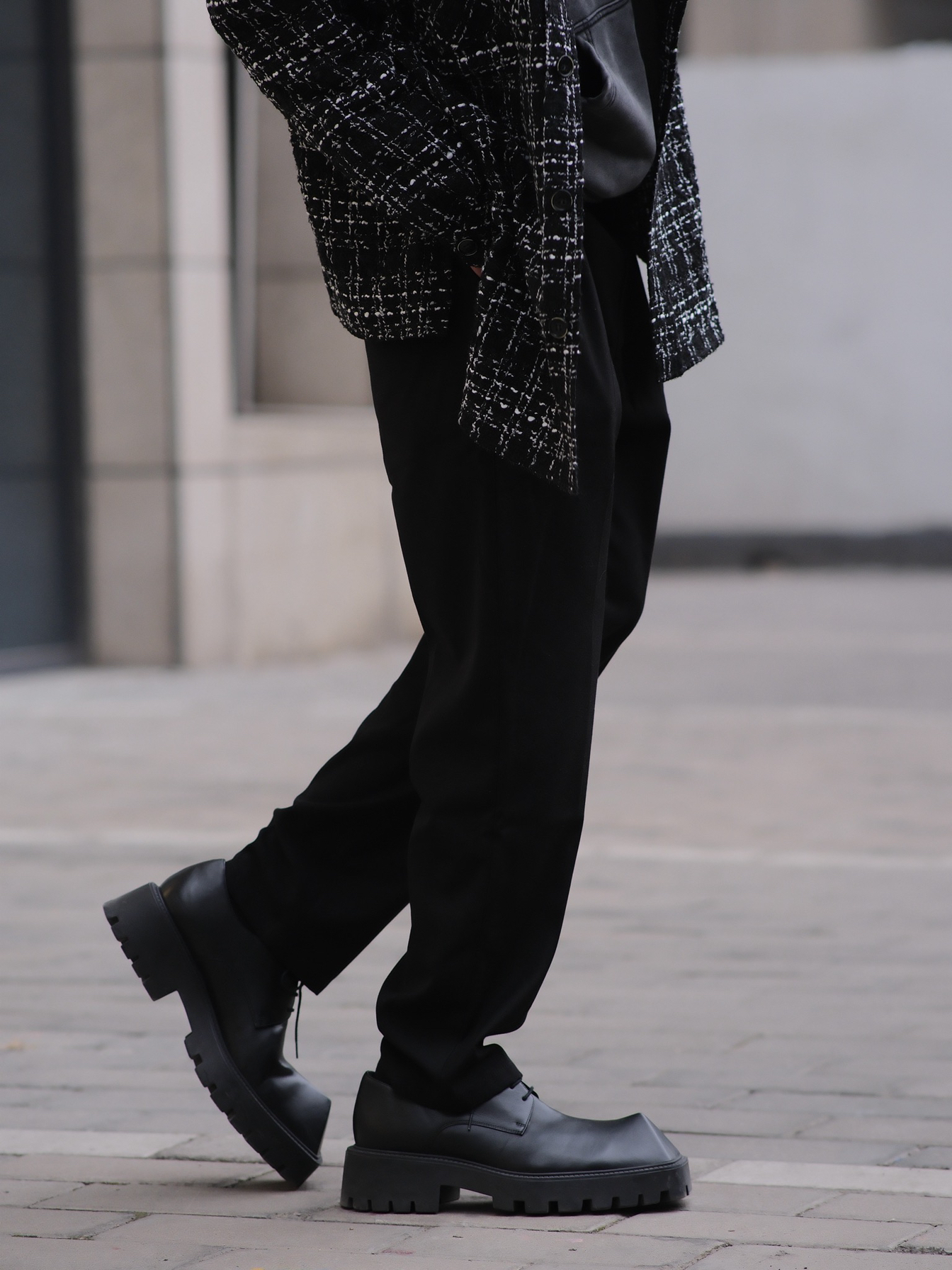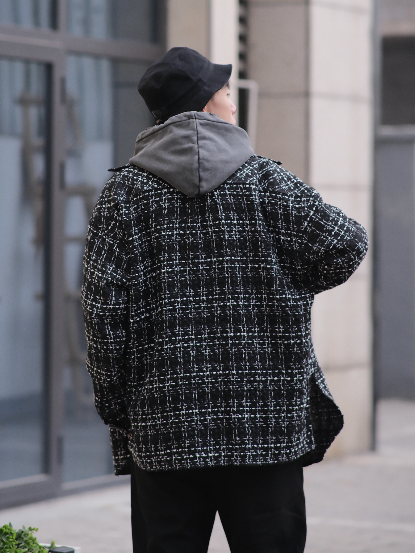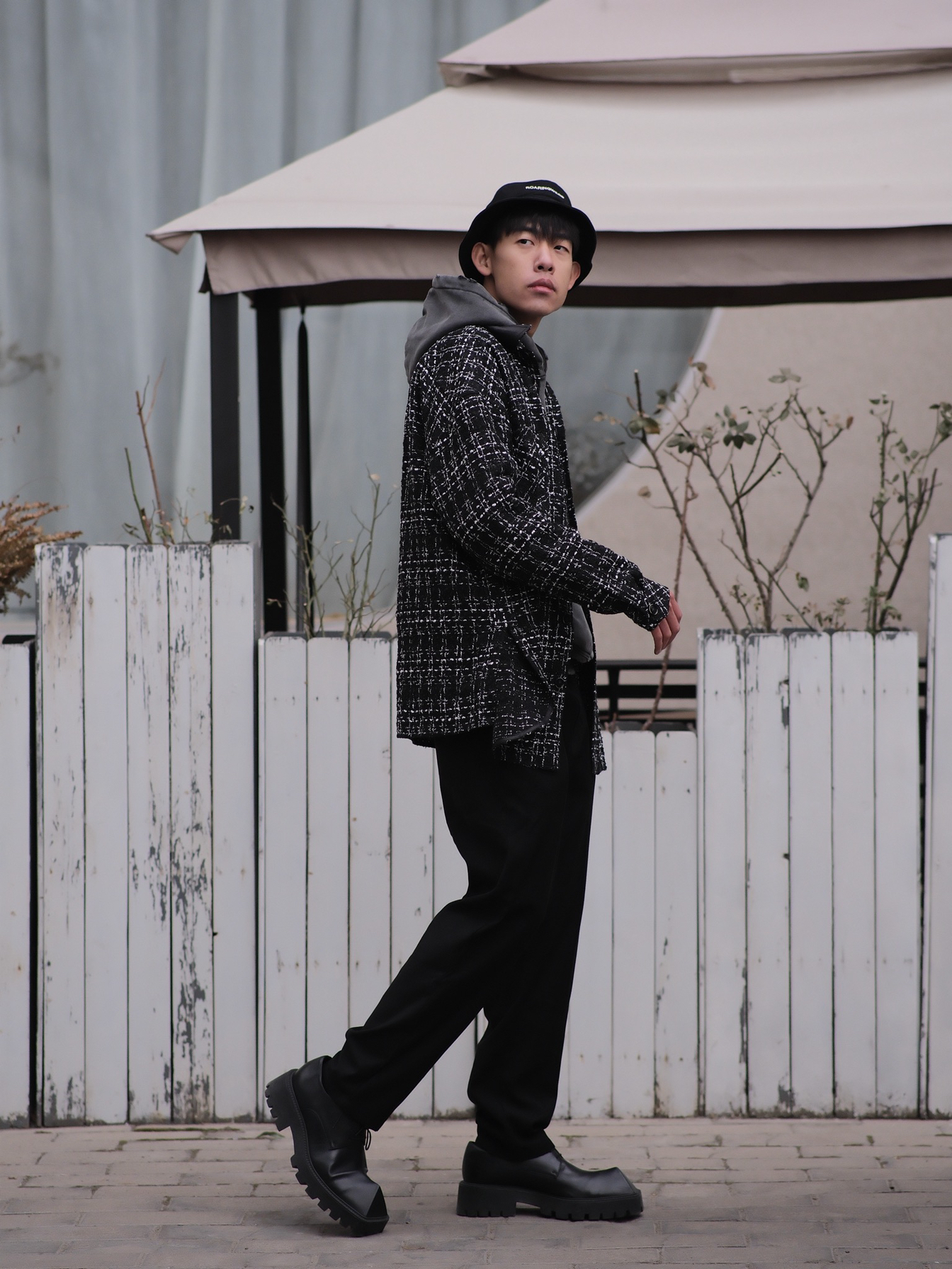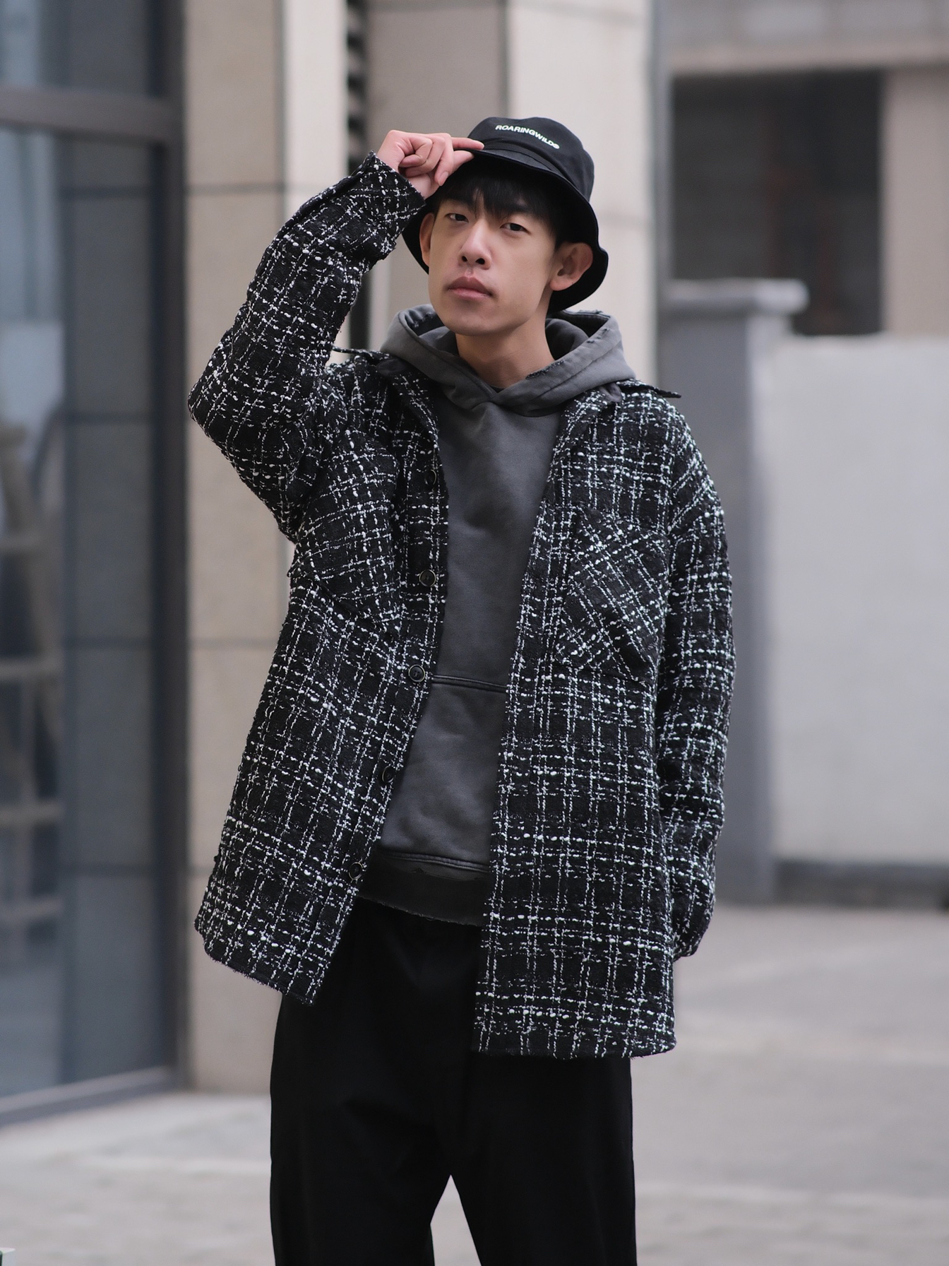 哟!wassup!大家好!新年出街穿什么最酷?今天推荐一套深色系小香风高级感出街Outfit~ 上半身选择这件来自CharlieLuciano的小香风外套,编织纹格+黑色为主调的配色真的轻松拿捏高级感,而且宽松版型上身超赞,叠穿增添层次感也非常OK,而且男女同款作为新年礼物或者情人节好礼都非常合适哦~ 内搭灰色水洗做旧卫衣,再来一条黑色的西裤与犀牛德比皮鞋,增高显腿长,又让整体穿搭色系一致...