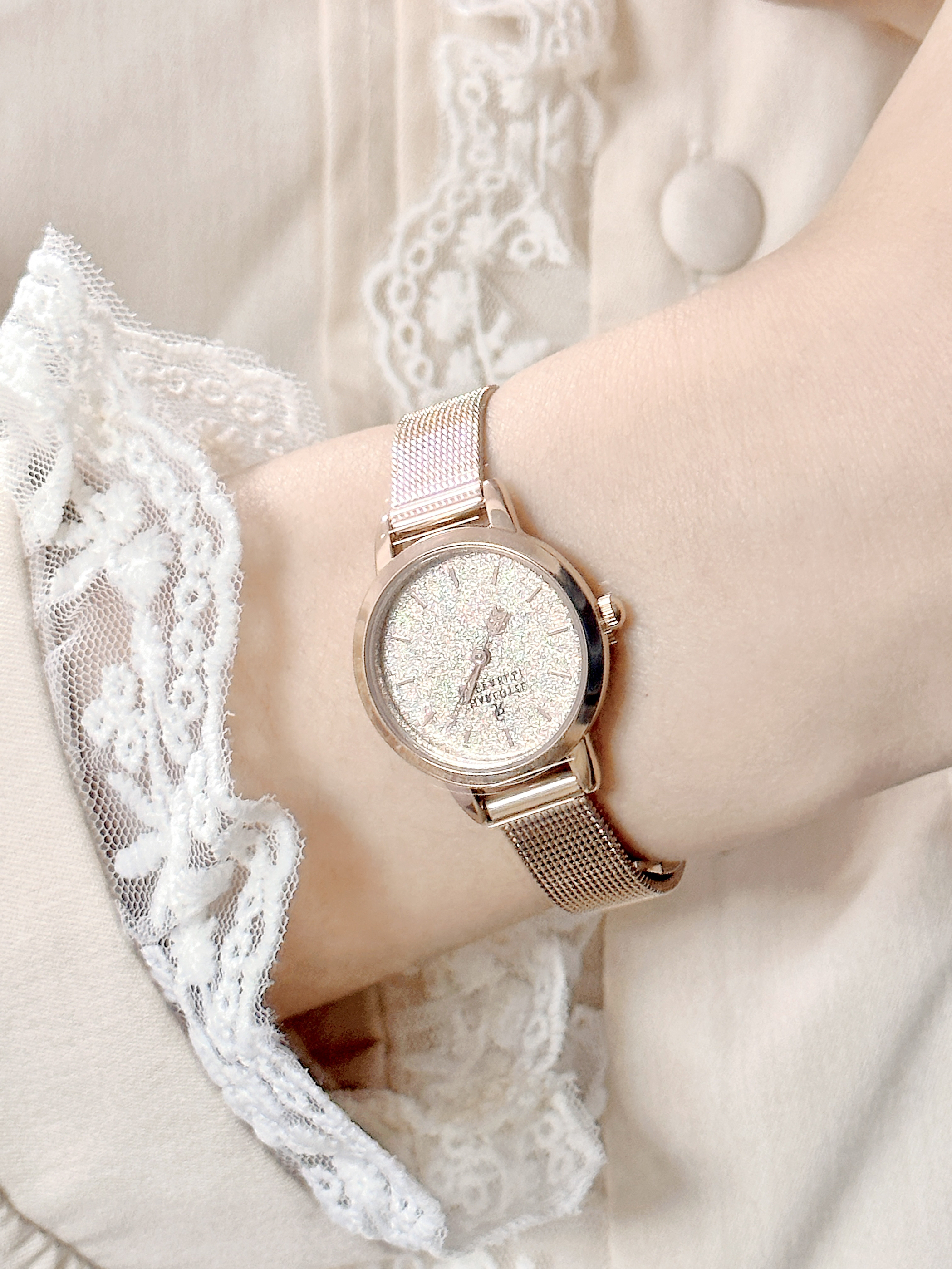没有女孩子可以拒绝这么blingbuling的东西吧🪩 CR夏洛特这款手表⌚满天星表盘真的好闪✨ 整体是玫瑰金的配色 显气质又很高级~ 春夏秋冬都能戴🪄很百搭 小表盘很适合女孩子 戴在手腕上简约大气 分针是「爱神之箭」的造型 寓意着有情人终成眷属💘 连包装都是粉粉的送女孩子不会出错!!