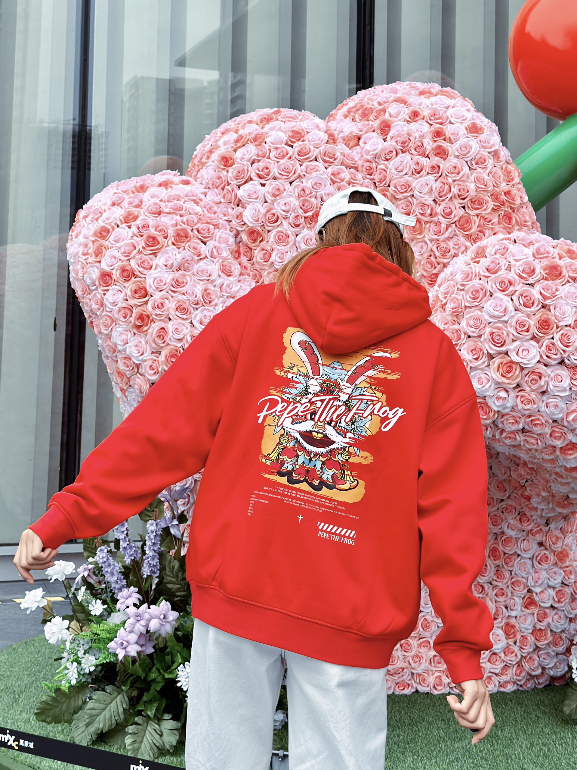 👧:168cm 48kg 👉🏻今日穿搭分享: 👕: 悲伤蛙(pepe the frog) (M) 👖: 花田橱窗 (S) 👟: Nike 新年当然要穿红色啦~ 这件卫衣真的太应景啦!🐰兔年大红色卫衣,背后有超好看的穿舞狮的兔兔,简直太适合过年穿啦🧨 而且红色也很显白,搭配白色裤子看着hin舒服 一整个爱住了家人们🤩