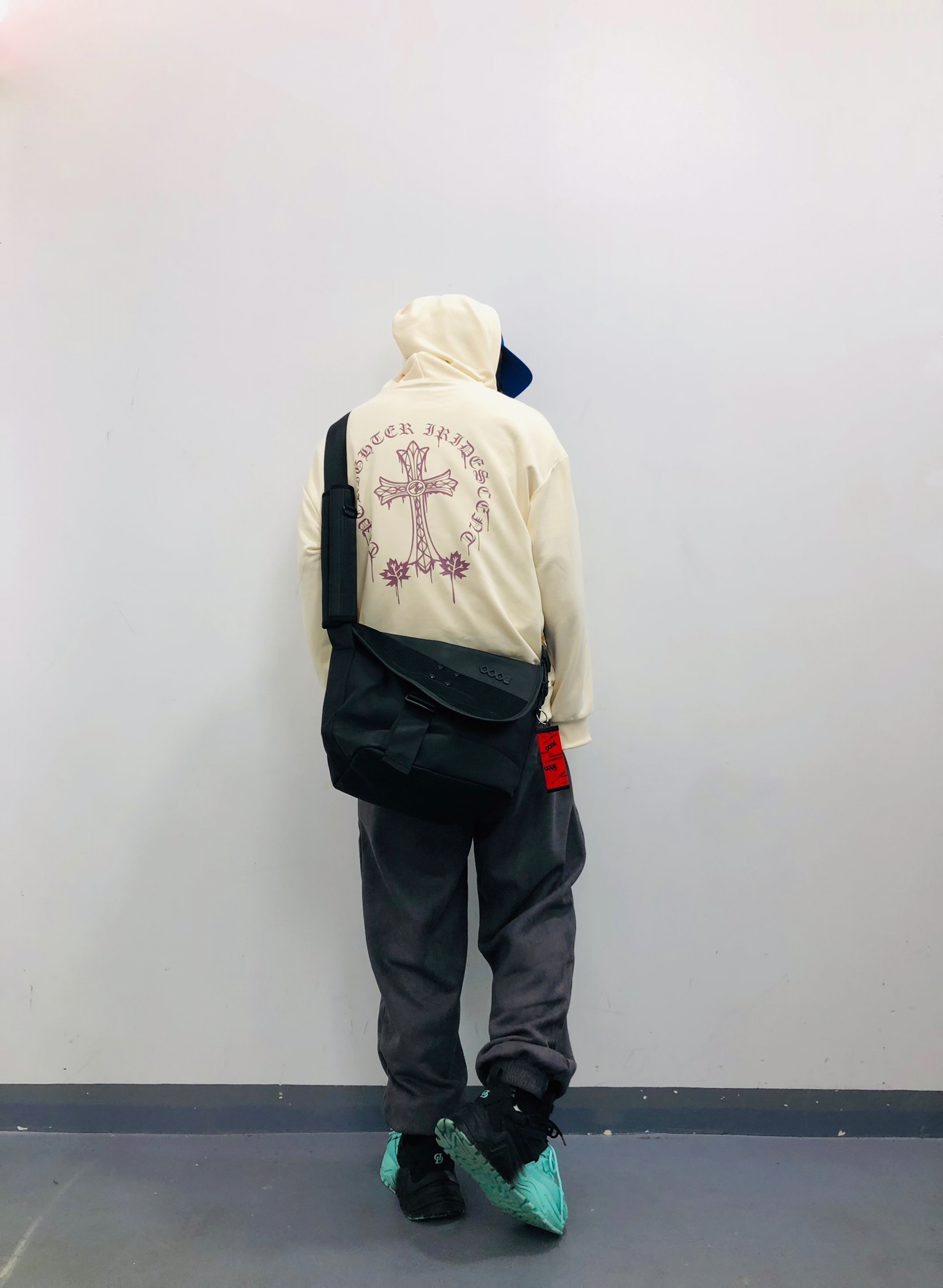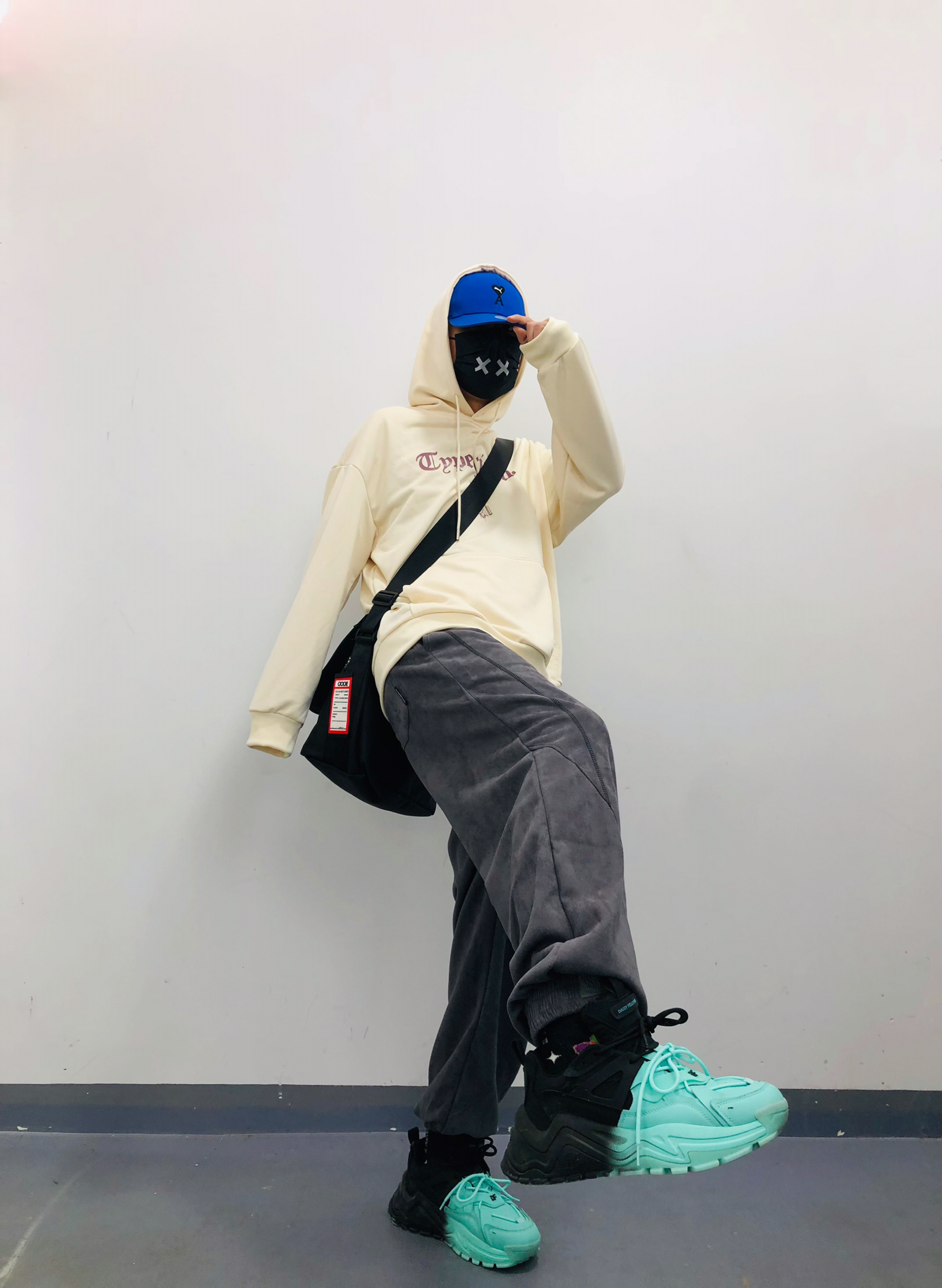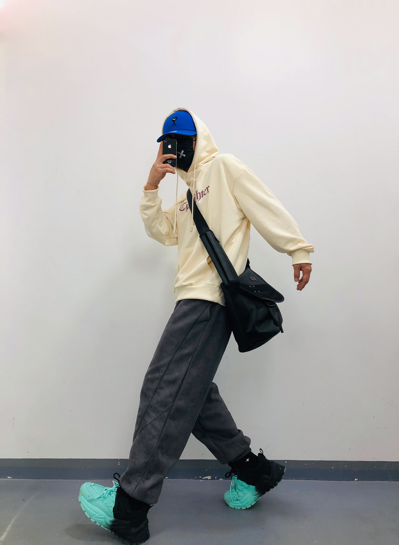 博主信息: 身高:178 体重:65 鞋:43.0 今日搭配尺码参考: 上衣:杏色连帽卫衣(L ) 裤子:国潮洗水 麂皮绒 束腿卫裤(xxl ) 鞋子:黛西法罗板鞋43.0 同色系搭配 街头感