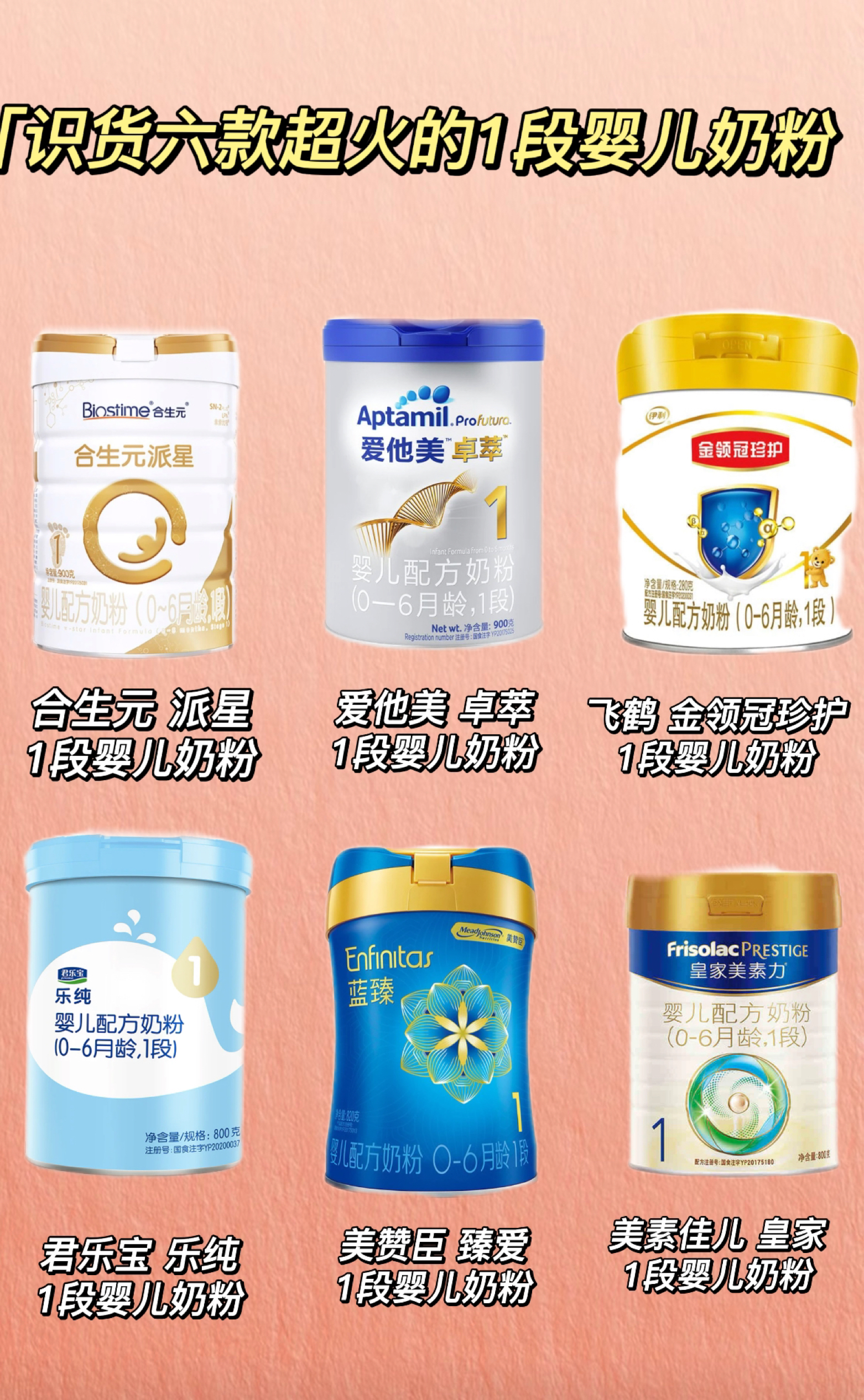 爱他美/Aptamil 白金版卓萃1段婴儿配方奶粉 官方价格:900g¥375元 💥识货价格:900g¥289元 推荐指数:⭐⭐⭐ 综合评价🌟:奶粉成分安全,无敏感成分,源自欧洲奶源,再添加精粹天然来源的乳脂,能帮助促进宝宝的生长发育🤩 合生元/BIOSTIME 派星1段较大婴儿配方奶粉 官方价格:900g¥336元 💥识货价格:900g¥279元 推荐指数:⭐⭐⭐⭐ 综合评价:这款奶粉具有双...