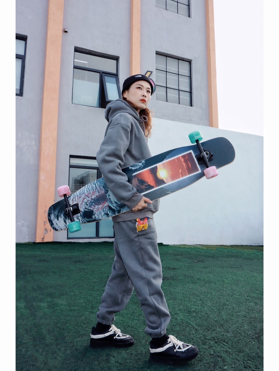 秋冬季节大家还是多运动运动、增加体抗力(目前全国都放开了、大家没事还是多动动💪) _ 出街玩板是真的可以让人身体 心情变好✌🏻、周末约三五好友一起玩玩出出汗岂不快哉~ 当然初学者选择板子也很重要、逆山的板子就很适合(带好护具注意安全)😁、这个天摔一跤够呛~ 这板子颜值也够高、喜欢这个落日余晖的感觉、很适合我这种潮流人儿哈哈哈哈~ _ 搭配一套运动装、玩过板子后、整个人都精神了、秋冬一起运动起...