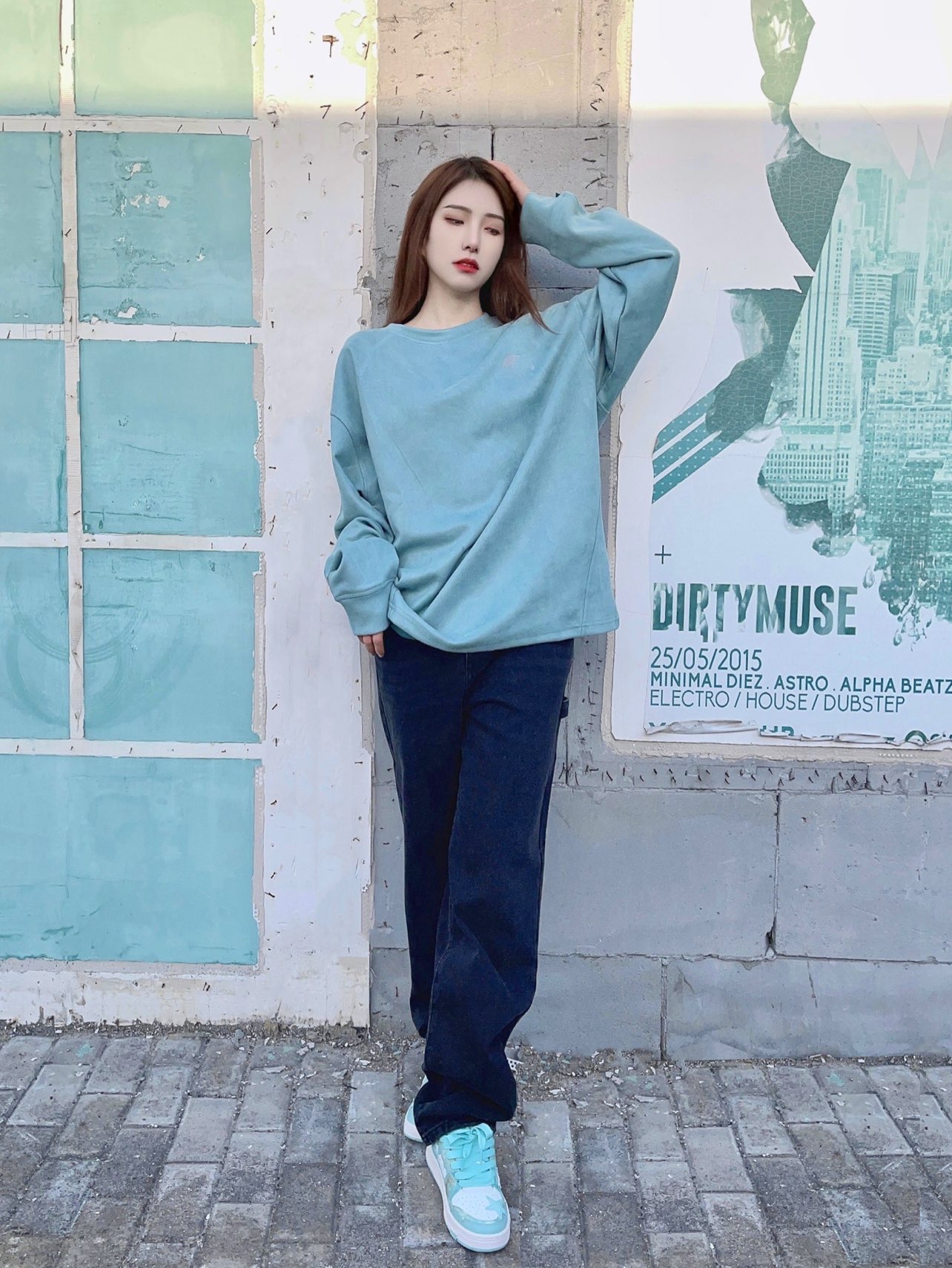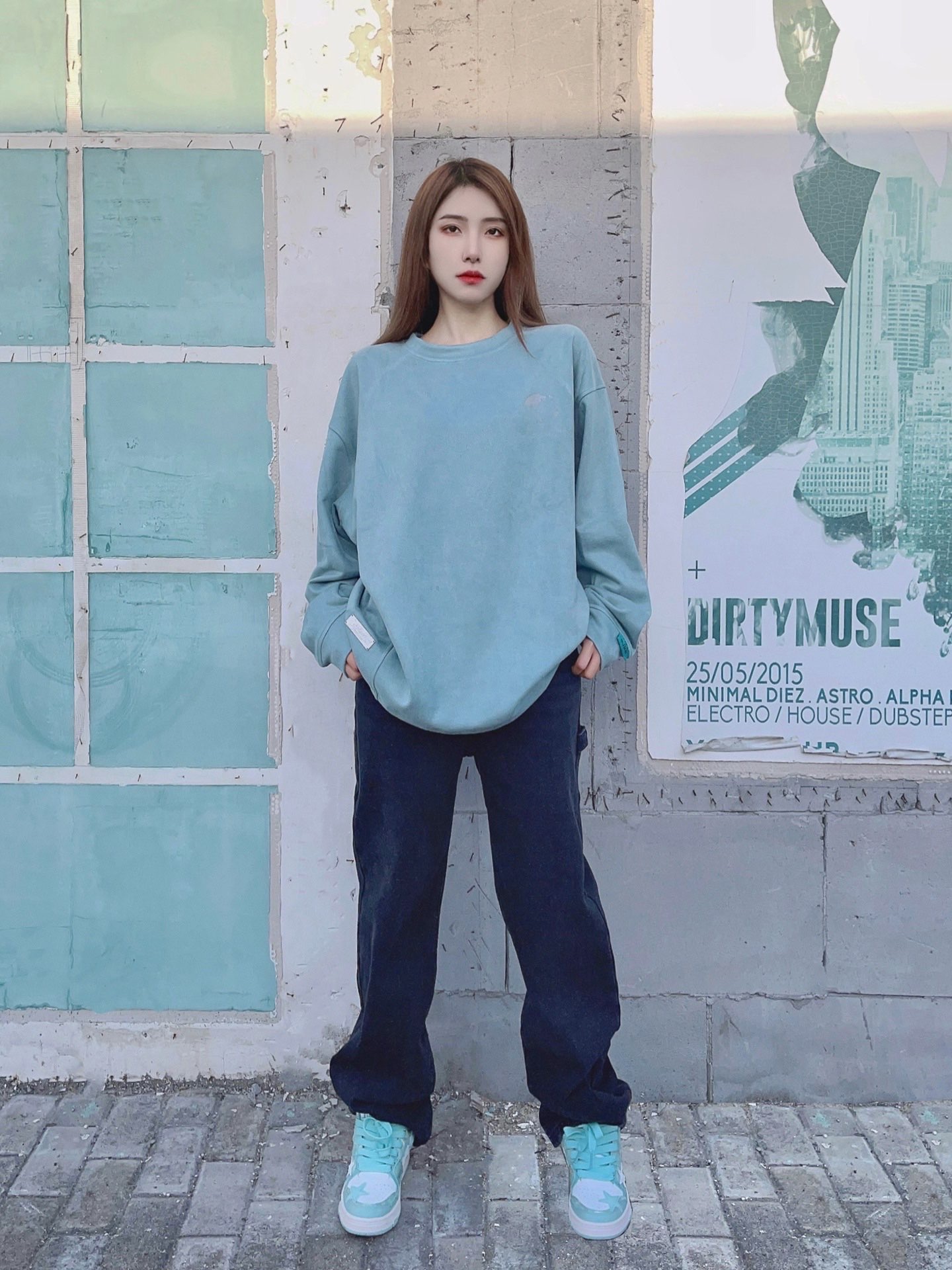 分享一套少年感十足的中性风 蓝🔵➕黑⚫️色系清爽干净 卫衣后背反光地球🌍印花图案个性十足 搭配黑色水洗做旧牛仔裤👖 直筒的版型休闲舒适又百搭 再搭配同色系🌟星星板鞋 慵懒随性的感觉 清爽干净~ 👔:BJHG 👖:CHINISM 👟:KAALIXTO