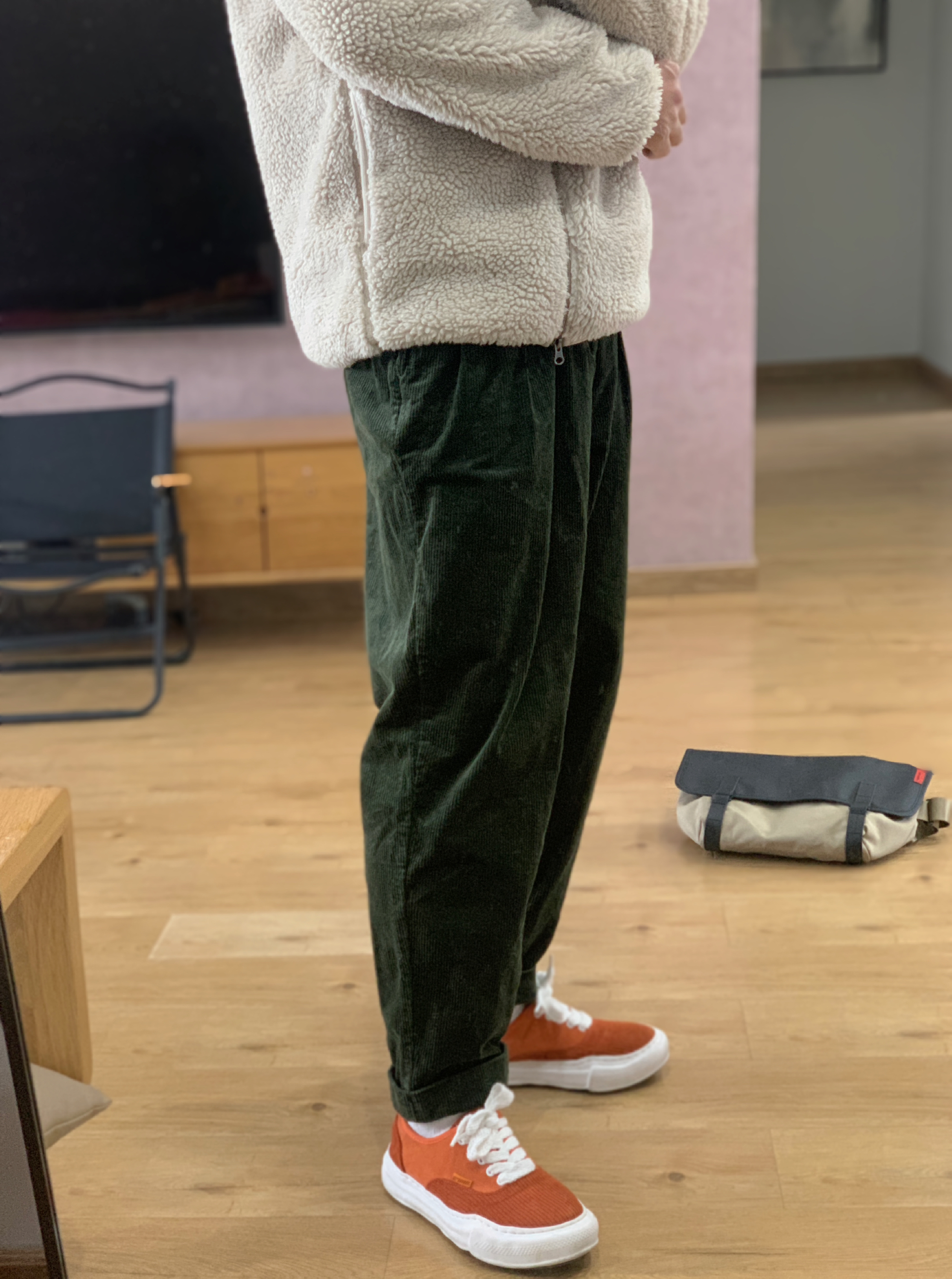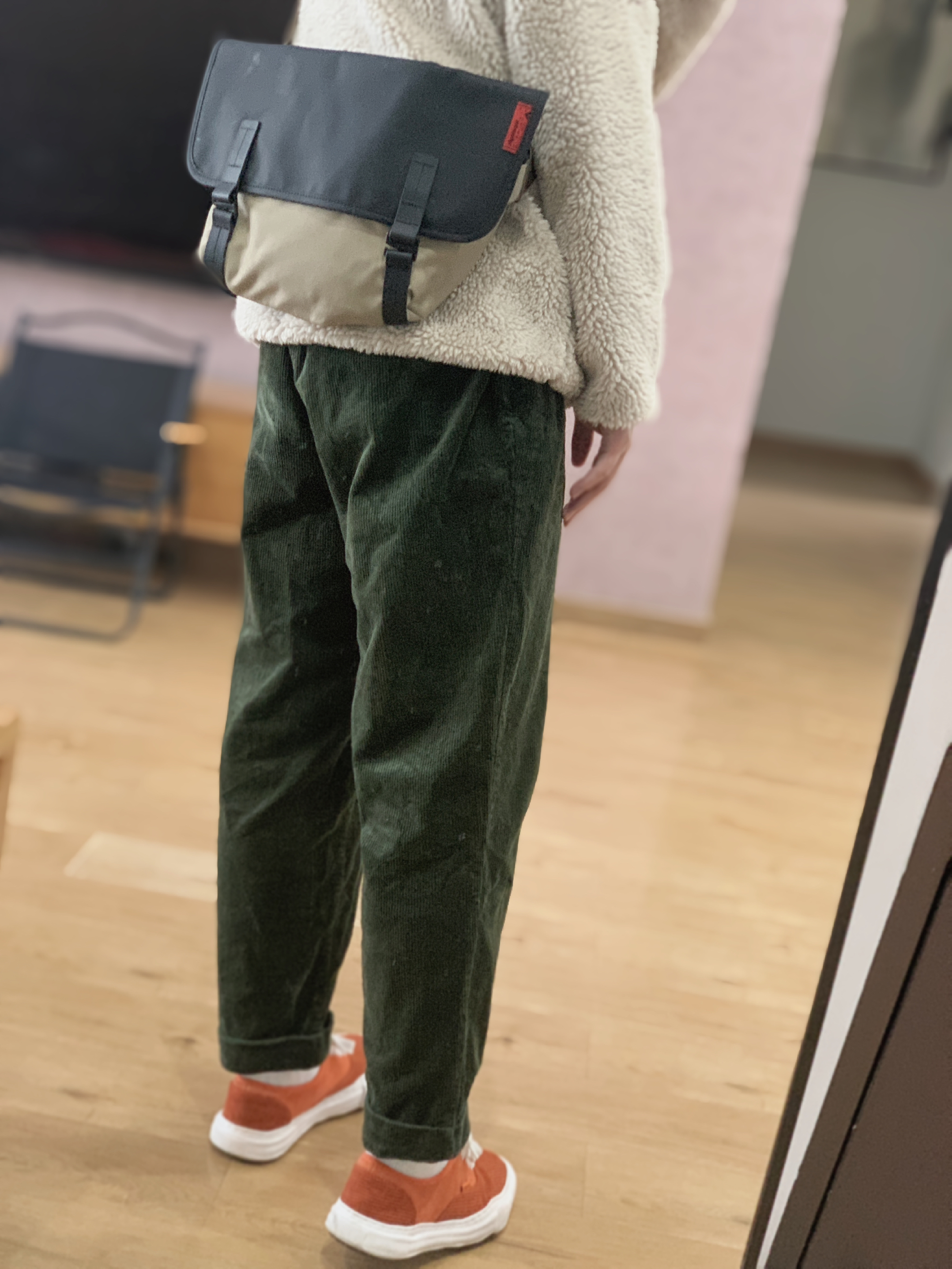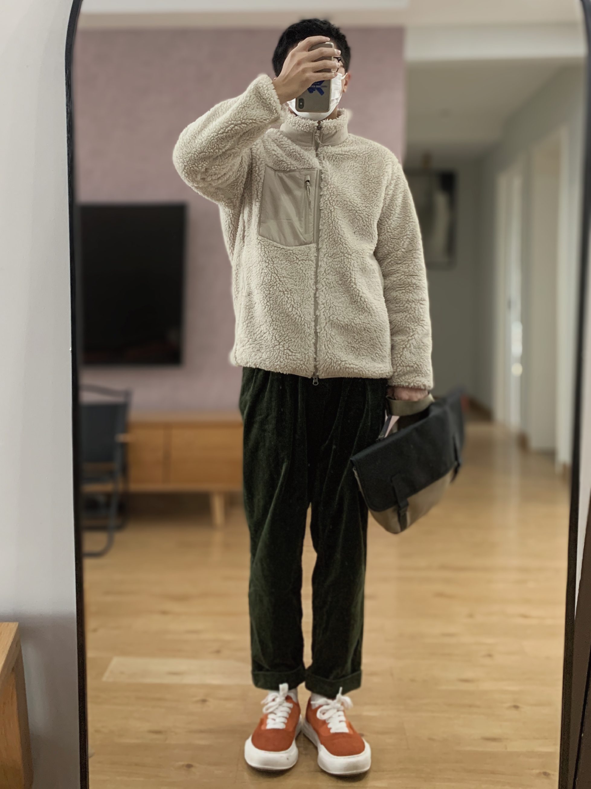 hey 这里是每天记录穿搭的社畜日记。 再当一周社畜就放假啦! 羊羔绒是去年优衣库入的刘昊然同款 米色的羊羔绒看起来就很暖(优衣库429188) 墨绿色的灯芯绒裤我近期真的很爱这条! 鞋子也选择了灯芯绒面料的脏橘溶解鞋。 背包选择了一个有点日系的卡其色邮差包。 今天就是这么一套冬日撞色穿搭啦。 只是分享一下日常穿搭,欢迎指点。